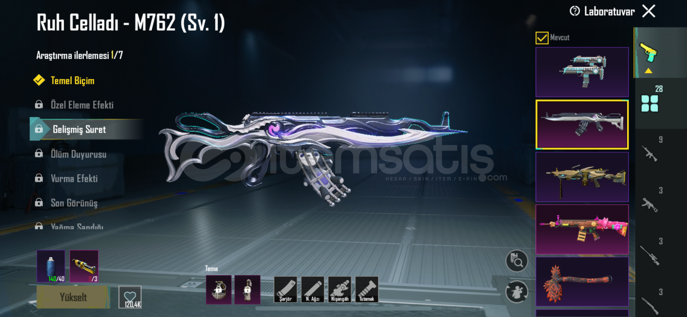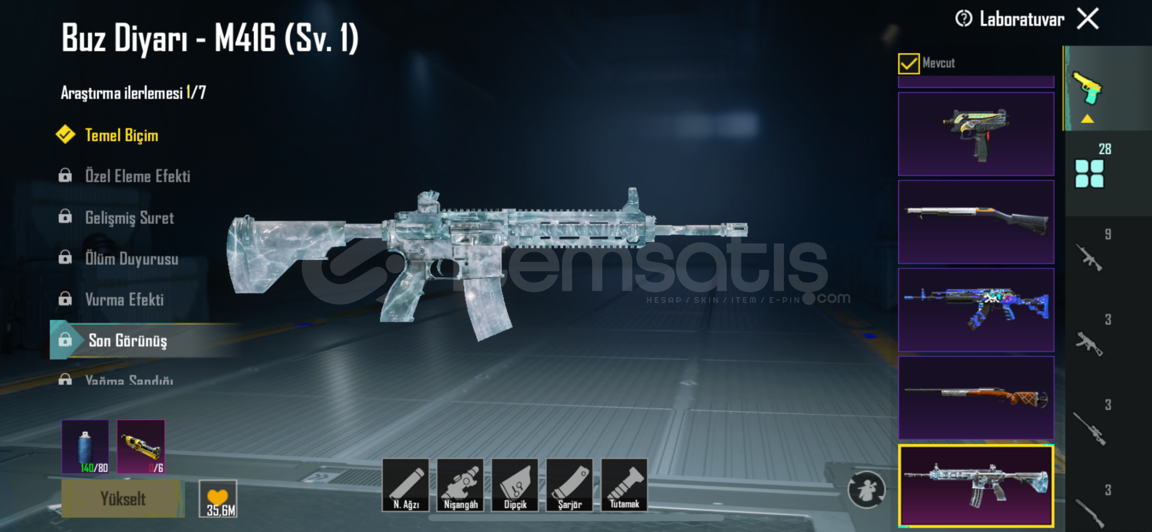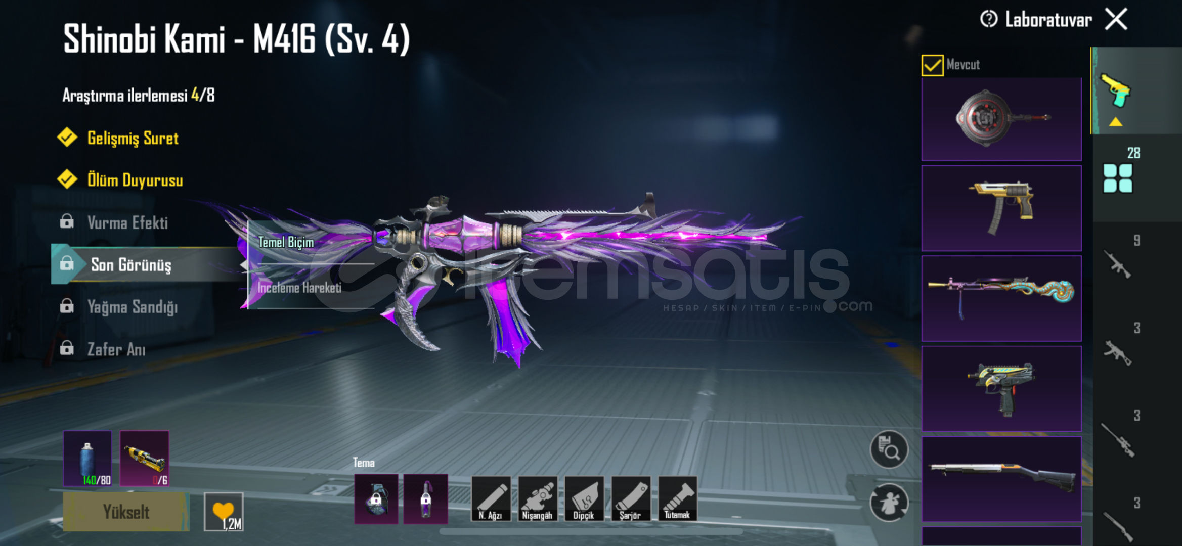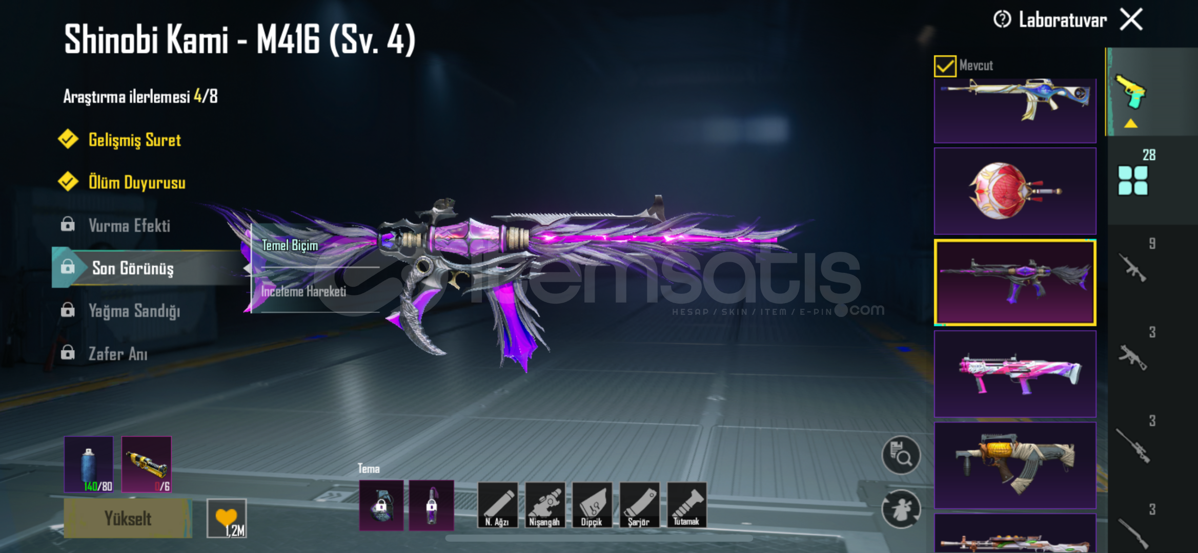 Hesapta 28 yükseltilebilir silah vardır 55 destansı vardır shinobi kami m4 seviye buz diyarı m4 1 seviye bir cok silah 2-3 seviyedirYükseltilebilir timsah bugy var posta ve numara değişimi 4 gün içinde açılacak detaylar için dm