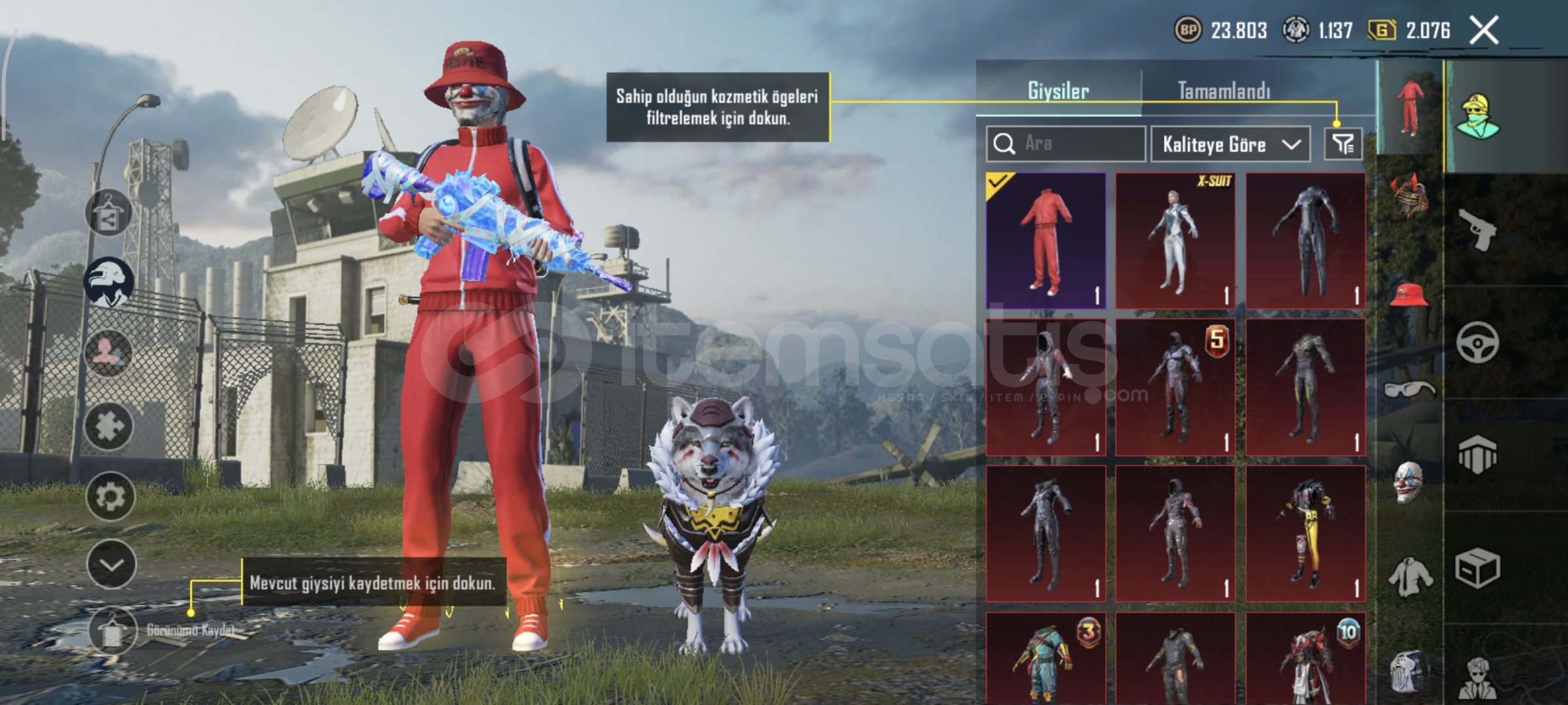 731 giysi 70 destansı184 silah kaplaması 25 yükseltilebilir19 araç kaplaması3 yoldaş kurt giysisi mevcutturBuz m4 5svMühürlü m4 5svSukuna grozaKöpekbalığı kar98Kahramanlık ağıdı awmHesap bağları değişim mevcutturHesapta 1 materyal bulunmakta