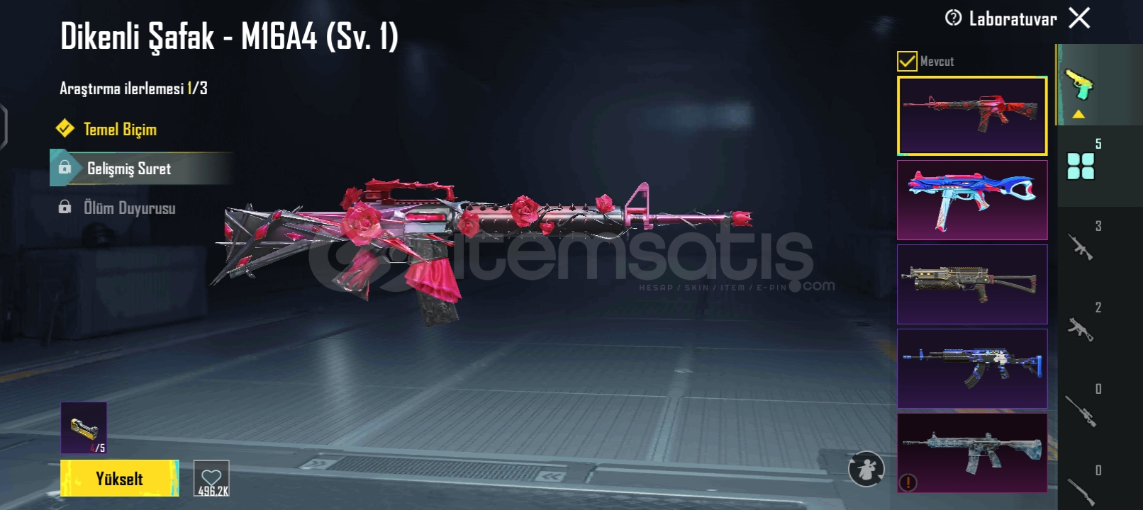 65 tane silah 5 tane yükseltilebilir silah buz M4 3 seviye ve 2 tane mataryrl var detayli bilgi için dm