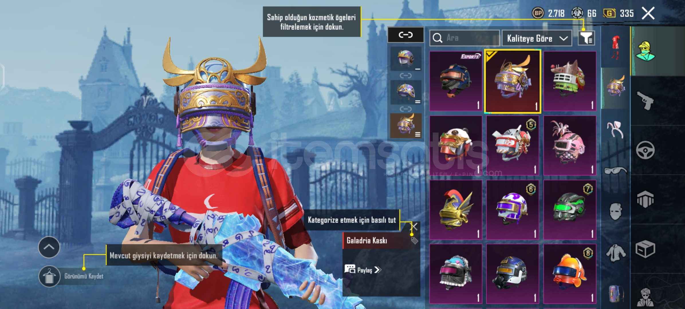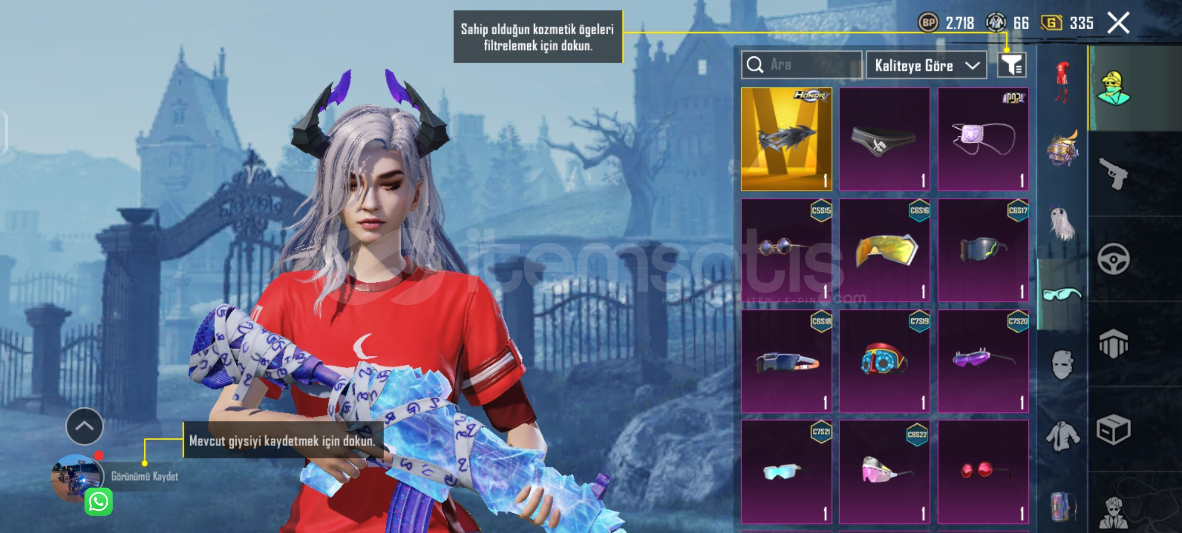 Hesap eposta ve tel baği varMÜKEMMEL PUBG HESABİ1 ADET X SUİT1 ADET NİHAİ GÖZLÜK3 YÛKSELTİLEBİLİR ARABADESTANSI GÖSTERİŞ52 DESTANSI VAR21 TANE YÜKSELTİLEBİLİR SİLAHMUMYA M4(2 LEVEL)MUMYA UZİ(2 LEVEL)YAKUP FIRTINA AMRYEDİ DENİZLER M24(4 SEVİYE)KOD KİRİCİ AKM(2 LEVL)GÖKYÜZÜ AVCISI MG3(3 SEVİYE)İLKEL YADİGAR GROZAMAMA SCARLDİKENL&...