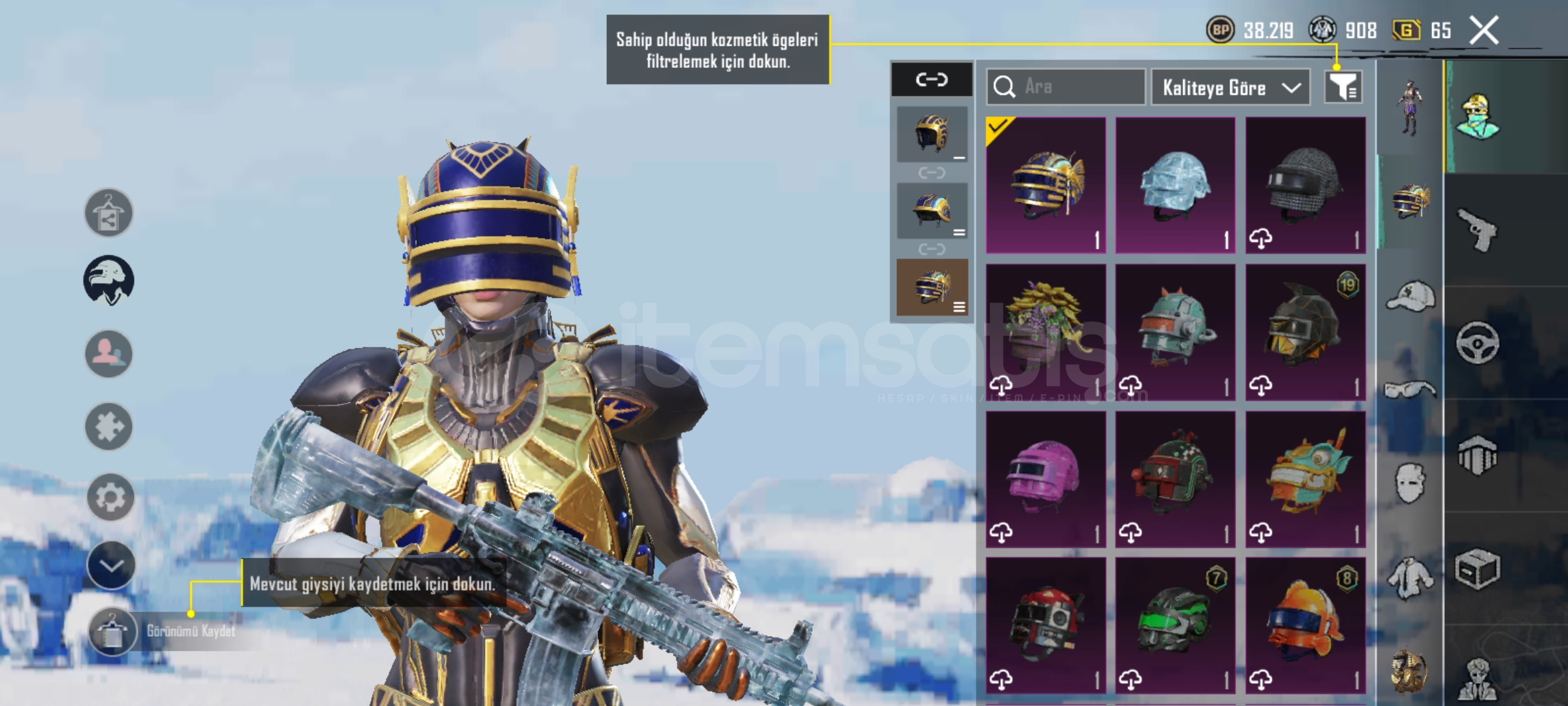 Hesap baya doludur2 tane x suit varHesabın bağları üstünüze devredilecekHesapta 10 tane yükseltilebilir silah varBilgi için dm gelinBuz diyarı M4 4 seviye Aşk konçertosu M7 1 seviye Ruhbiçen ump 2 seviyeE sports seti var özel olanE-sports başlıkta var özel olanİndirim olur yazın
