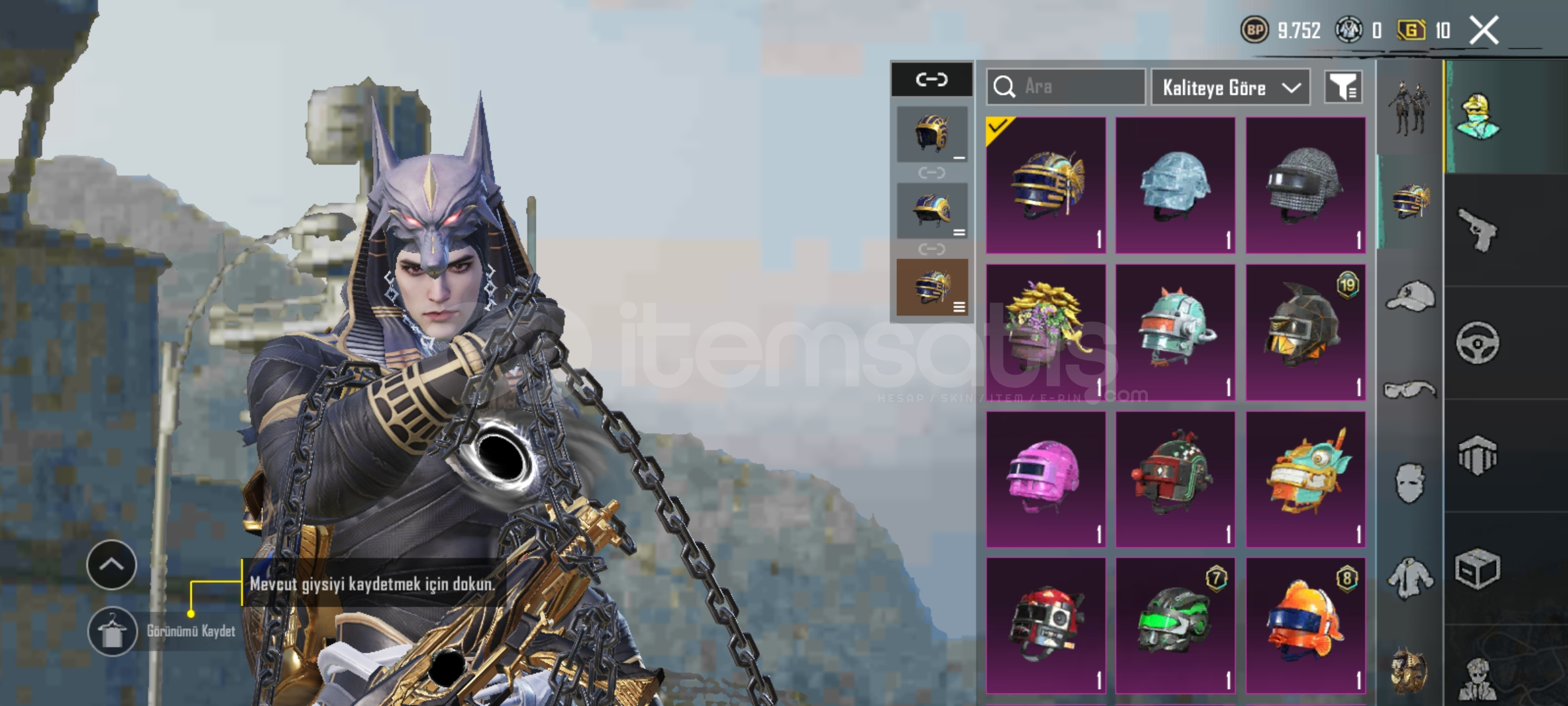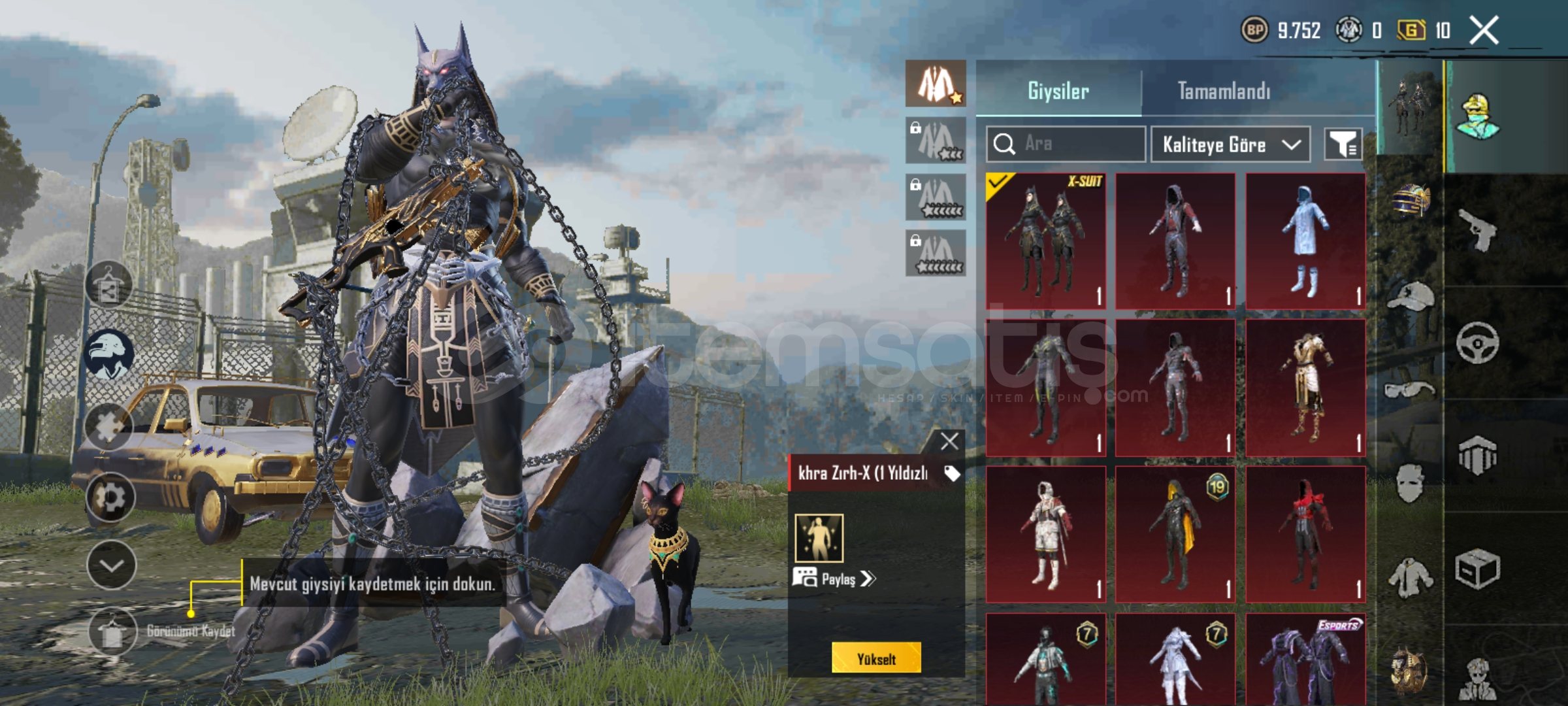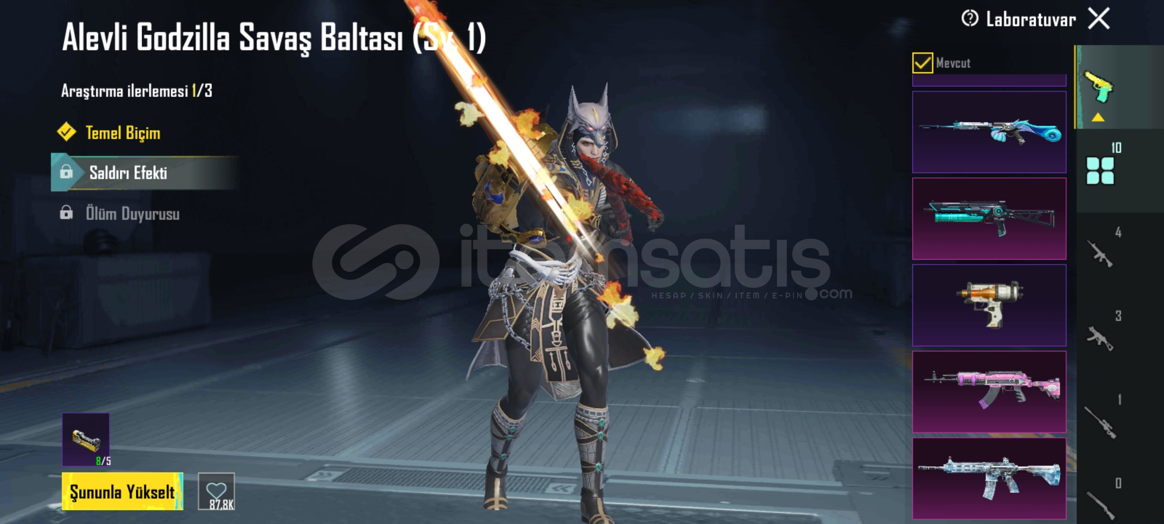 Buzdiyarı M4 4 seviye ve buzdiyarı kask , setiİşgalci,e-sporta mor olan, özel harekat, 2 tane Godzilla seti var,distopya var.Maskara ve firavun çantası varRuhbiçen ump , kalpli olan m7 var 10 tane yükseltilebilir silah var2 tane x suit var(firavun ve ruhbiçen)Hesabın bağları sizin bağlarinizla değiştirilecek.Detaylı bilgi için dm dem yazı