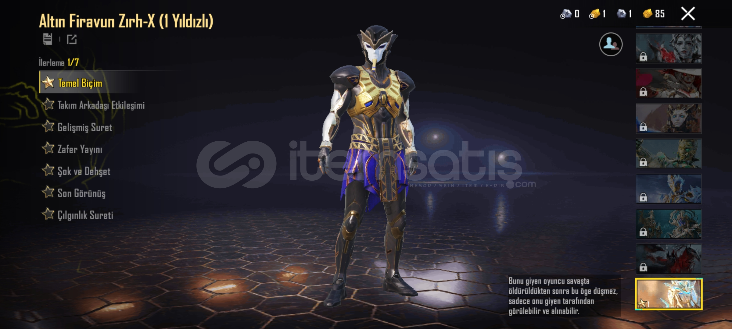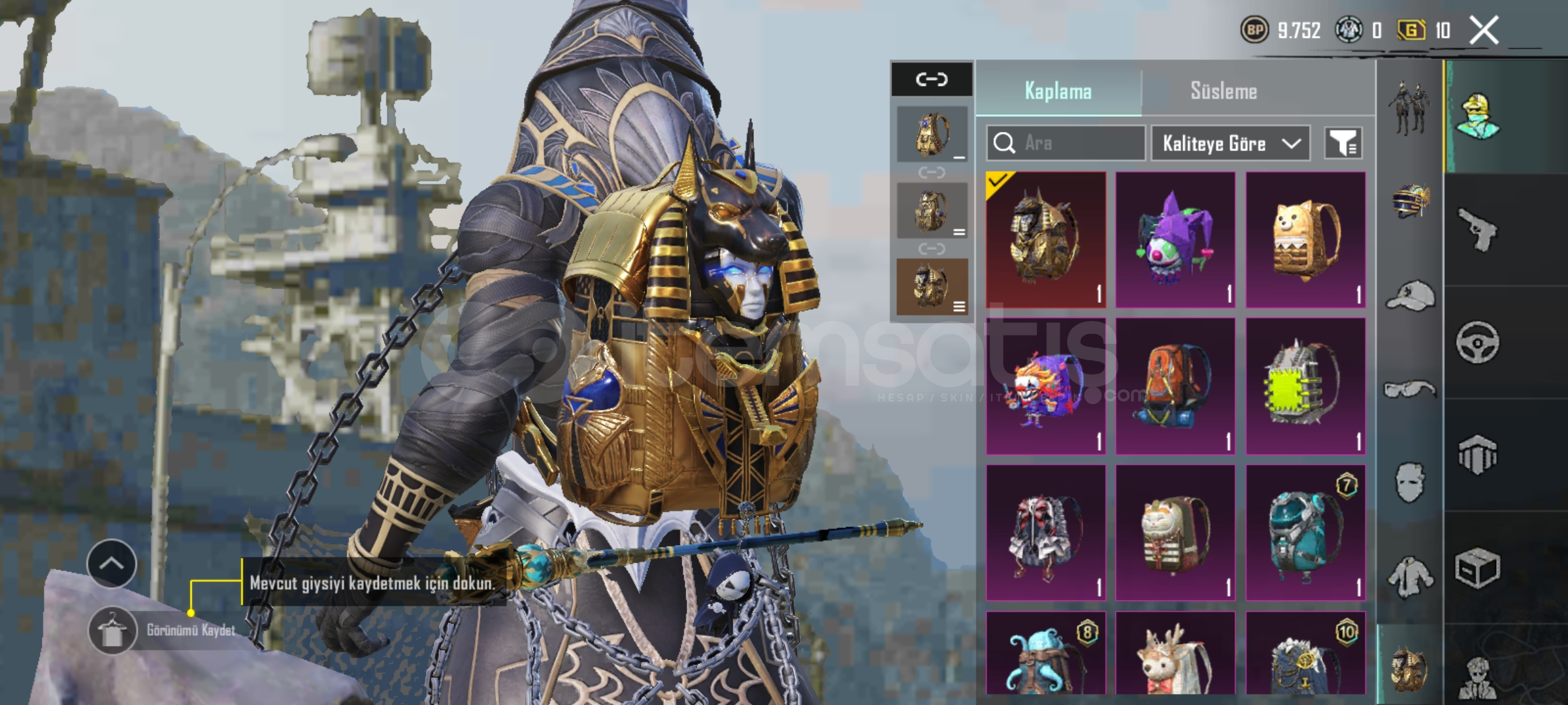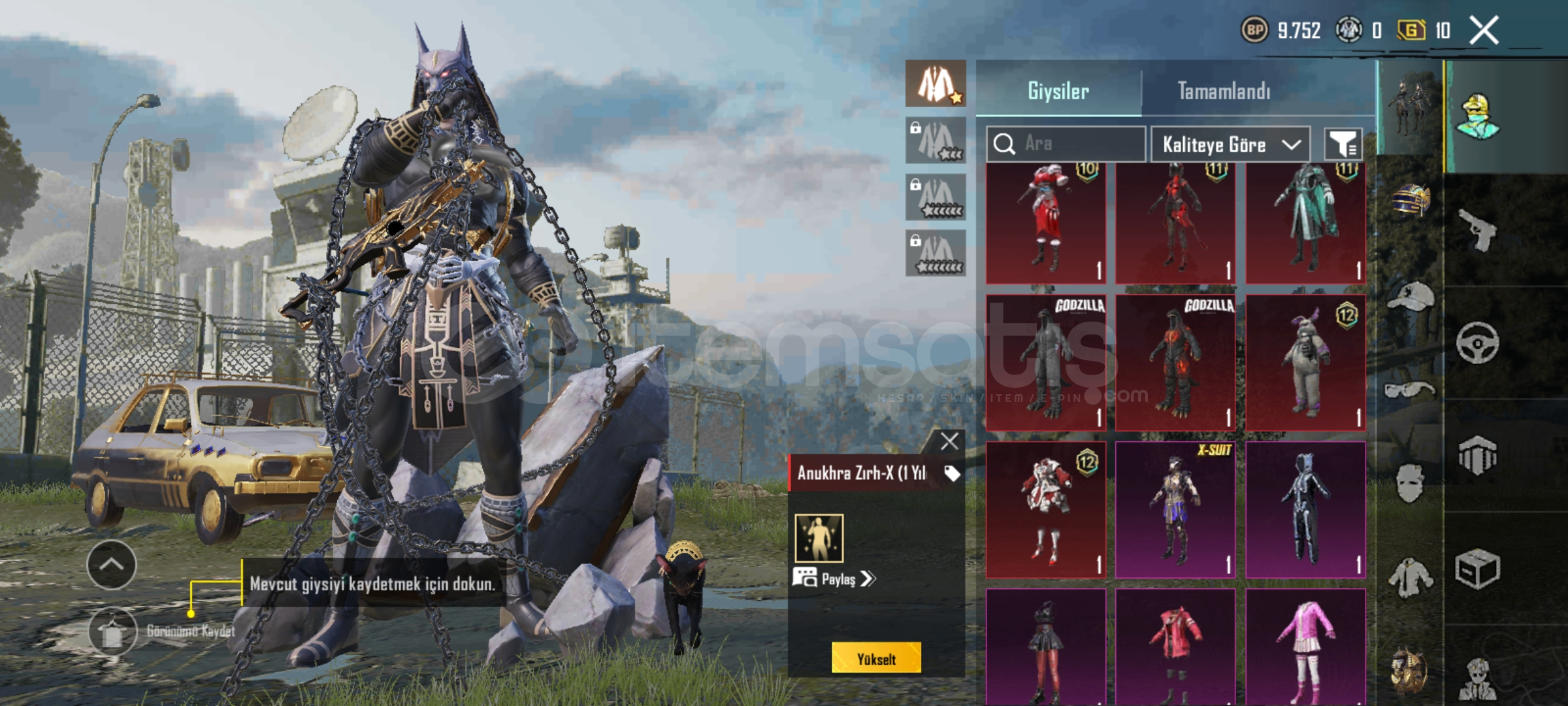 Buzdiyarı M4 4 seviye ve buzdiyarı kask , setiİşgalci,e-sporta mor olan, özel harekat, 2 tane Godzilla seti var,distopya var.Maskara ve firavun çantası varRuhbiçen ump , kalpli olan m7 var 10 tane yükseltilebilir silah var2 tane x suit var(firavun ve ruhbiçen)Hesabın bağları sizin bağlarinizla değiştirilecek.Detaylı bilgi için dm dem yazı