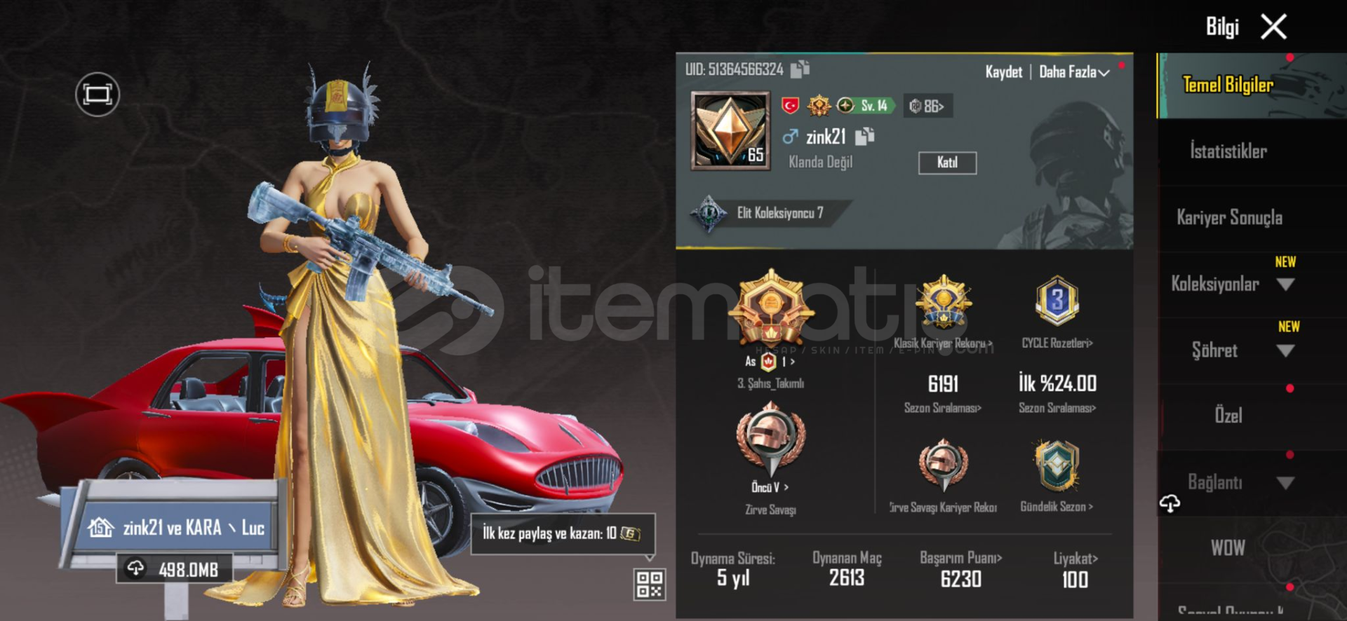 HESAP TEK BAĞDIR E-POSTA MEVCUTTUR ÜSTÜNÜZE DEVREDİLCEKTİR.ACİL SATILIK HESAP OYNAMADIĞIM İÇİN BEDAVAYA VERİYORUM.HESAPTA BİRÇOK DESTANSI VE YÜKSELTİLEBİLİR MEVCUTTUR VİDEODA HERŞEY VAR.SETLERSAHRA PRENSESİ SETİ SARI ÖĞE DEĞERLİ ÇOKANUKHRA X-SUİT DESTANSIALTIN FİRAVUN X-SUİT DESTANSISERİ KATİL SETİ DESTANSIALTINKUM VARİS&#...