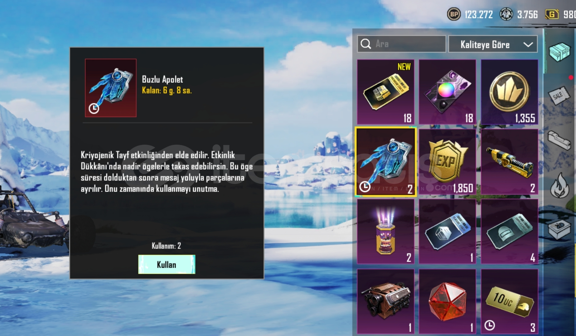 Cryonix seti hoşuma gittiği için bir miktar para yatırmıştım, param yetmedi. 2 Tane Buzlu Apolet var, elmas 3, iki battlepass aldım. İsterseniz alıp üzerine ekleyerek cryonix alabilirsiniz. İlk defa hesap satıyorum, elimden geldiğince yardımcı olurum.