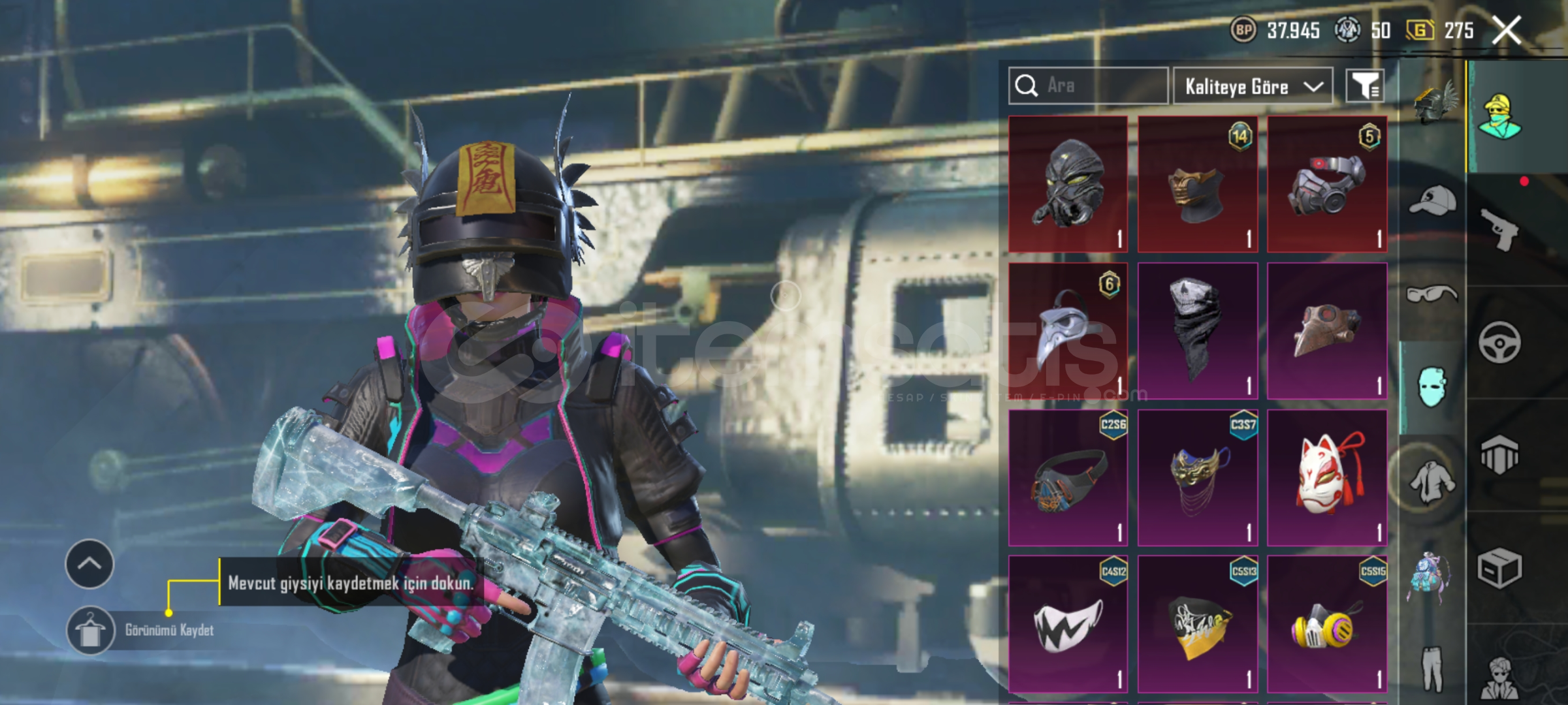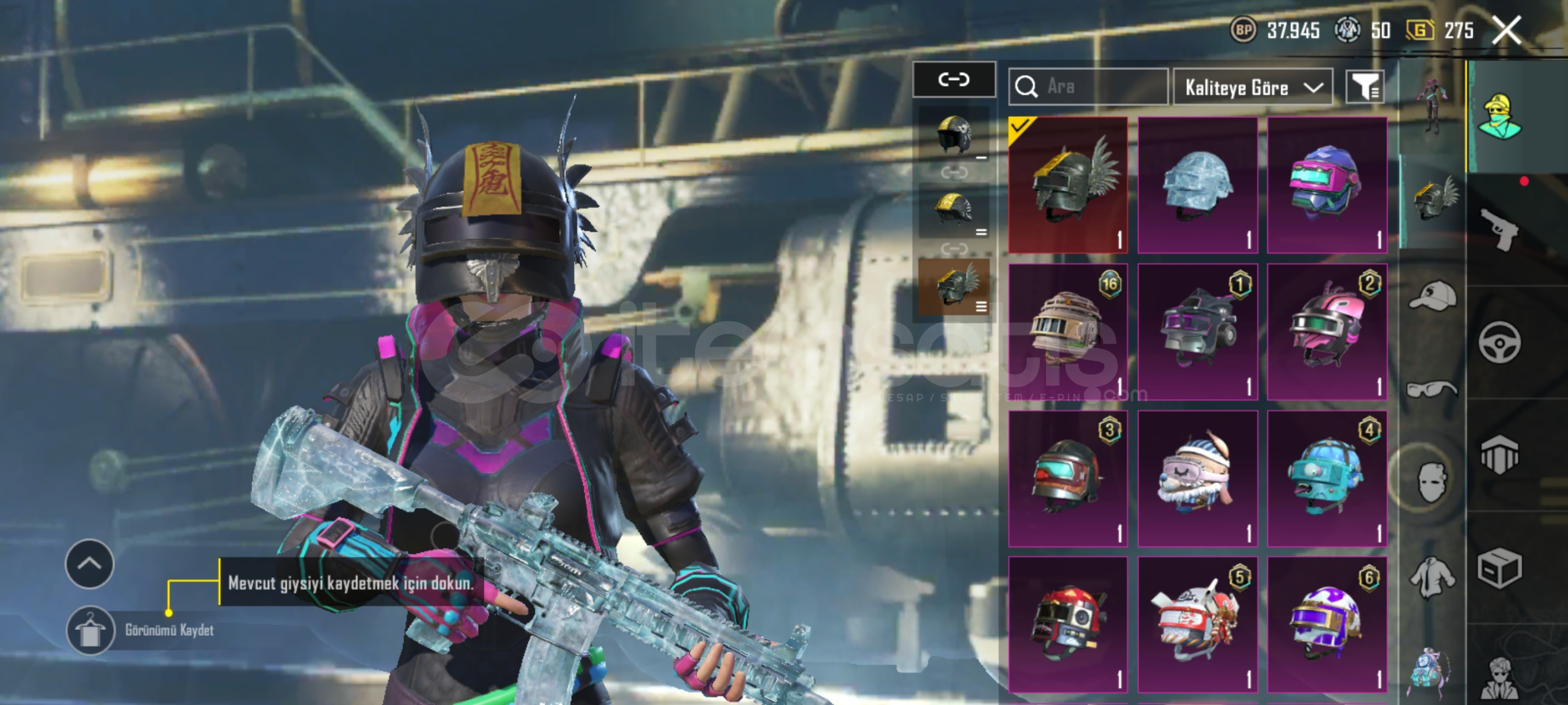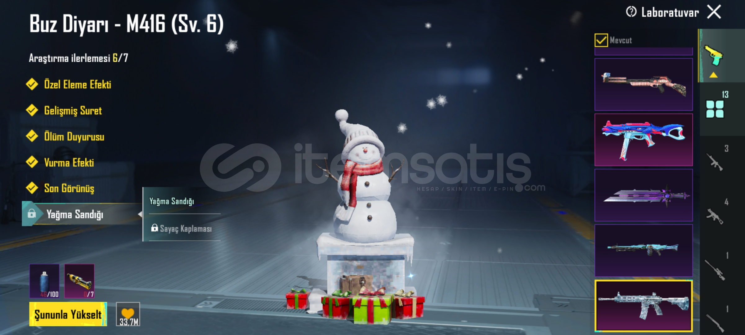 BUZ DİYARI M416 6SVALTIN PENÇE P90 4SVYAMALI TAVŞAN MK47 2SVDİKENLİ ŞAFAK M16 1SVPERİ CAZİBESİ TAVA 3SVDENİZLER EVRİMİ UMP45 3SVYÜKSELEN EJDARHA MG3 1SVTOPLAM 13 YÜKSELTİLEBİLİRDESTANSI GÖSTERIŞ 53 DESTANSIİŞGALCİ SETİ MASKESİYIL DÖNÜM SETİ MASKESİSUİKASTÇI SETİRP SETLERİMASKELİ MİDYUM KASKIBUZ DİYARI KASKIDESTANSI &Cce...