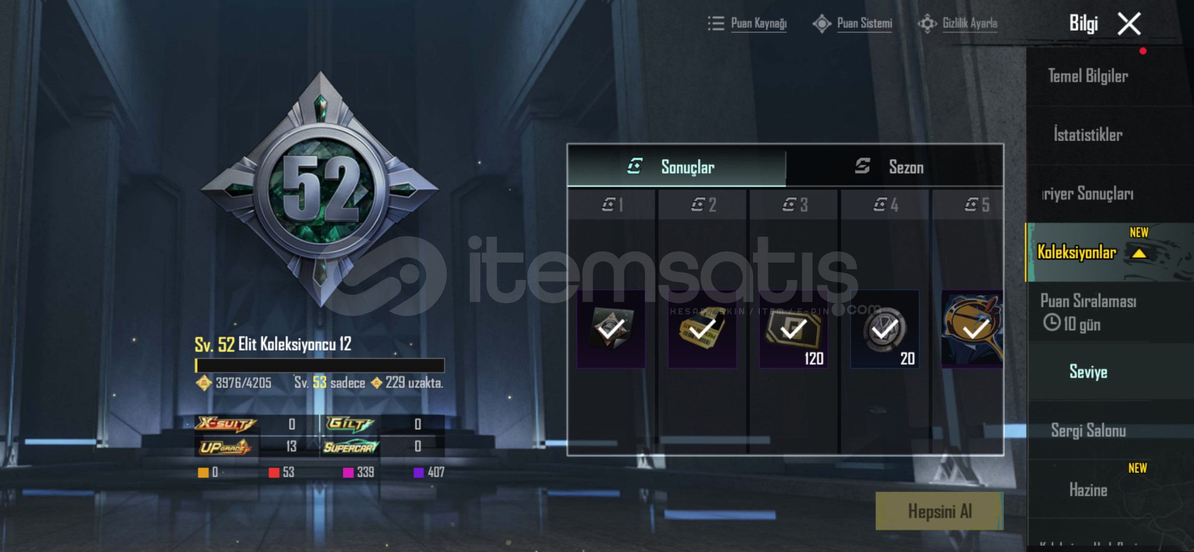 Hesapta 53 destansı 13 yükseltilebilir var 5 tane silahta ölüm duyurusu var 4 tane karakter var bilgiler üzerinize yapılacak