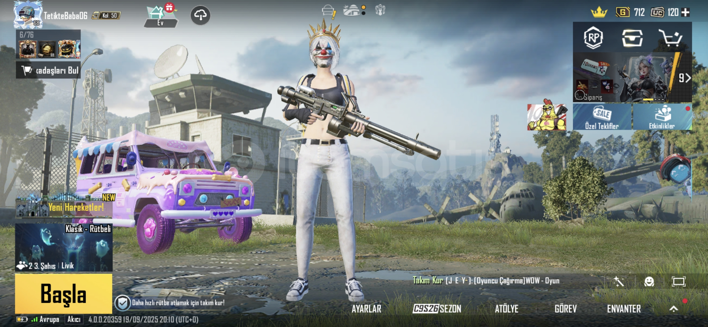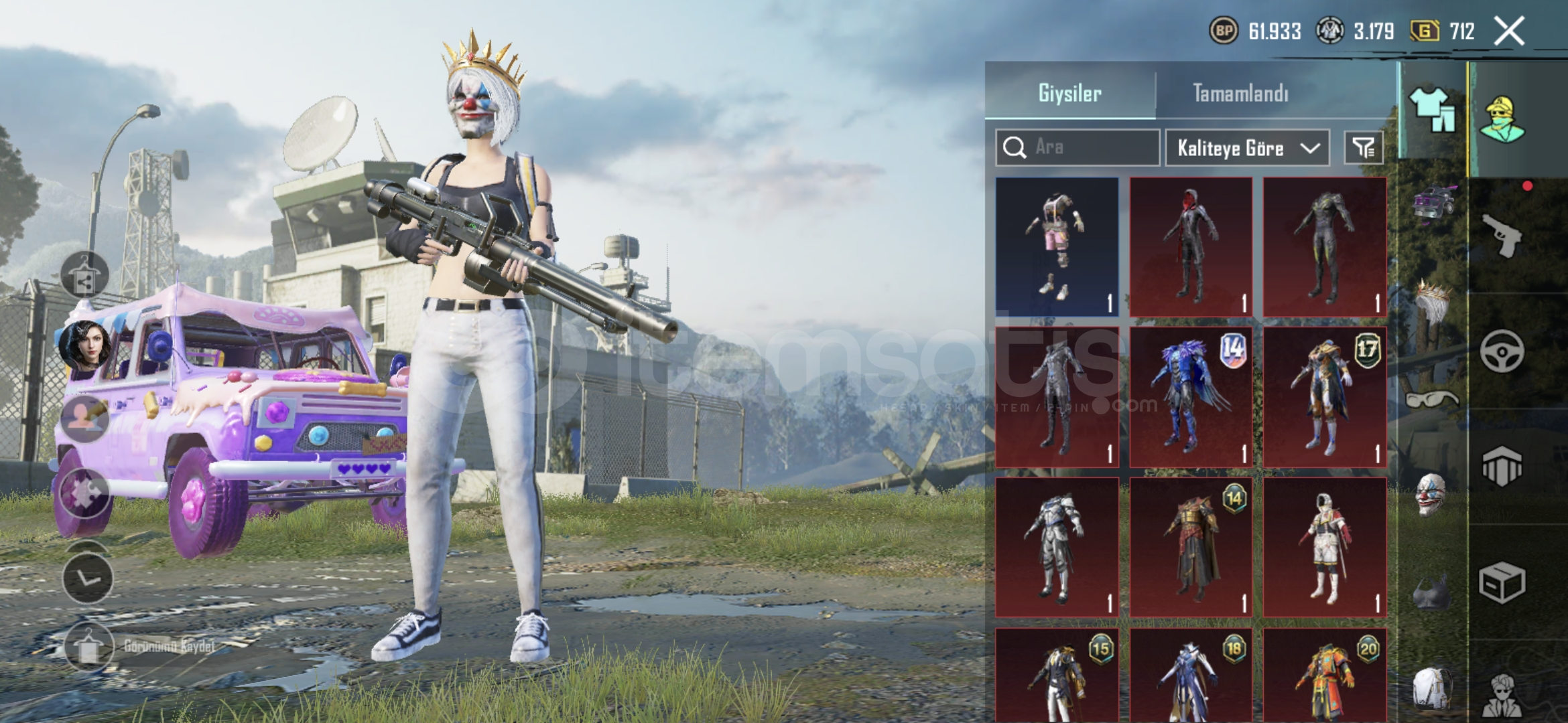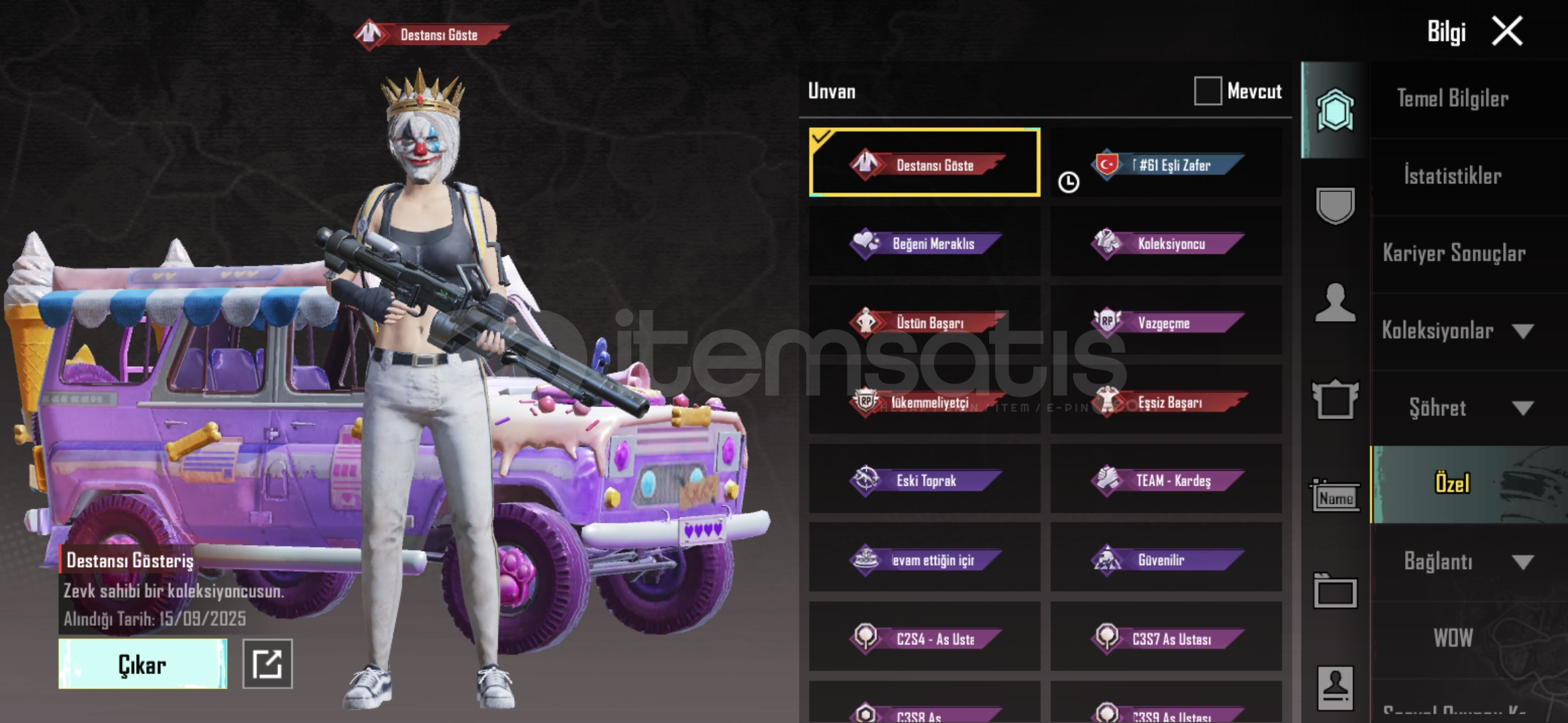 Hesap 67 seviye Rp açık sürümcü dansı var s2 maskesi var işgalci ve seri katil var 4 tane ölüm duyurusu açık silah vardır 53 destansıdır.