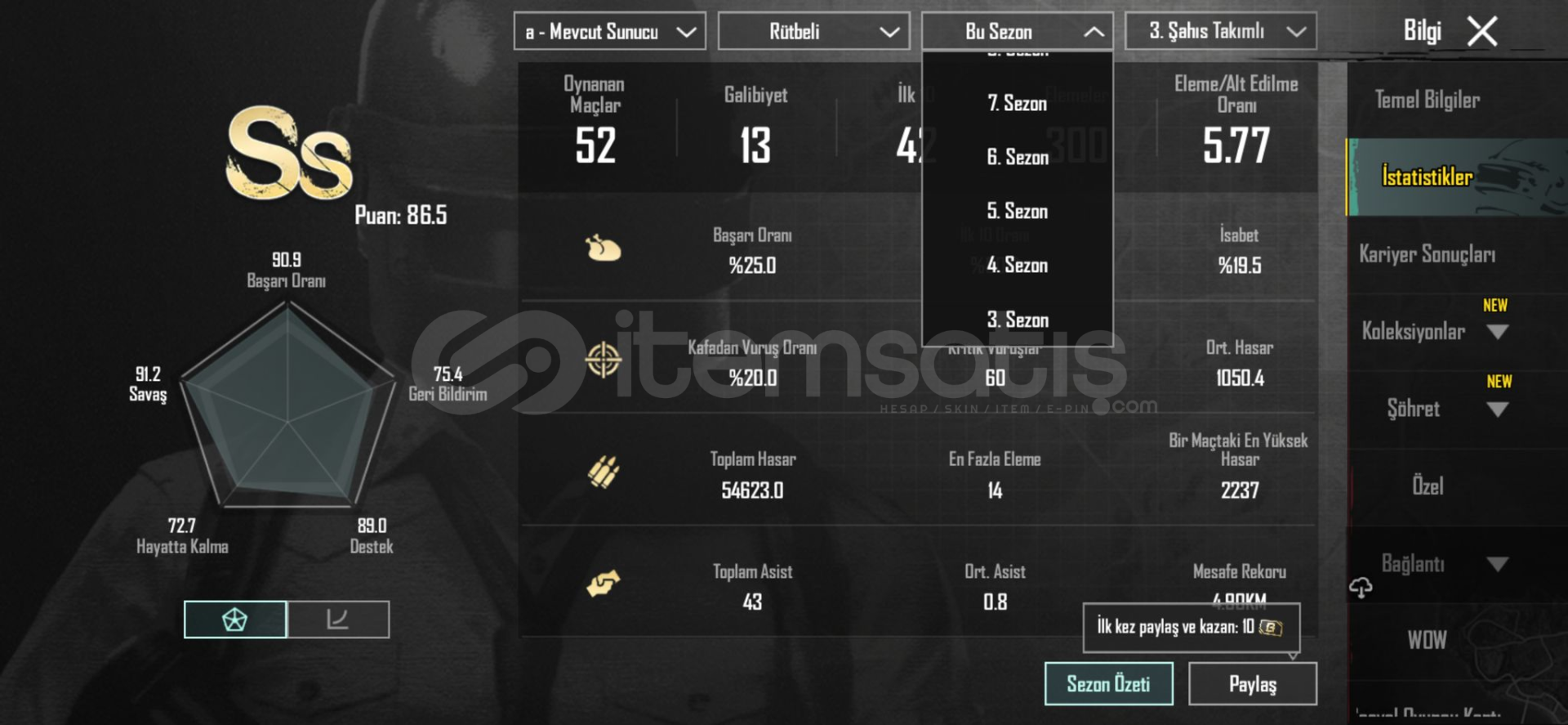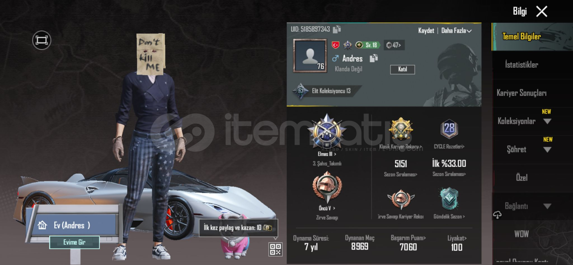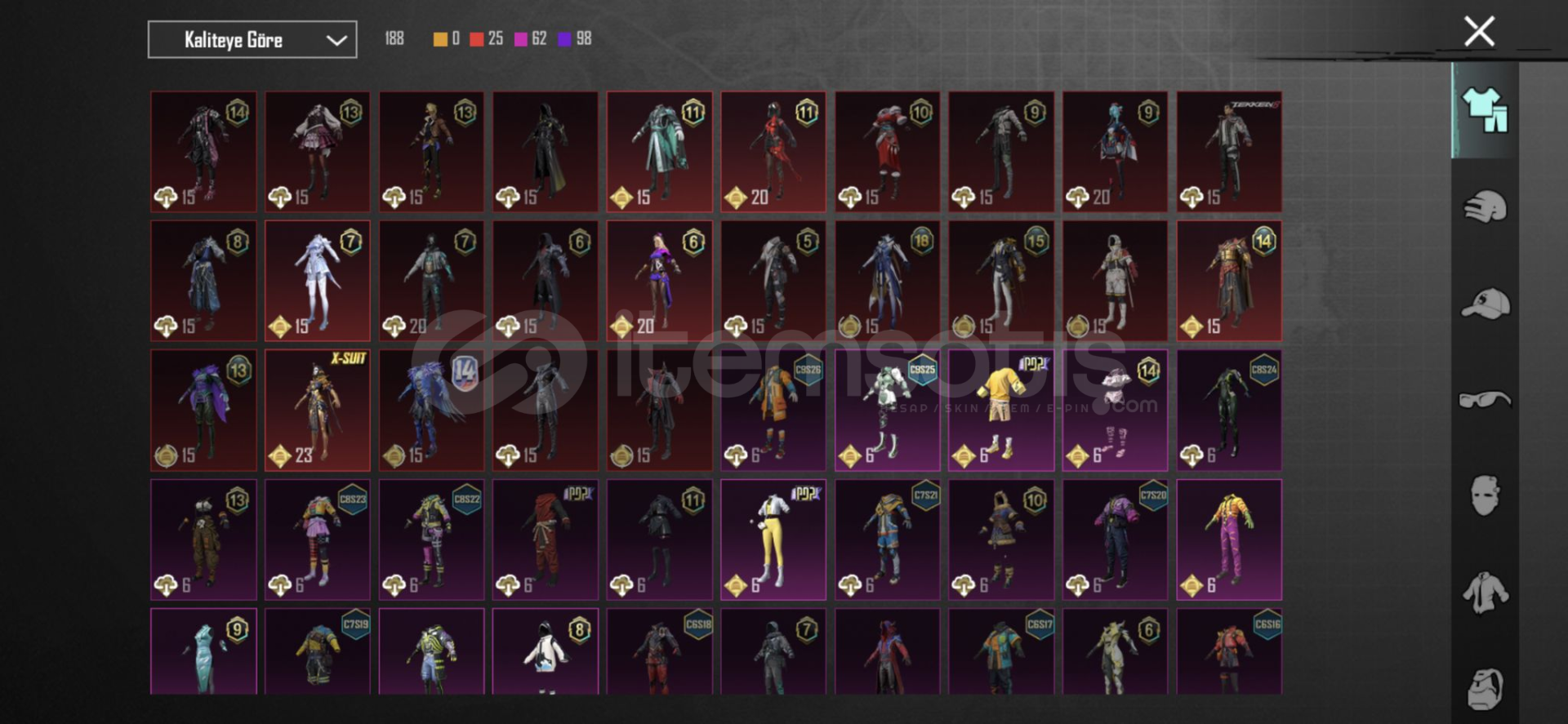 Önemli olanlar SSC firavunun karısı var X suit’in gözlüğü var kalkan uaz üç Level m7 scar uzi thamson felan ölüm duyurulu destansı gösteriş merak edilen şeyler varsa sorarsınız SS çekmediğimiz veya soylemedigim şeyleri de isteyen kişiler söylesin bakarız.