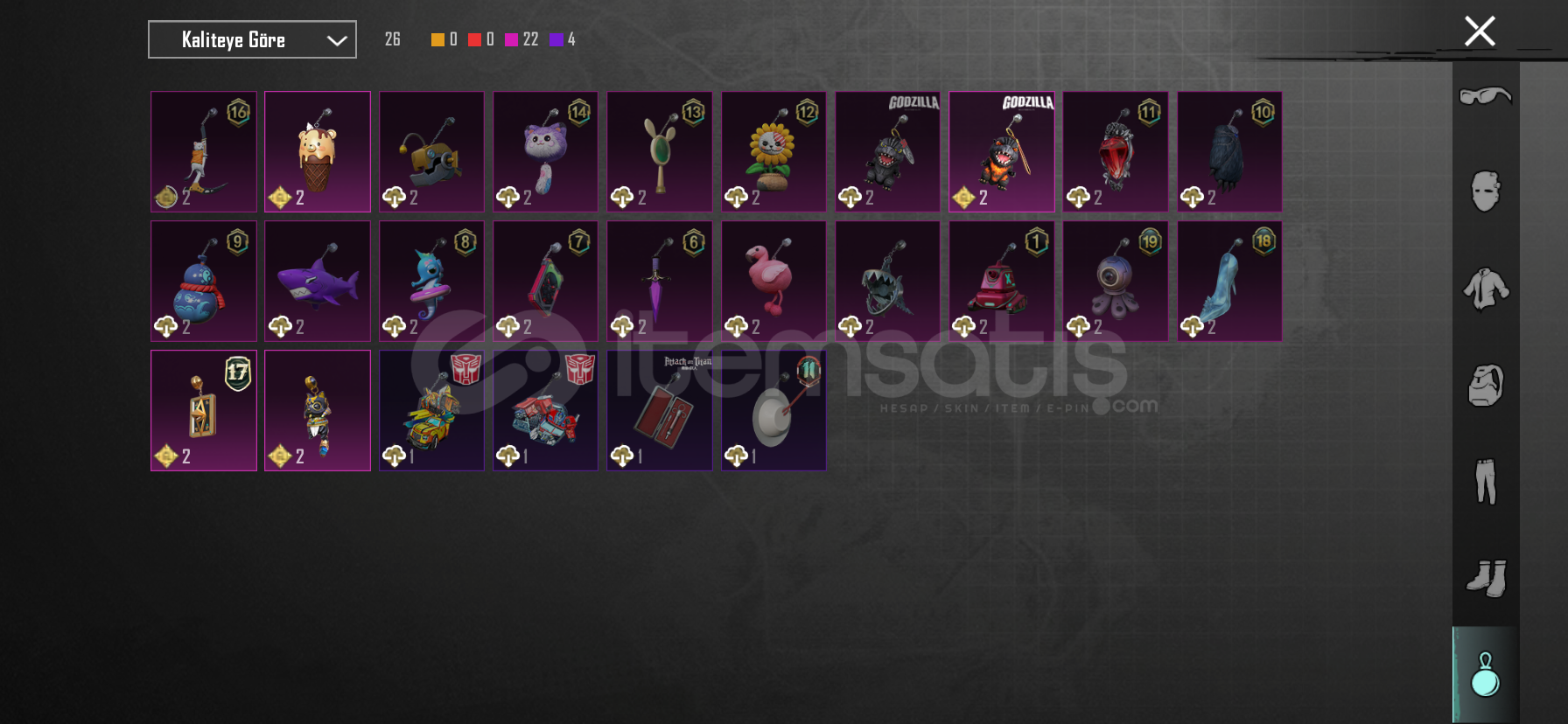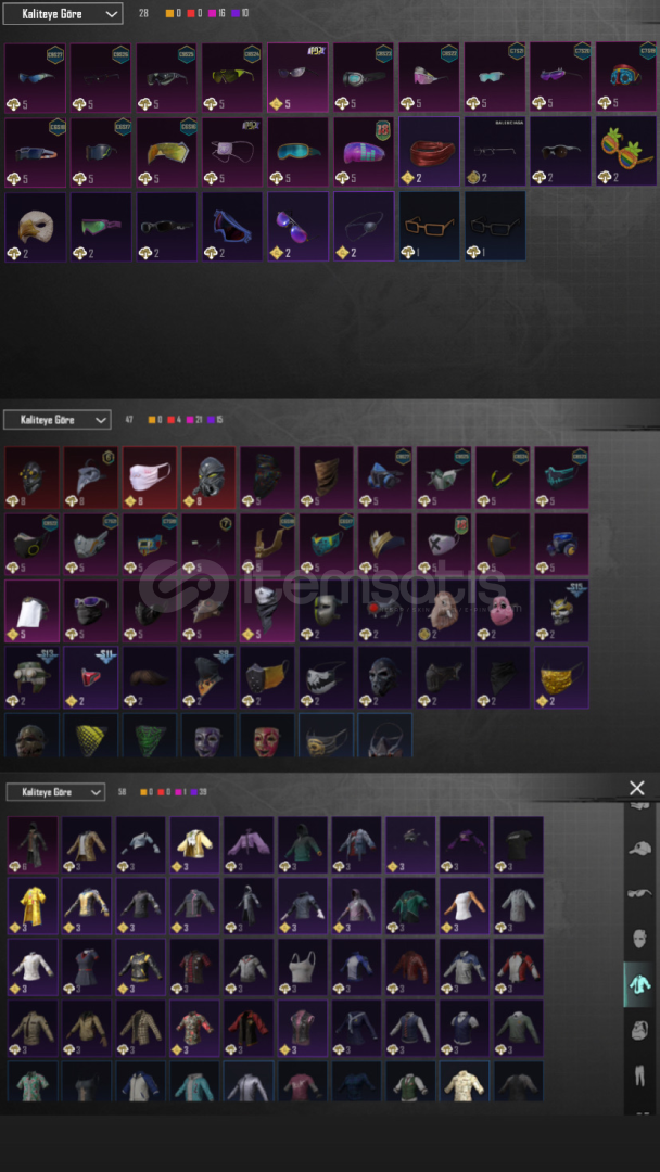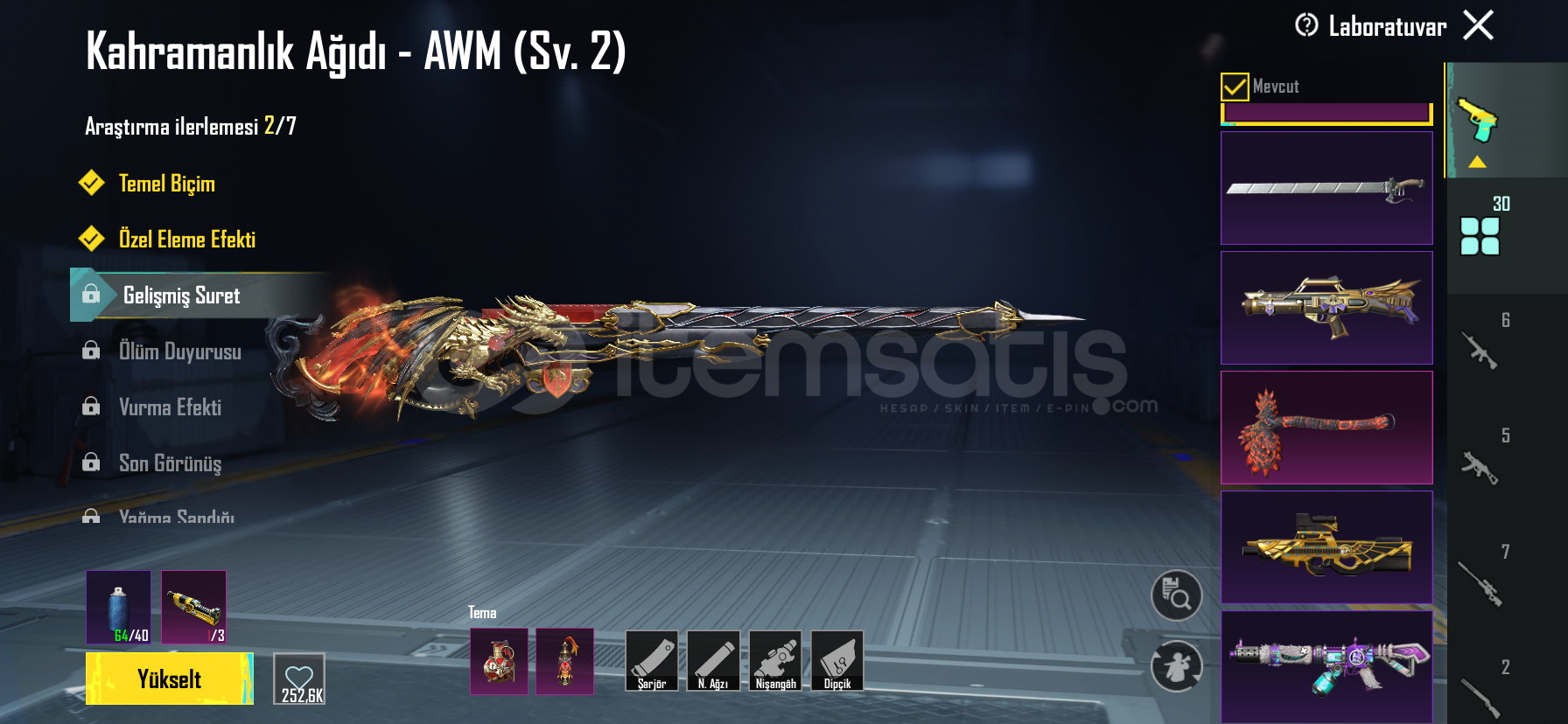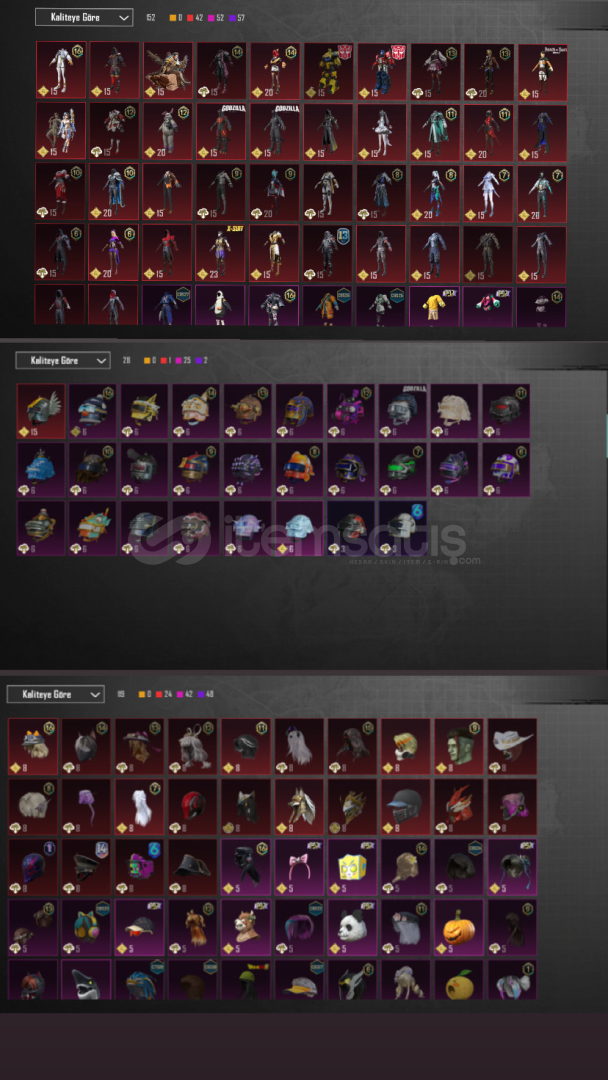 72 destansı vardır firevun 1 svkomutan seti vardır30 tane yükseltilebiliri vardır Işık ve karanlık tapınağı akm 3 svGece gladyatörü bizon fullŞirin kedi kar98 fullZarif leylak thompson full8 bitlik patlama ump 3 svKüçük midilli m762 4 svkahramanlık ağıdı awm 2 svMama tabancası scar l fullRuhani muhafız uzi full