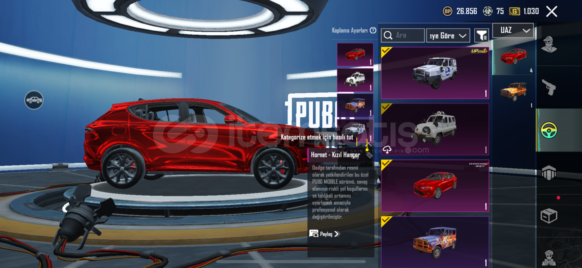 HESAPTA DODGE HORNET KIZIL HANÇER ARACI MEVCUTTUR, PANDA UAZ MEVCUTTUR