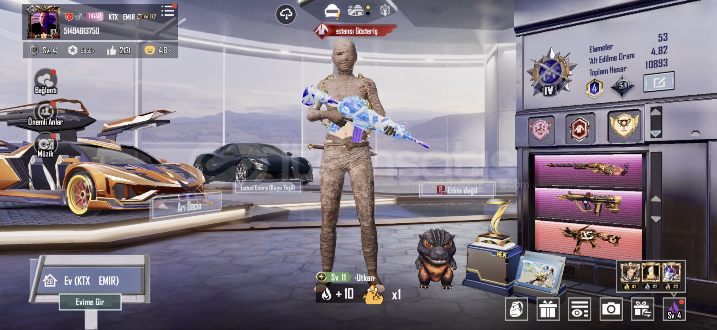 HESABIN DETAYLI VİDEOSU MEVCUT İSTEYENE ATACAĞIM✅-E-posta ve numara bağlı ikiside değişime açık.-Form geçmişi yok temiz hesap.-Lotus Emira spor araç.-destansı gösteriş rozeti-crew seti full + komutan seti full-4 destansı çanta Inihai çanta li xsuitin çantası maskaraçanta-2 x suit bulunmakta ikiside 2 level.-Mumya m4 5 seviye-xsuit aug 2 seviye-mumya uzi 4 seviye firavun um...