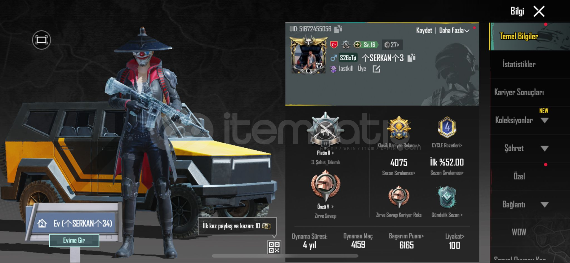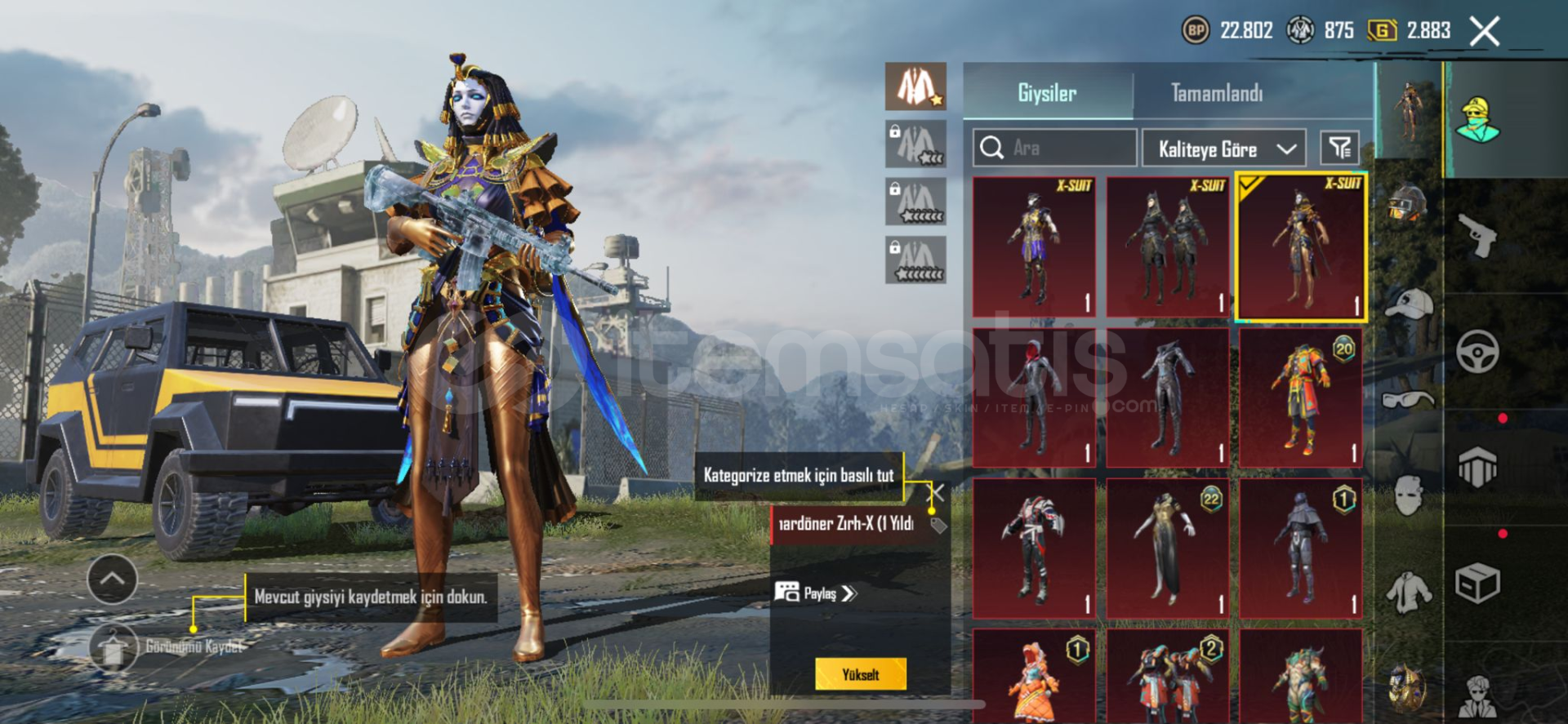 Hesabim sağlamdır güvenilir saticiyim profilime bakarsaniz yüksek rakamda hesaplar sattim yorumlarim ortada arkadasimin hesabi acil nakit ihtiyacından satılıktır royal pasda cikan kiyafetler harici bircok kıyafet vardir özel sandikdan para verilerek çıkarıldı firavun var buz m4 4 seviye cok anlamadigim icin pubgide aciklama yazamiyorum video atilir bakabilirsiniz