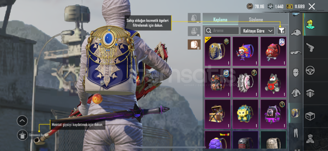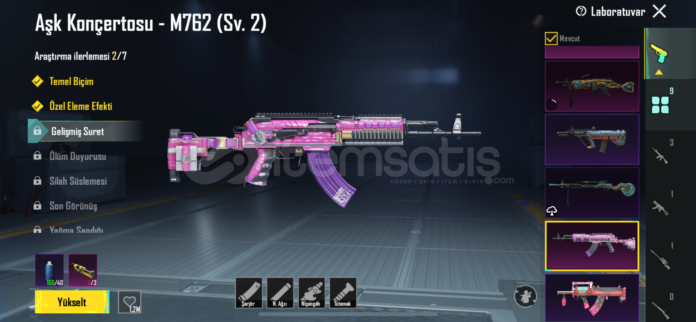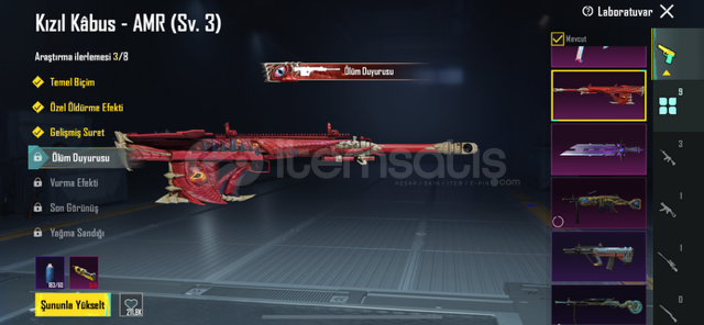 Hesapta yükseltilebilir ump (full) ve bıcak vardır (full)