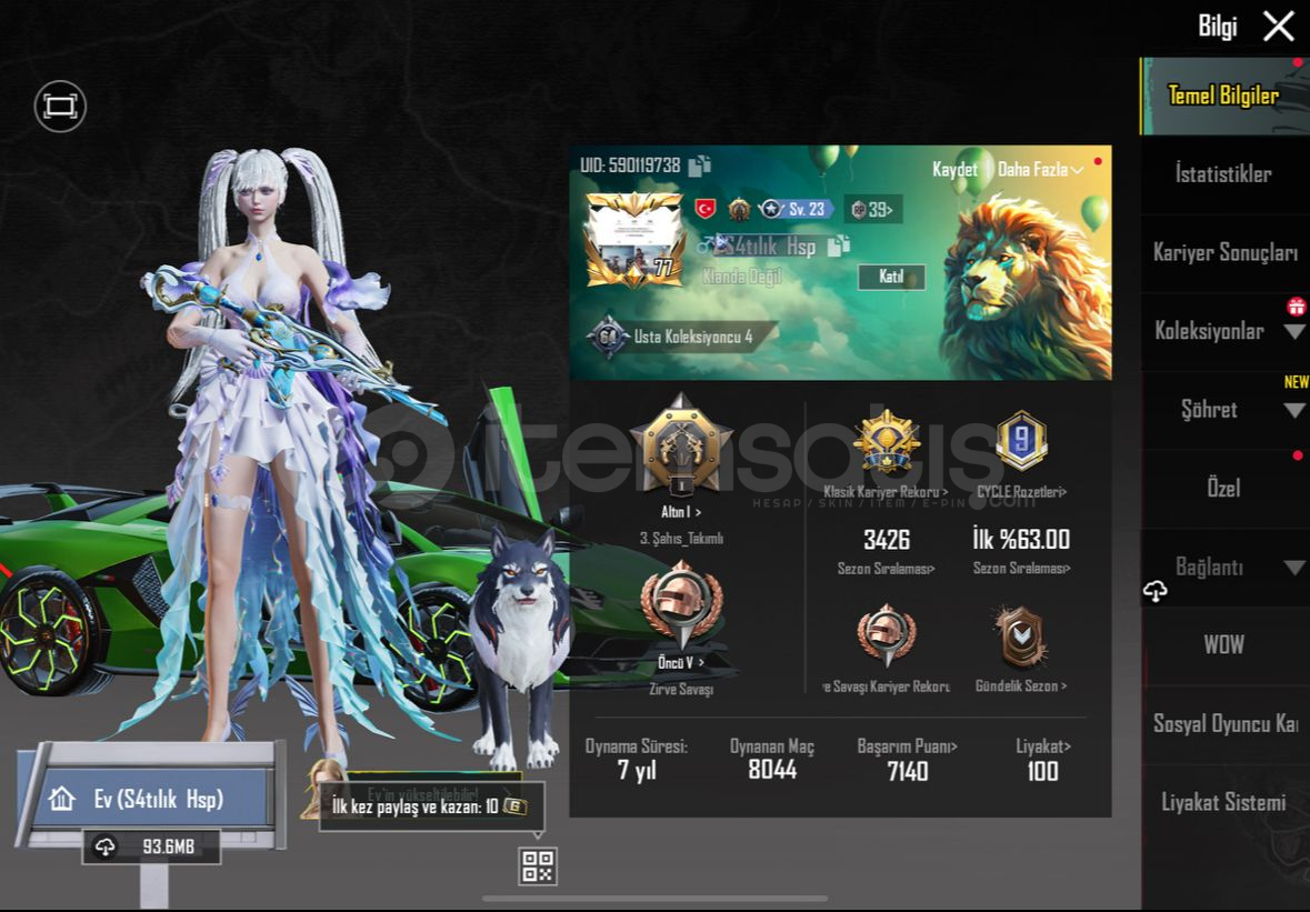 Belirli periyodlarla veyahut sürekli satım alım yapan biri olmadığım için başarılı satış sayım oldukça düşük.Hesap temiz bağdır. tek bağ e-posta adresidir.Almak isteyen ciddi alıcılar yazabilir.Hesapta extra olarak:ruh celladı m762 vardır (Max Level)Sarı Lotus toros deseni vardır.s4 yüz ve bütün saçlar mevcuttur.