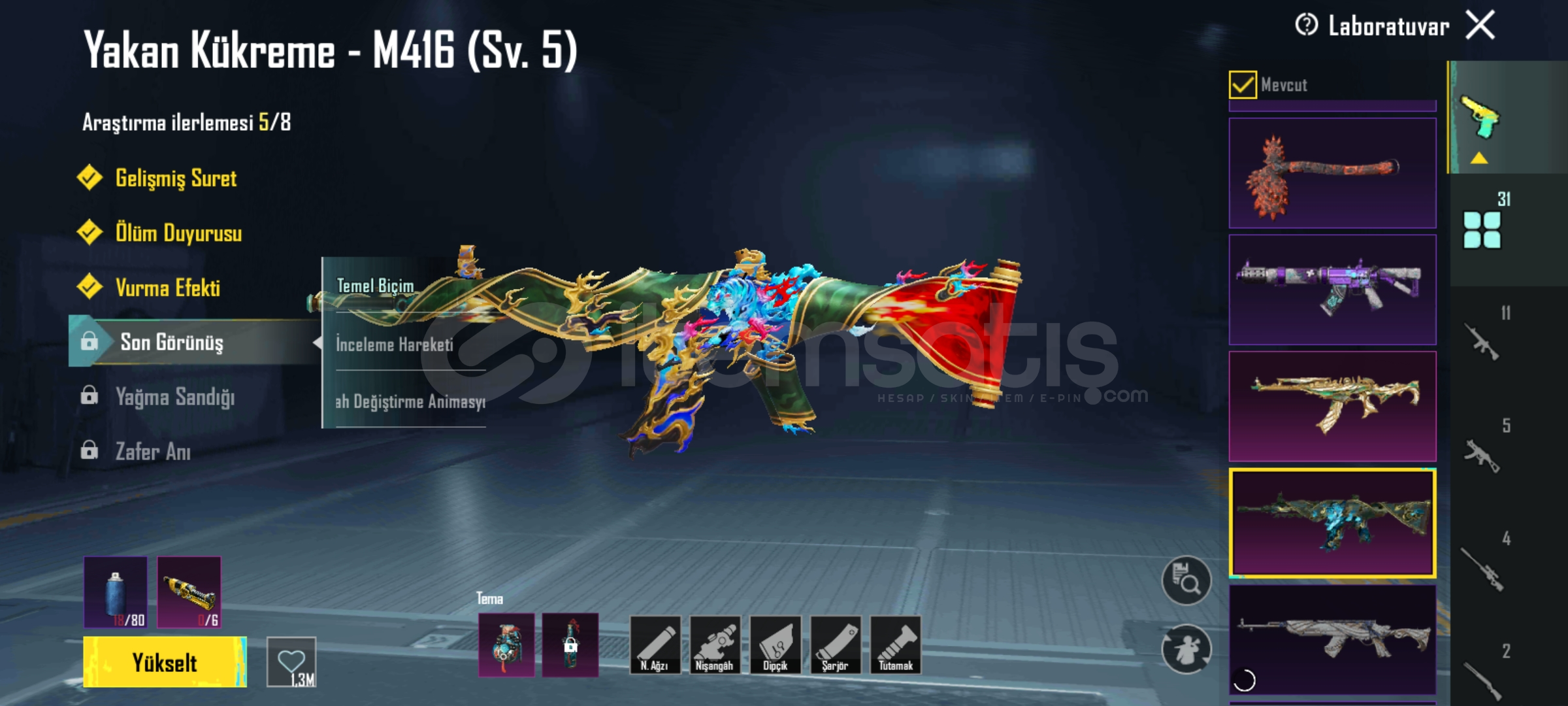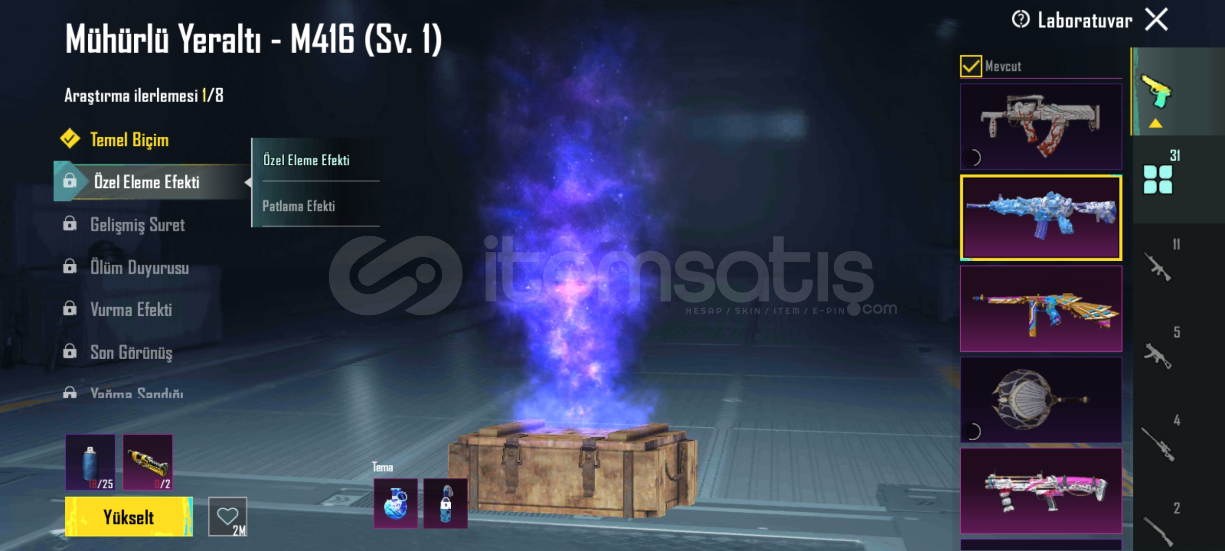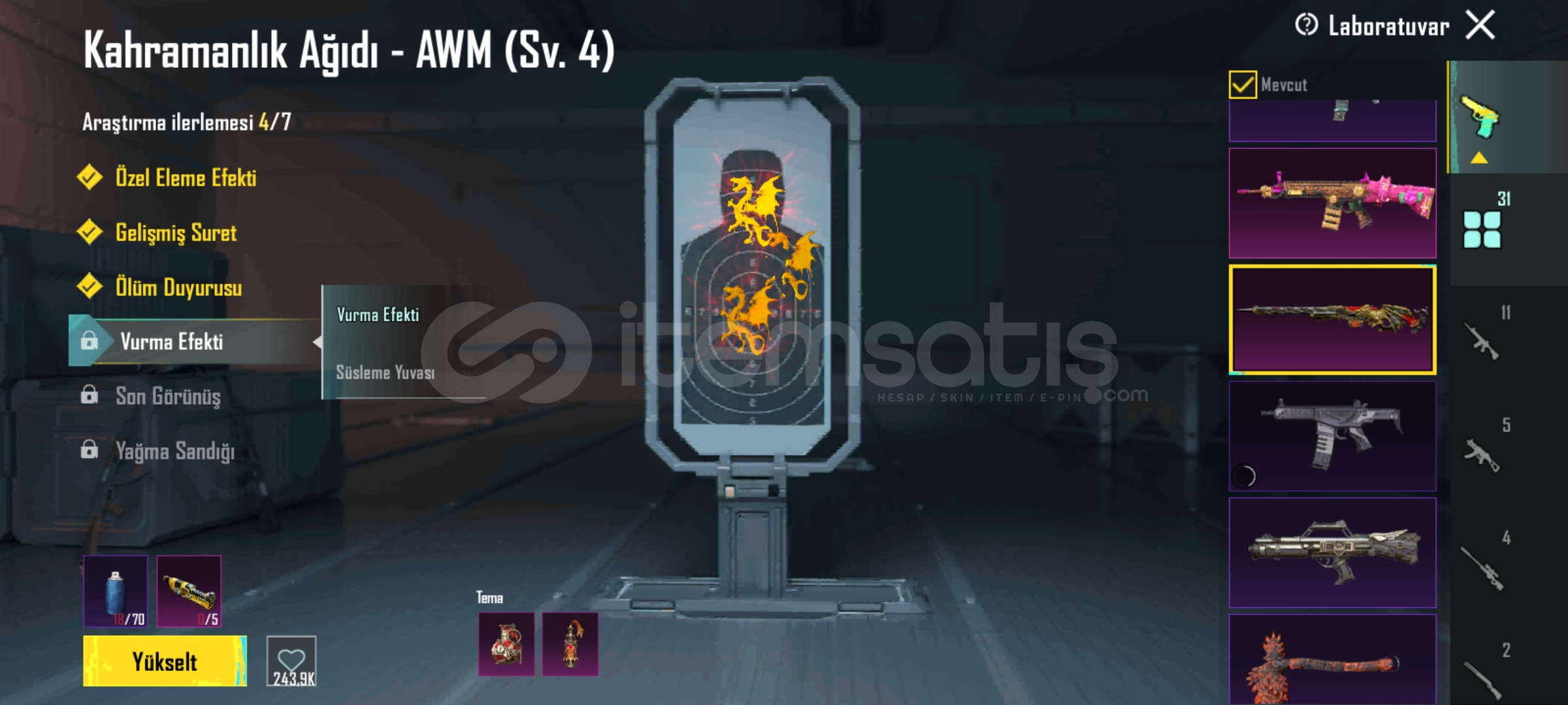 Awm:4 seviyeM4:5 seviye (iki tane M4 var yükseltilebilirAKM:4 seviye M7:4 seviyeMumya var Firavun xuit yeni gelen xuit var Nihai sette var