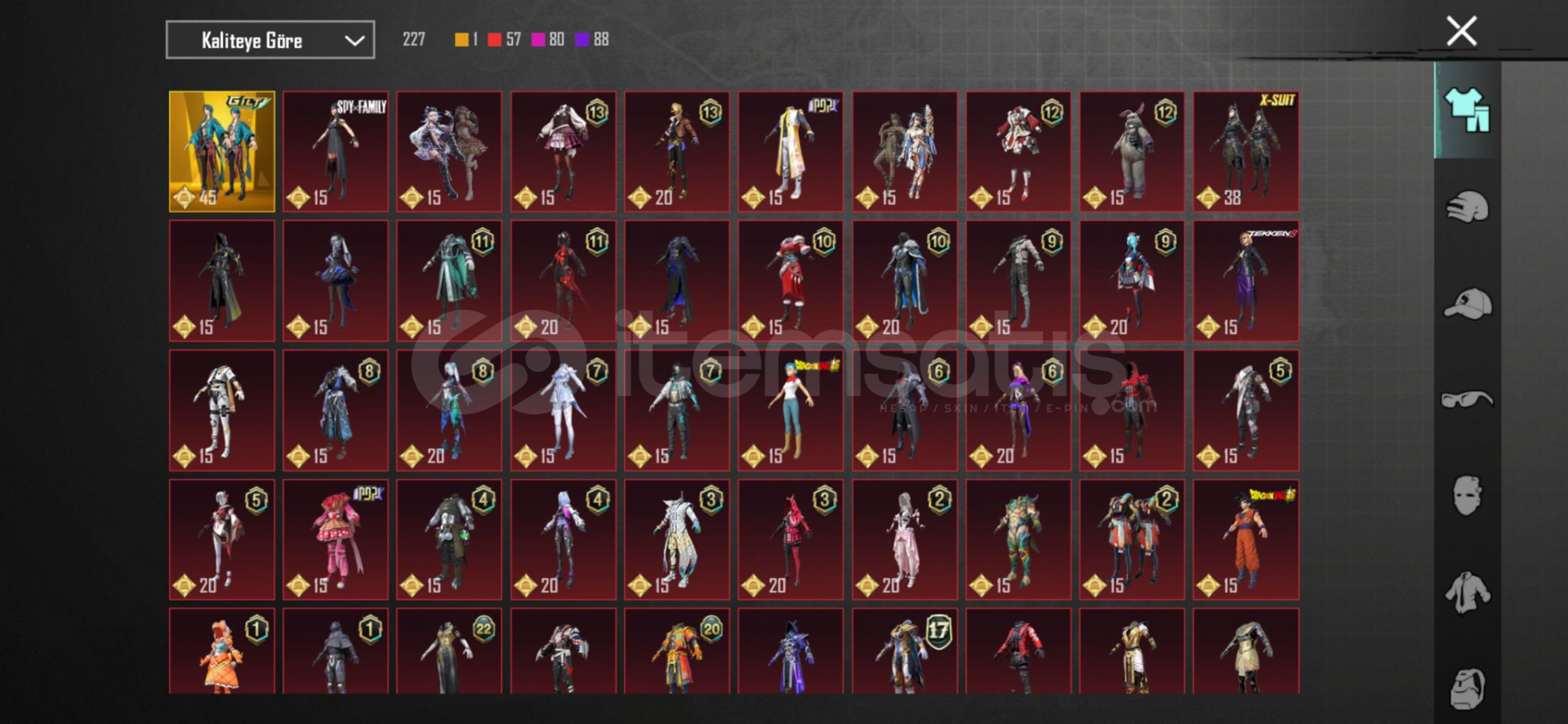 60 koleksiyon 96 Destansı 38 Yükseltilebilir 1 Destansı lobi 30 seviye ev s4 yüz s5 saç 2M+ populerlikİtfaiyeci setiSemavi asi nihaiAnukhra x suit 2 yıldızOrman elfi setiDinopark setiRa savaşçısı setiHorus setiKöpekbalığı setiÖrümcek setiDeniz yılanı seti38 yükseltilebilir 10 ölüm duyuruluBuz m4 6 seviye +3X dipçik açıkYakan kükreme m4 3 seviyeİlham ...