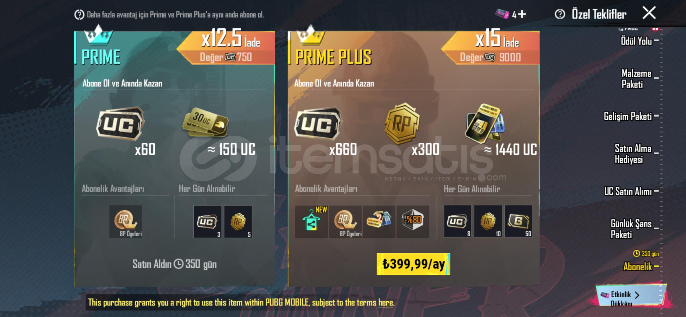 PUBG Mobile kategorisinde 15 gün adı altında satış yapılması kesinlikle kabul edilemez, gerçeği yansıtmayan ve doğruluğu olmayan bir işlem olduğu için yasaktır, tespiti durumunda lütfen bize bildiriniz.