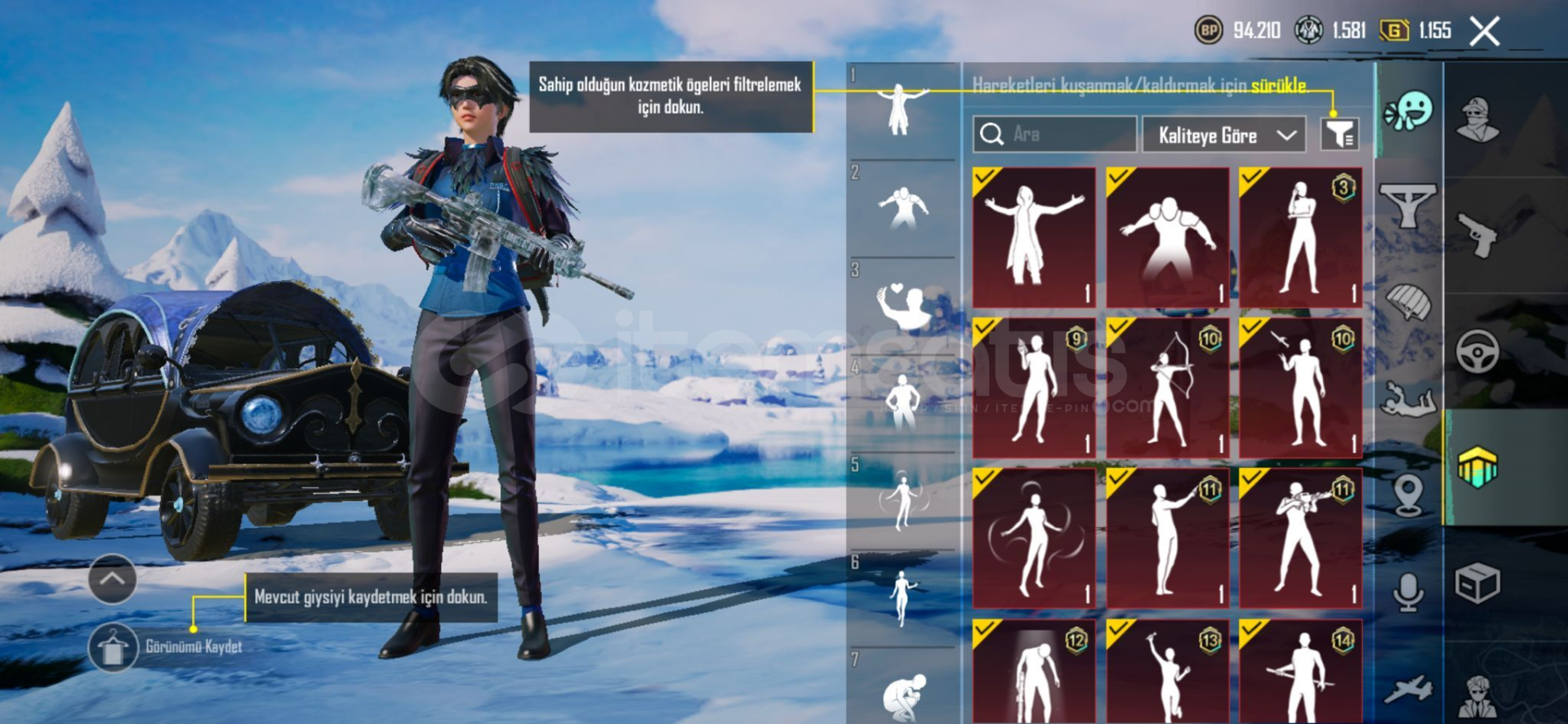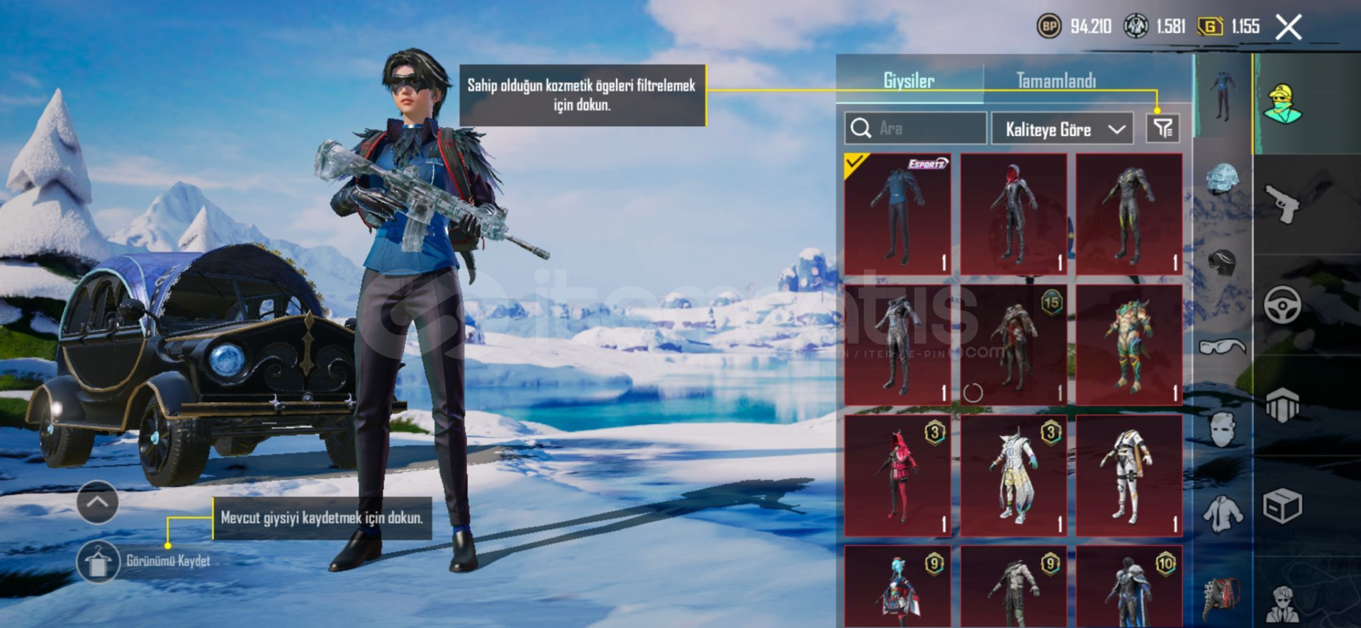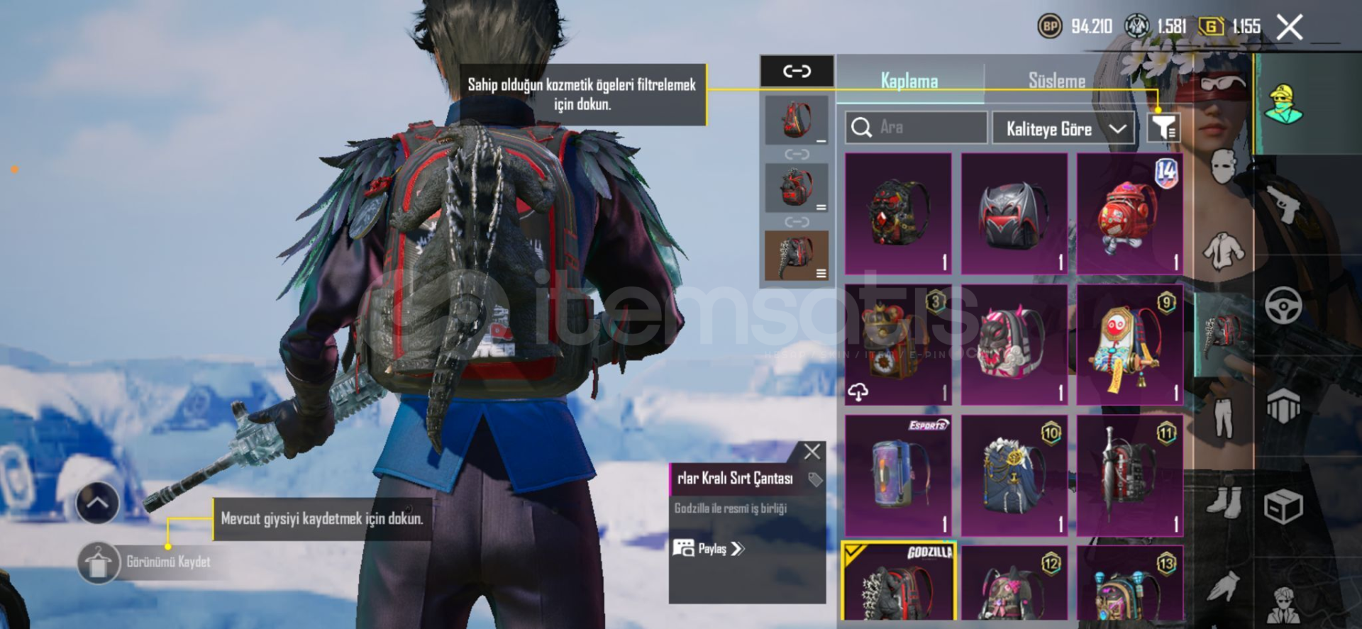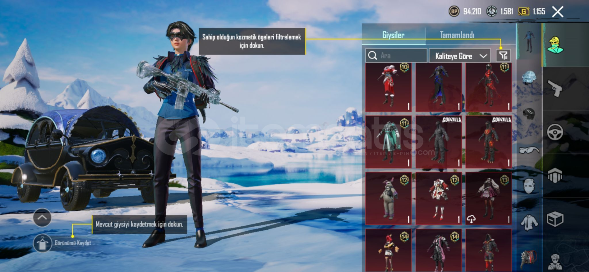 🔥 Yükseltilebilir SilahlarHesapta seviyesi yükseltilmiş, oldukça değerli birçok silah bulunmaktadır:Buzdiyarı M416 – Seviye 5Maskara M416 – Seviye 2Küçük Midilli M762 – Seviye 38 Bitlik Patlama UMP45 – Seviye 3Çığlıklar Sirke Arbalet – Max SeviyeRuhani Muhafız Uzi – Seviye 2Tundra Şövalyesi Hançeri – Seviye 2👉 Toplam 18 adet yükse...