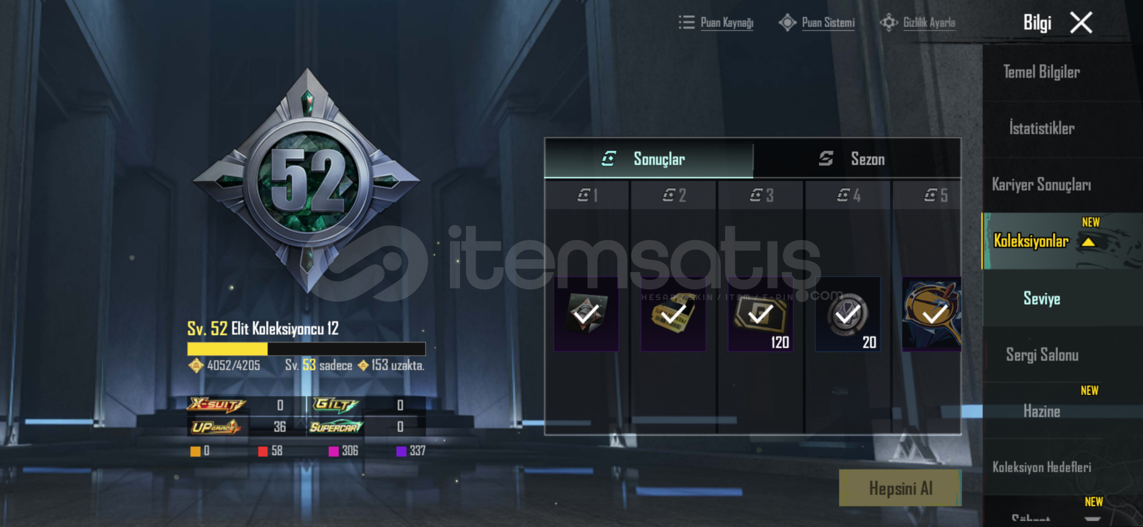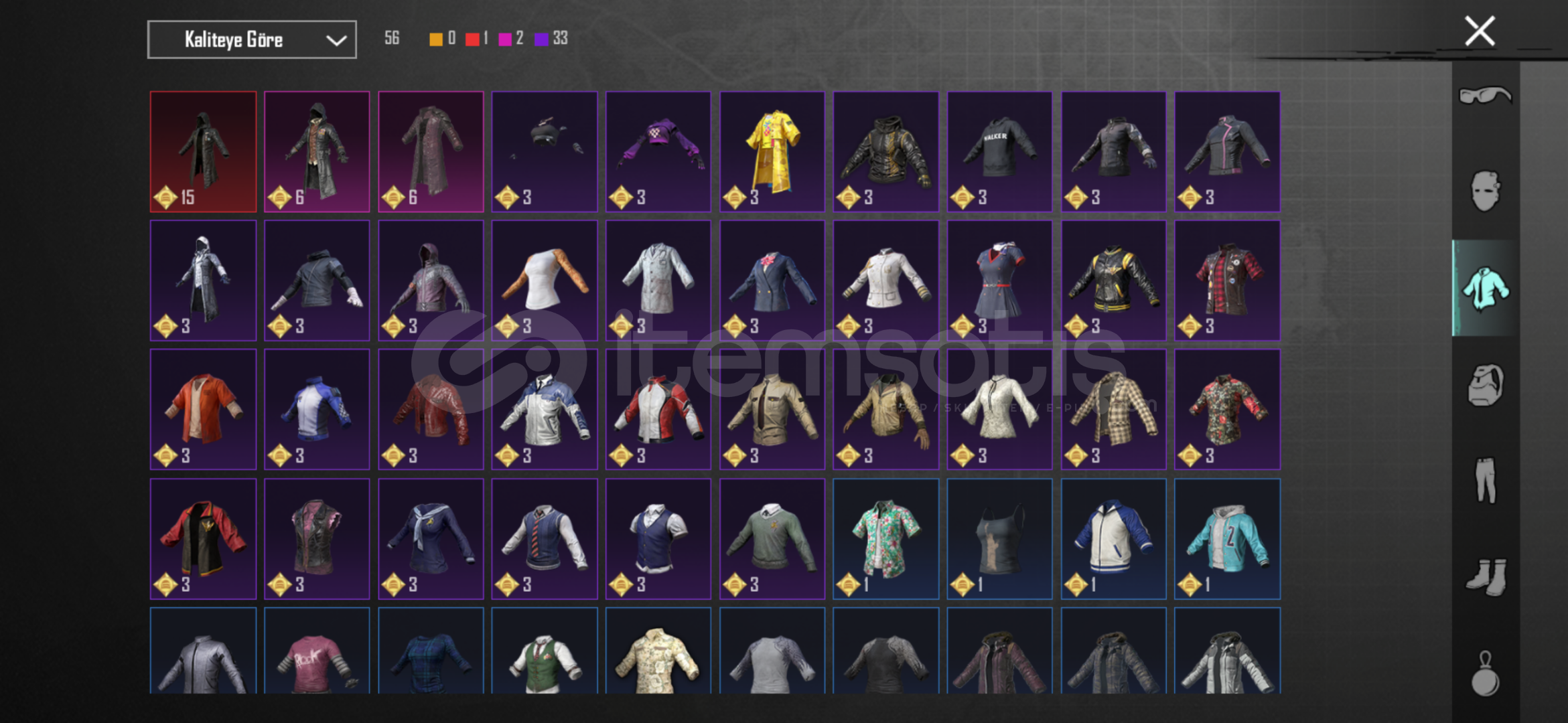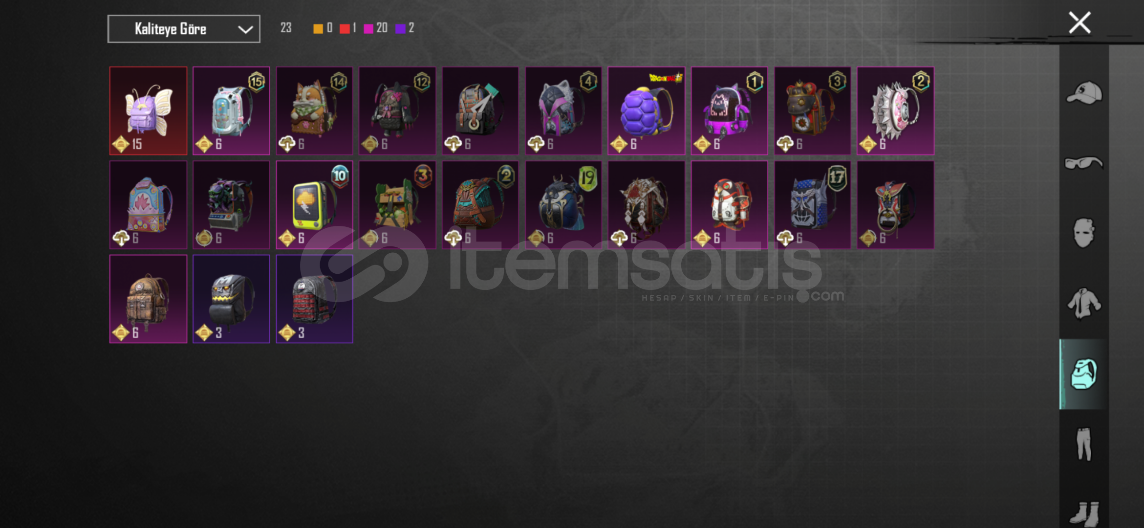 60 destansı 36 yükseltilebilir silah 2 dodge toros ve sedan ikili 36 - silahın 30 u 3 lvl silahlar da mainlikk 4x toros deseni 2x uaz crew üst komutan seti full ananas seti full Sarı mumya akülü zırh seti full s2 maske - s2 korucu seti Koyu altın seti full şeytan boynuzuPlayerunknow seti buz diyarı 3 mumya m4 - 3 kaplan m4 - 6 + 2 mataryel - rp açık 2 tane saç daha sayamadığım bir çok şey