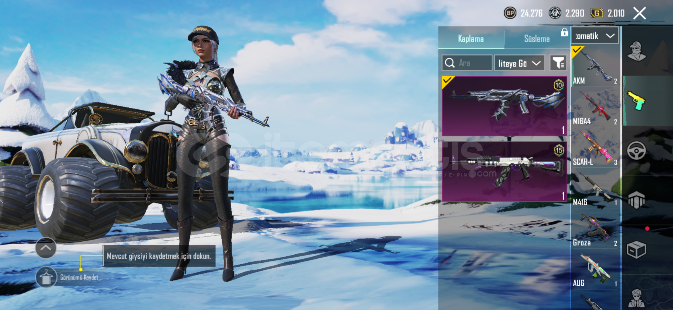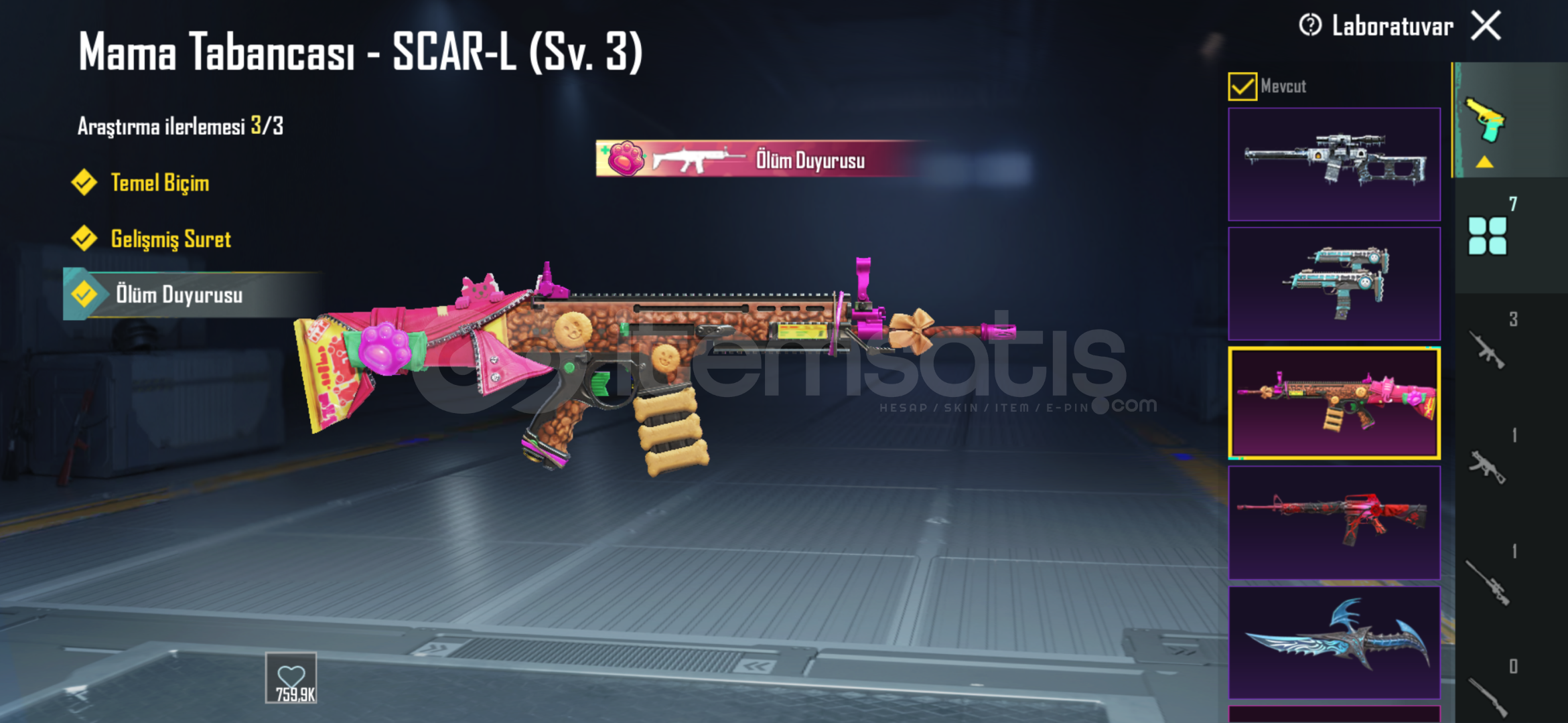 72 Silah Deseni 7 yükseltilebilirScar fulluzi fullm7 3hançer 3Yükseltilebilir 2 araçyükseltişebilir bombatek bağroyal pass fullendi bonus pass acık