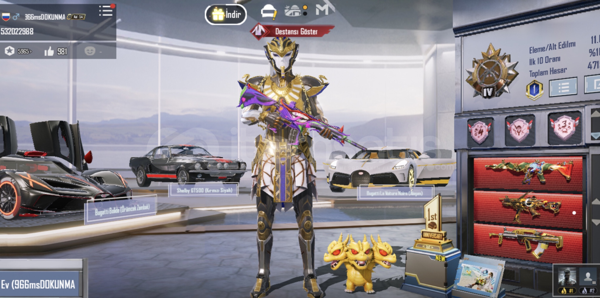 Öncelikle merhaba4k uc hesapta mevcut eğer erken satılırsa hediye olarak alan kişiye verilecek180 günlük prime plus aboneliği364 günlük prime aboneliği vardır3x Glitch3x xsuit4 seviye firavunmaskara seti2x destansı bugatti2x Shelby1x lotusmaskara m4 6 svyakan kükreme m4 7 svRuhBicen ump 7 sv (bütün eklentiler açık )kumral krallığı akm 5 sv (vurma efekti açık)İskelet cellat ...