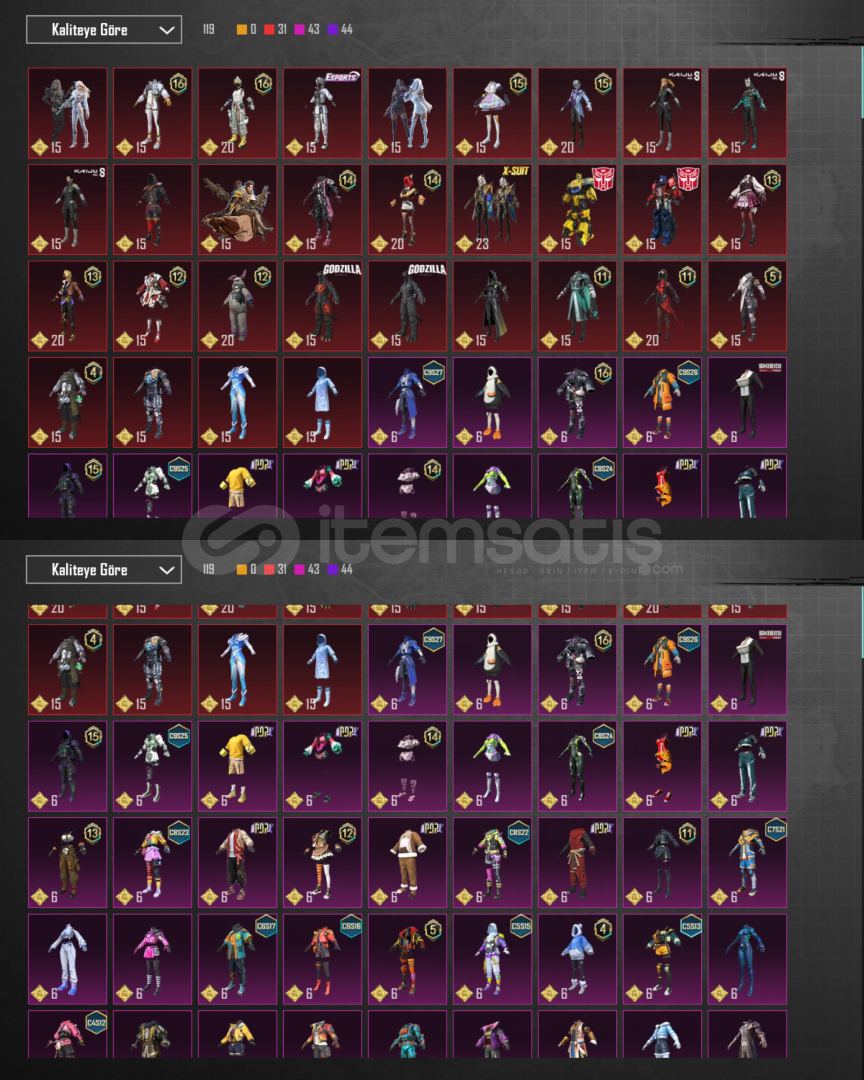 Hesapta 41 destansı 45 level koleksiyon seviyesi 16 yükseltilebilir silah 4 yükseltilebilir araç var destansı Godzilla yoldaş ve Firavun kedi yoldaş 61 level 7 uçak deseni 5 de helikopter desen mevcut