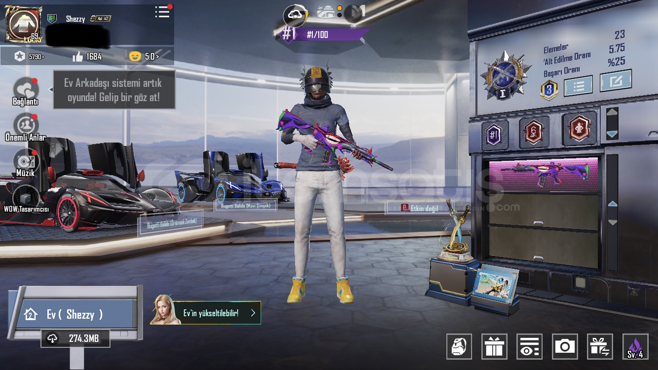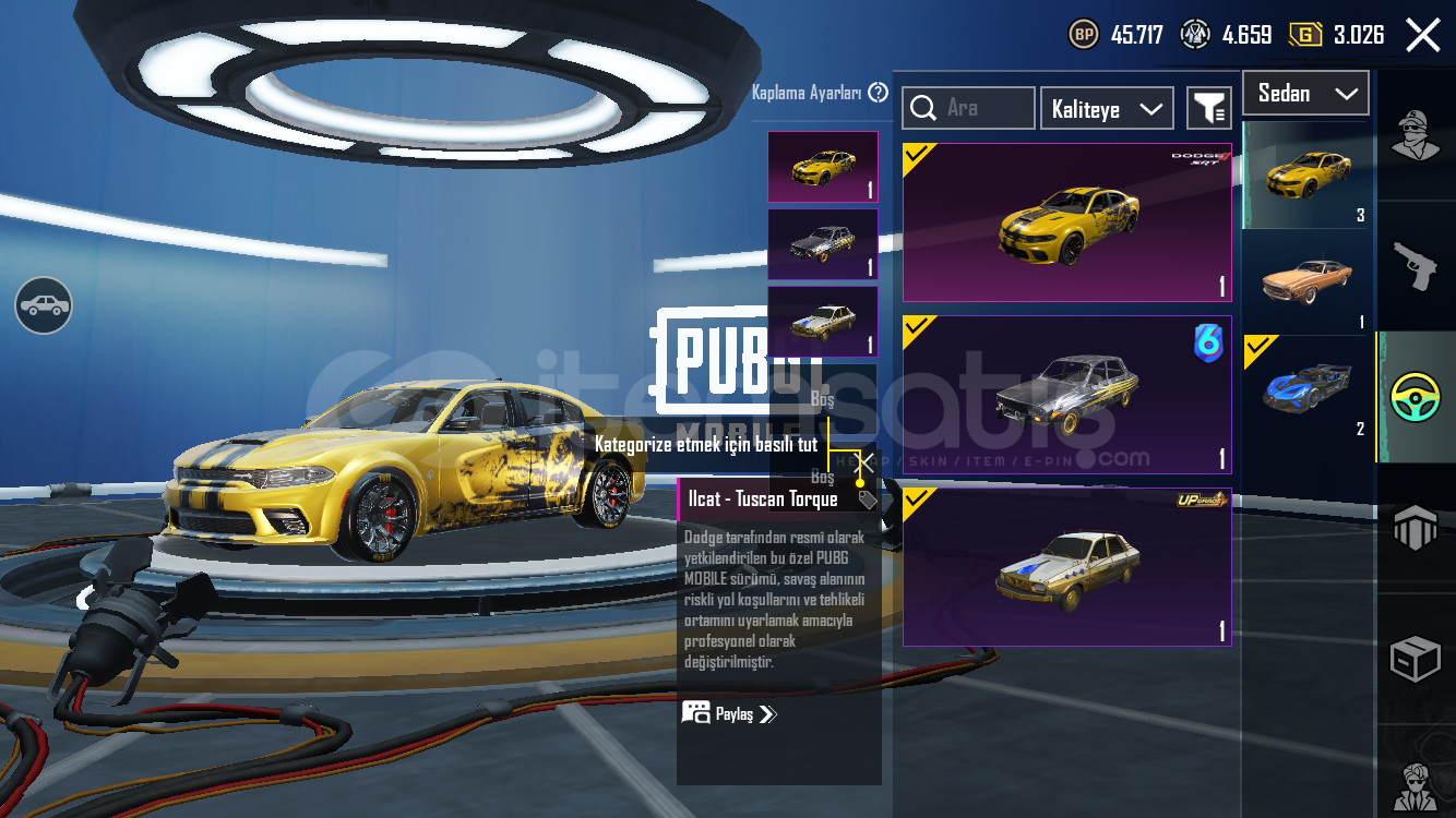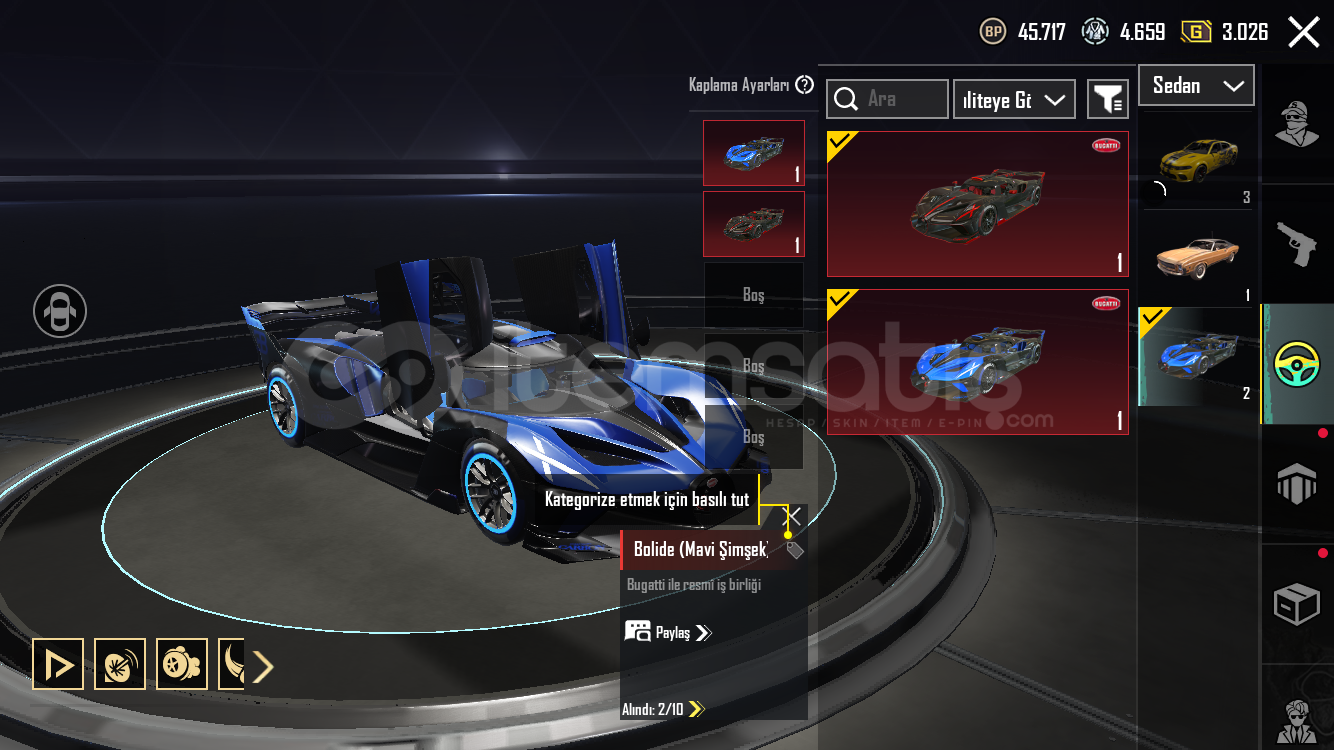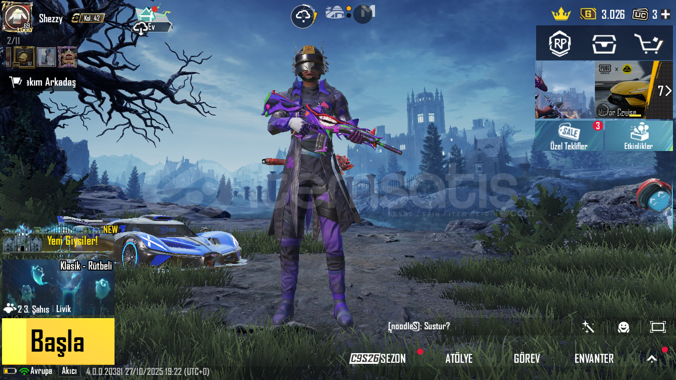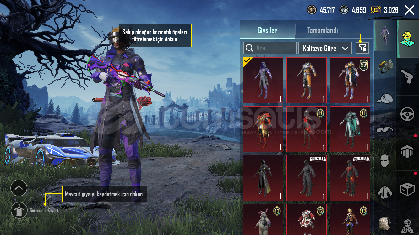 Hesap değerinden düşüğe satılmaktadır 3 adet spor arabası bulunmaktadır çok güzel nadir kombinleri vardır ve maskara setide vardır maskara m4 5 seviyedir 12 adet geliştirilebilir silahı vardır destansı medyum kaskı bulunmaktadır