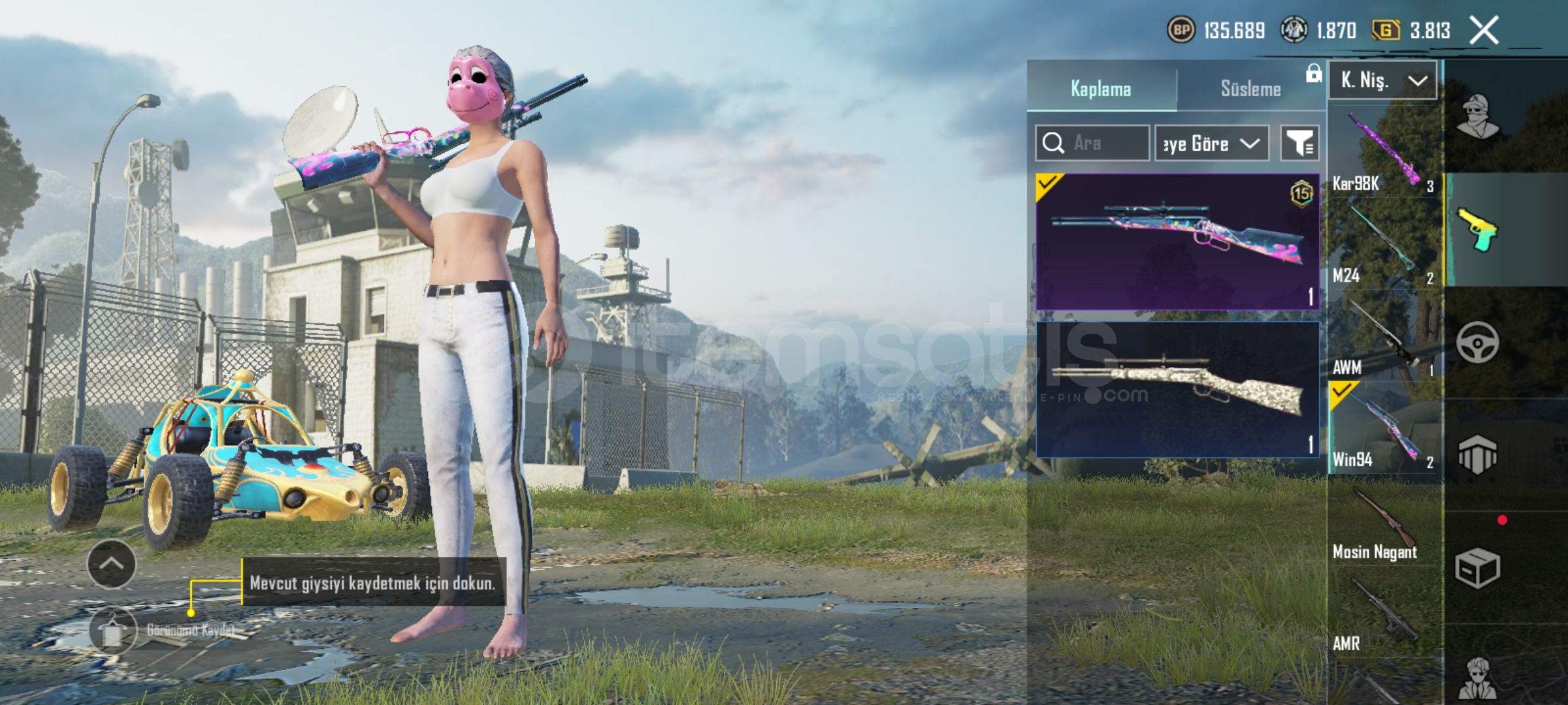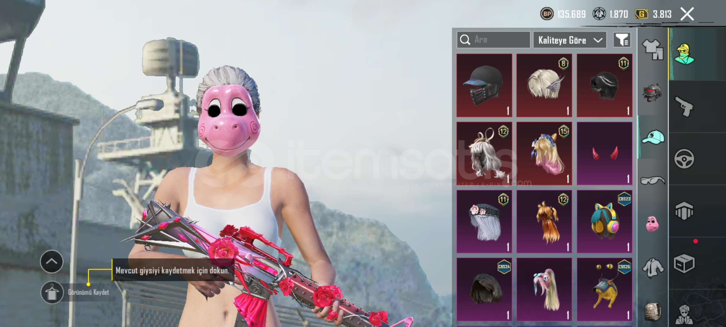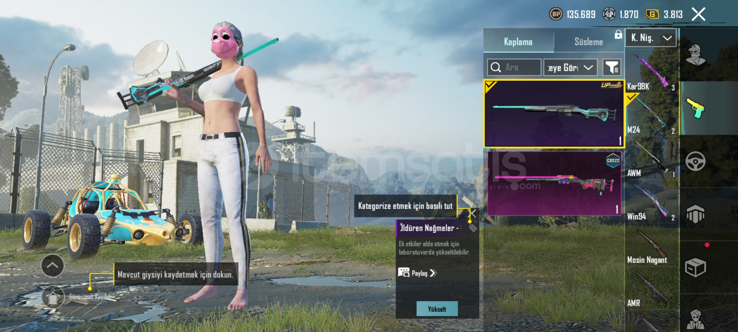 Hesapta 9 adet yükseltilir silah var şirin kedi kar98 öldürme mesajlı midilli M7 2 lvl yarın operasyonu var badici seti var 15 adet destansı set var