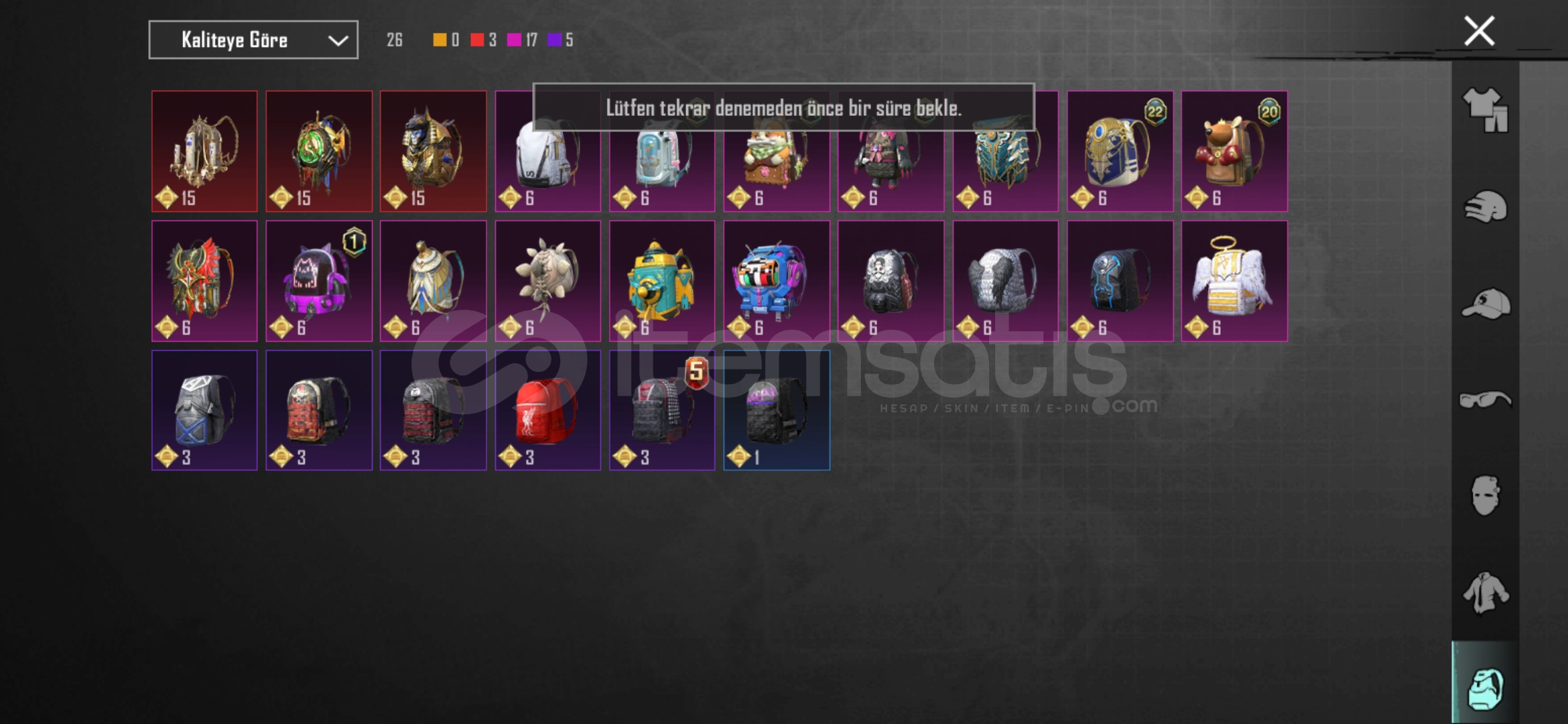 Hesapta x süit 1 lvl 13 tane yükseltile bilir buz 5 aug awm 1 lvl unicorin m7 3 lvl kus var 49 koleksiyon rp açık emek hesap nihayi baslik kask canta ve daha fazlas ve sehir Muhafızı seti ve siyah tişört var pazarlık vardir cidi alıcılara bekliyorum sizi