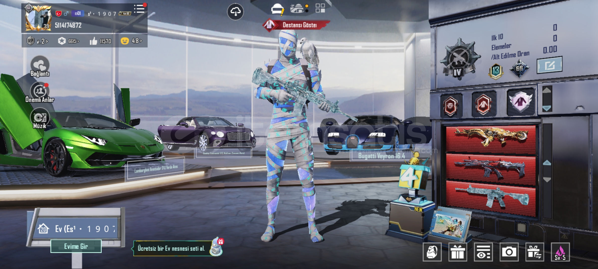 Emek hesabımdır para lazım olduğu için satıyorum hesapta silahlar arabalar5114174872 id