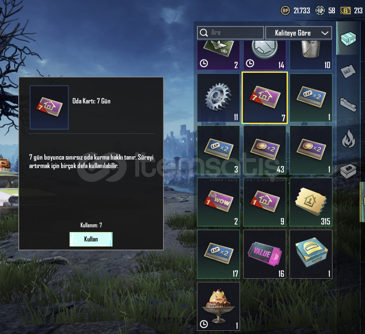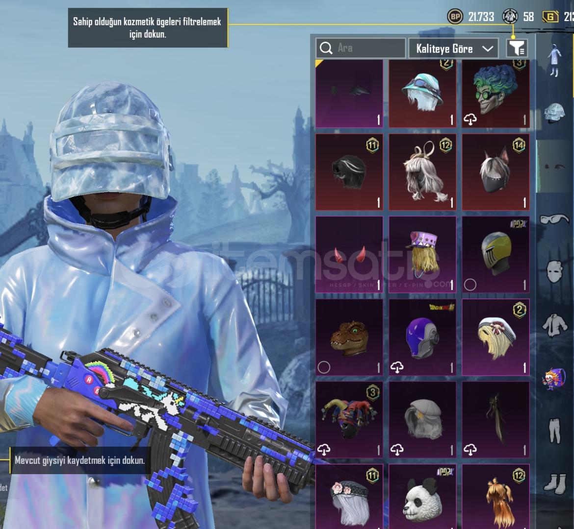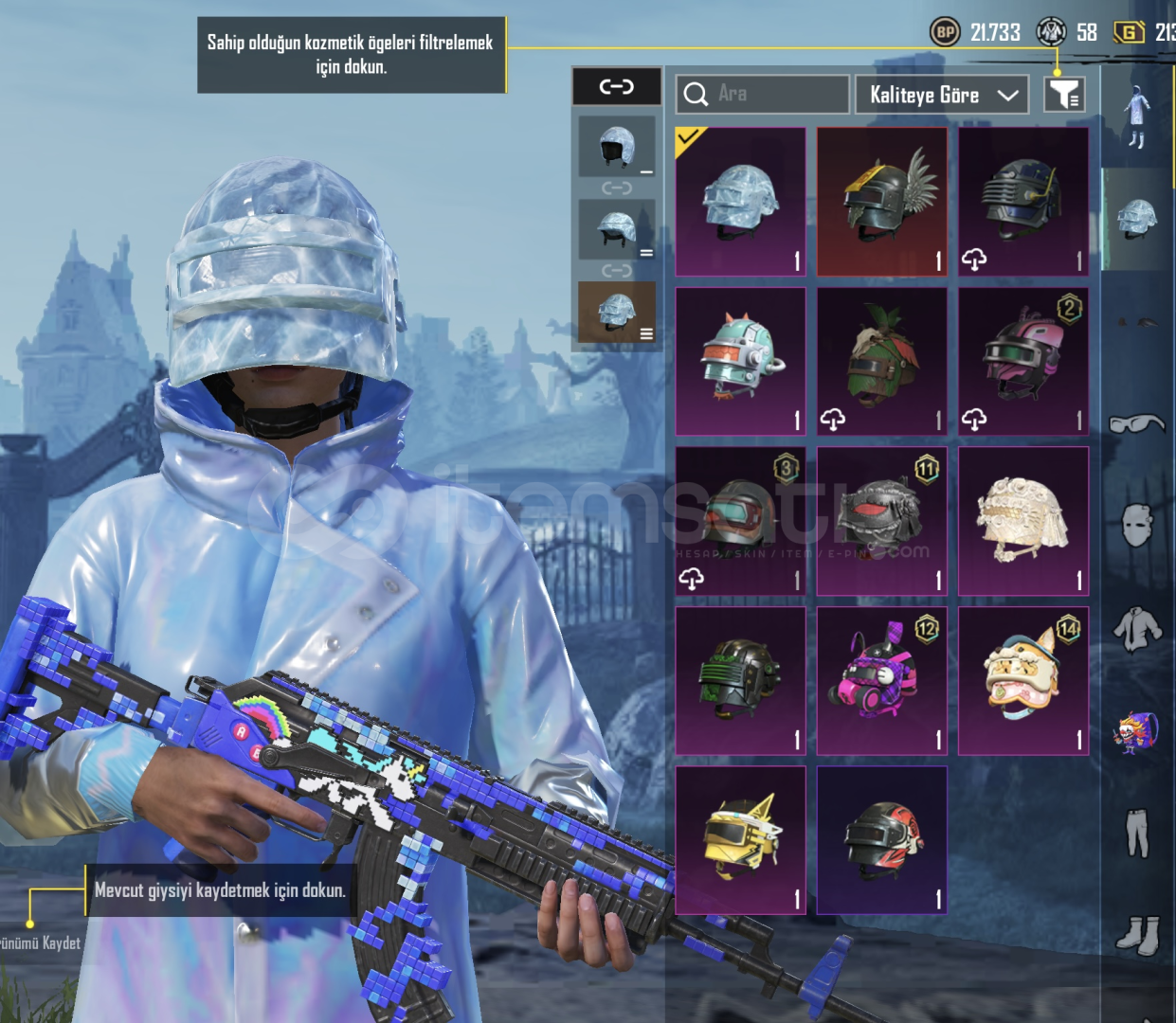 Hesapta maskeli medyum kaskı buz diyarı seti seri katil seti buz kaskı 12 tane yükseltilebilir vardır hesaba 7 gün girip E postayı değiştireceksiniz.
