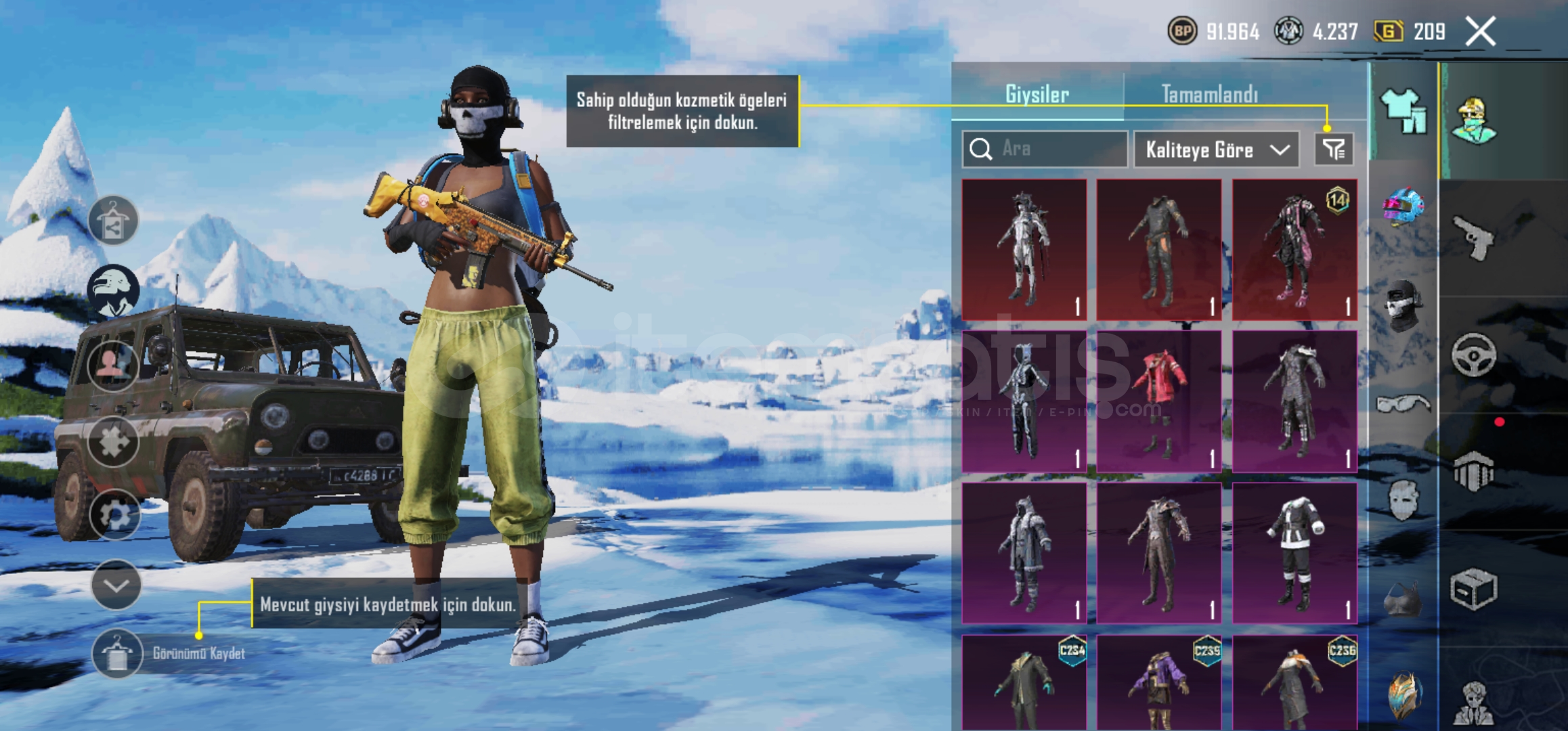 hesapta kar98 veya scarli fulleyecek kadar malzeme var aldığınız zaman istediğinizi basarsınız hesapta 1 sezon rp açık gerisi fotolardaki gibi alan kişiye hayırlı olsun hesabı bende alıp kullandım şimdi oynamadığım için satıyorum o yüzden tüm bağlar sağlam değil seçeneğini seçtim bağlar bana ait