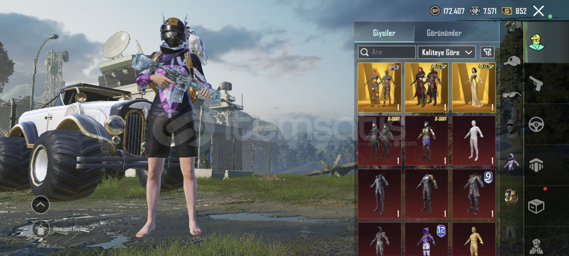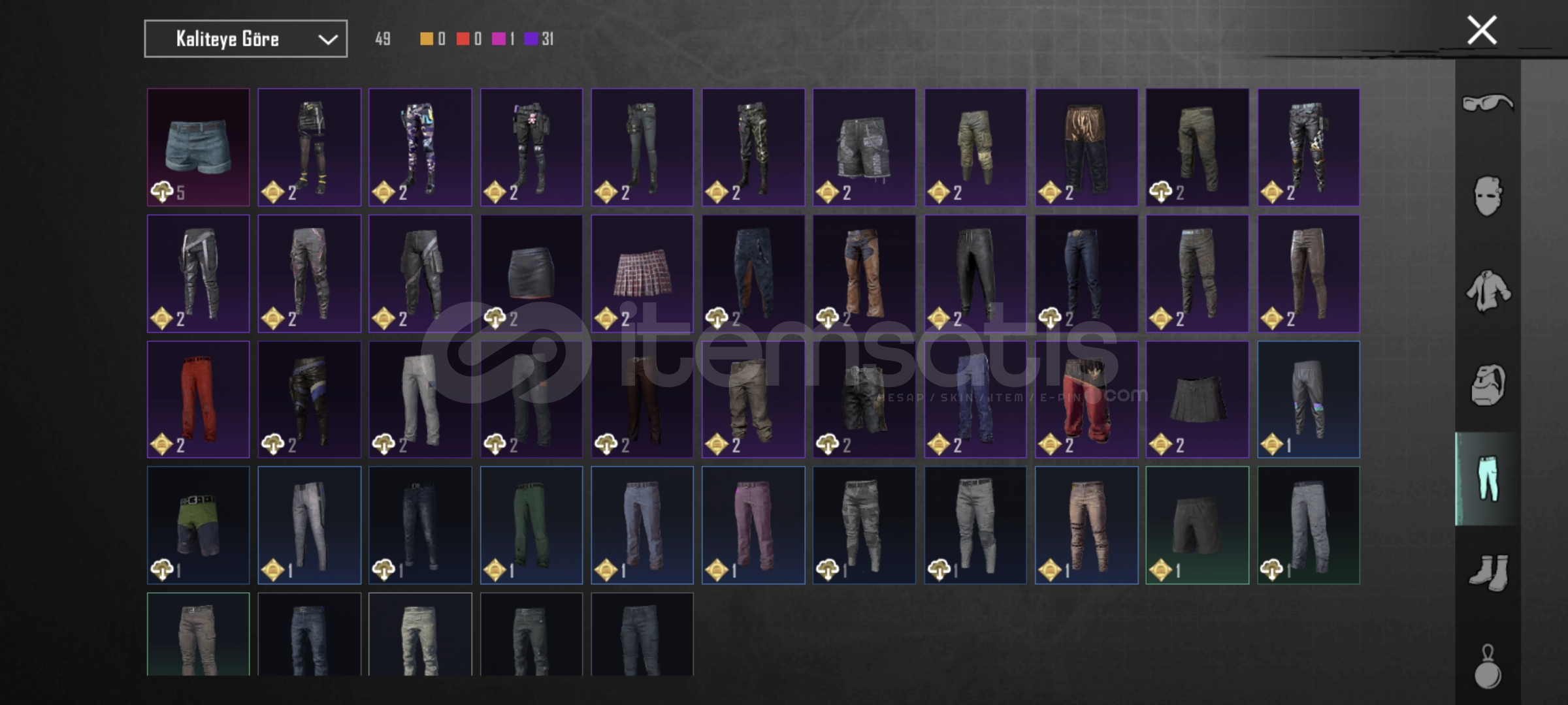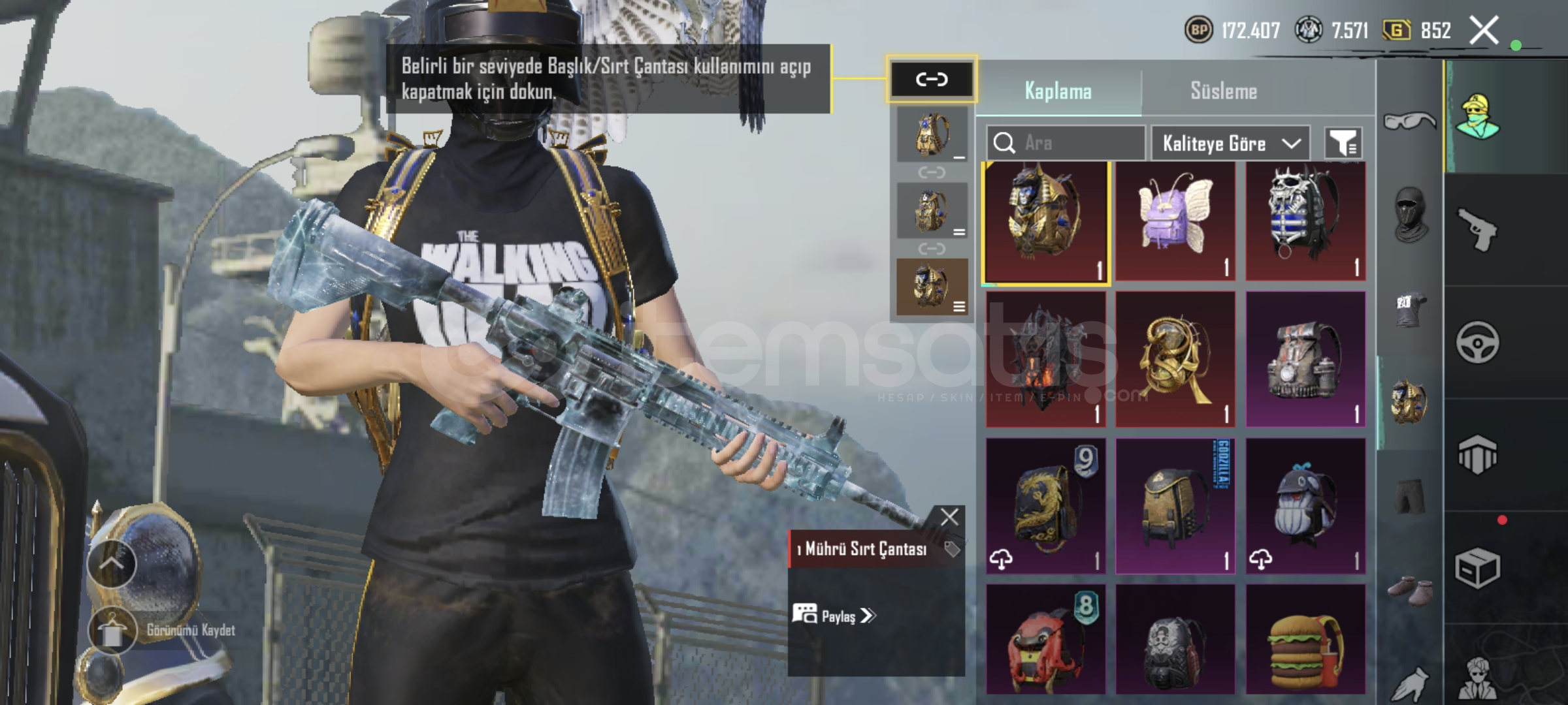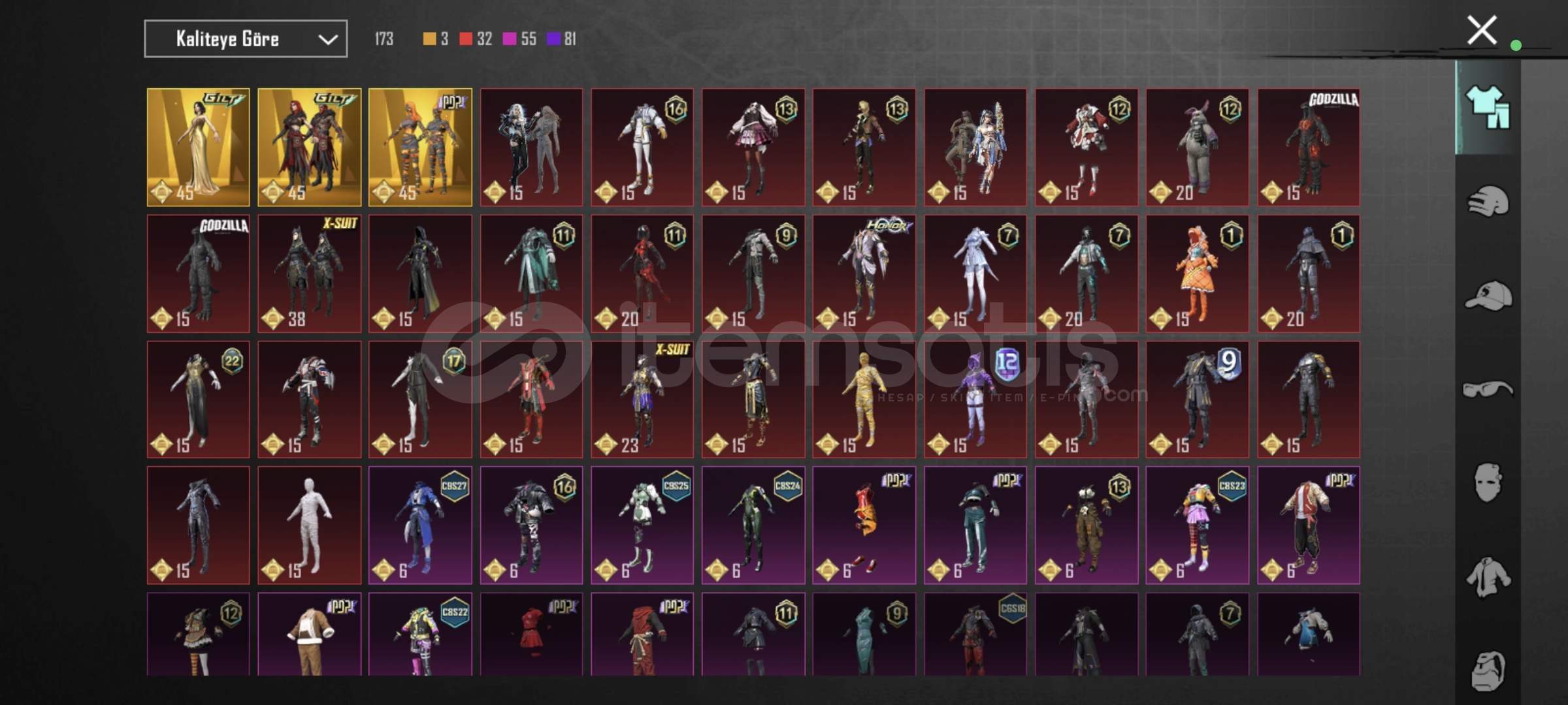 Alevli mumya + beyaz mumya + sarı mumya 3 nihai+sporcu üstü mor + walkin dead üstleri + daryl dixon + m4 buz diyarı 5 +kumlar krallığı AKM + dps 4+ mk 5 ve daha fazlası en uygunu
