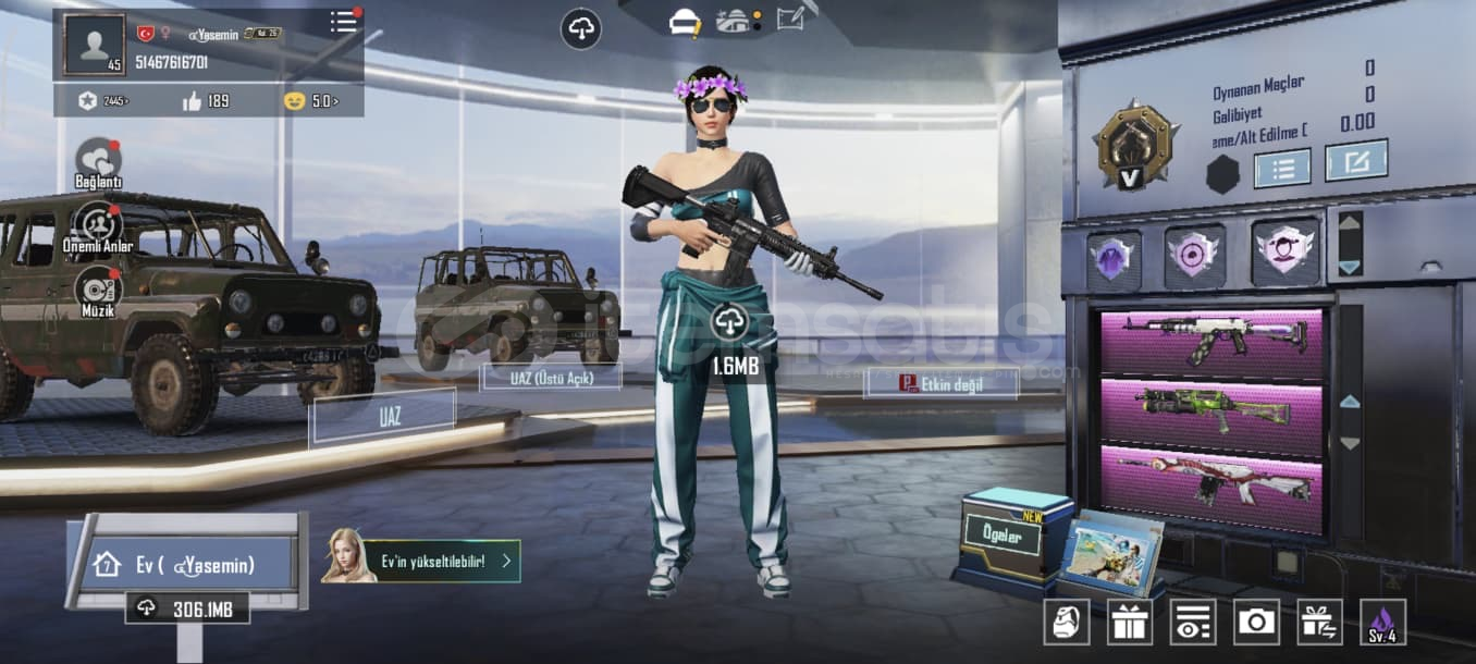 Hesap 45 sv içinde 4 metaryal var bi araba yeri açık 3 silah yeri açık isim kartı mevcut hesapta 500 var