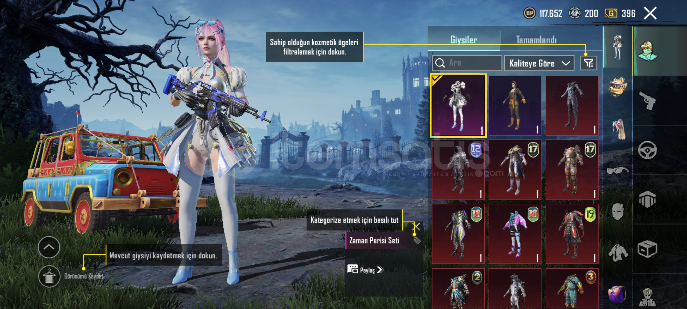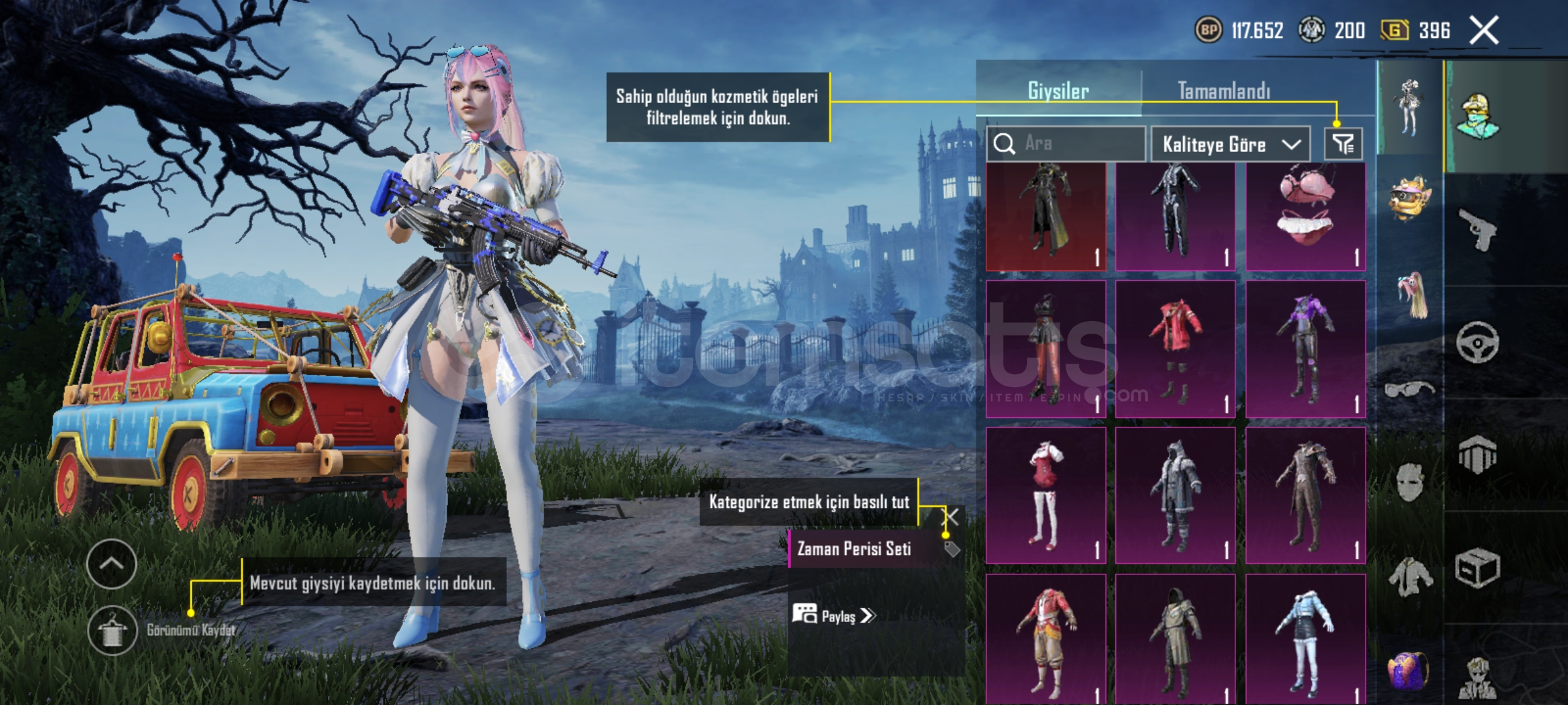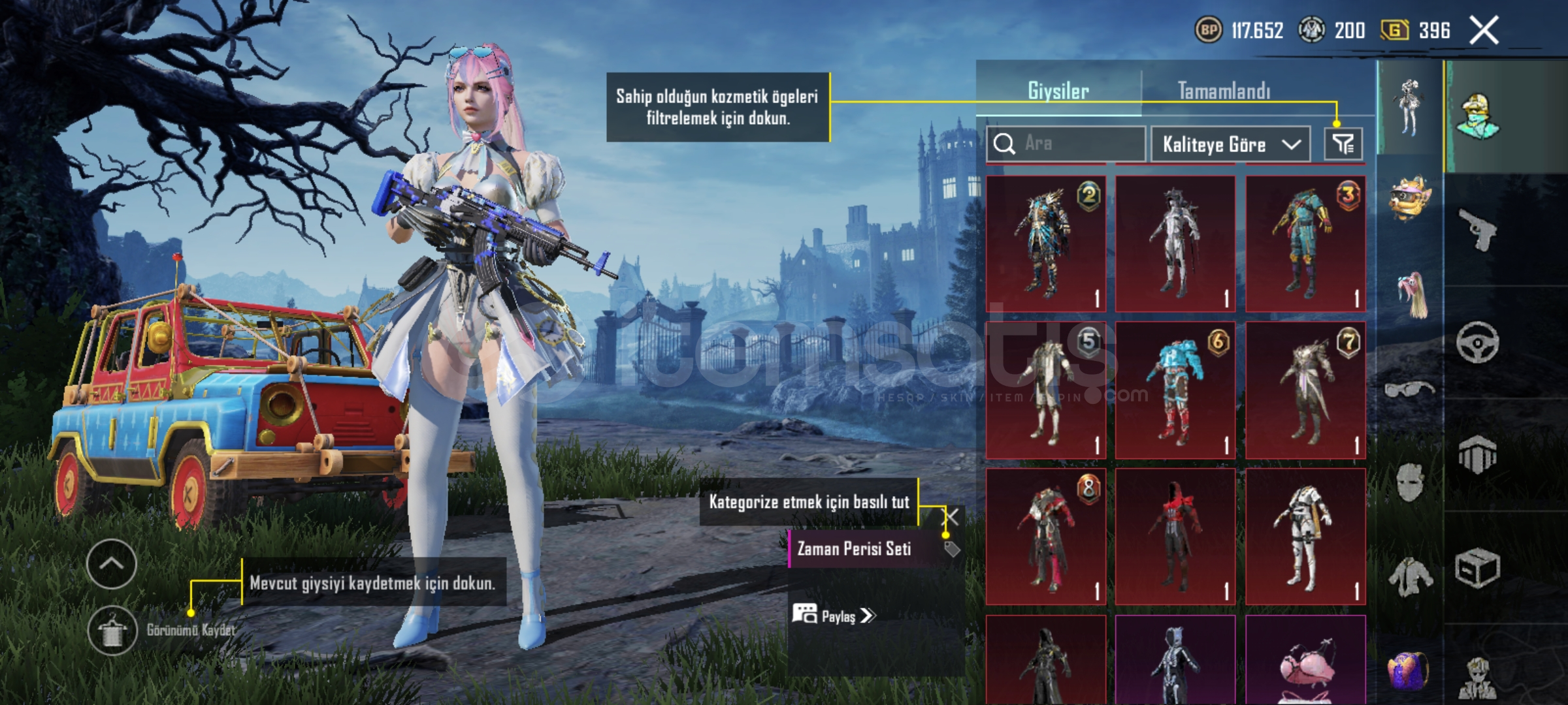 74 seviye hesap. 18 sezon Fatih.Buz Diyar ve ünicorn silahları var. Seviye yükseltmeli araç var .