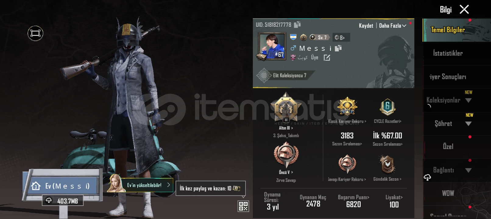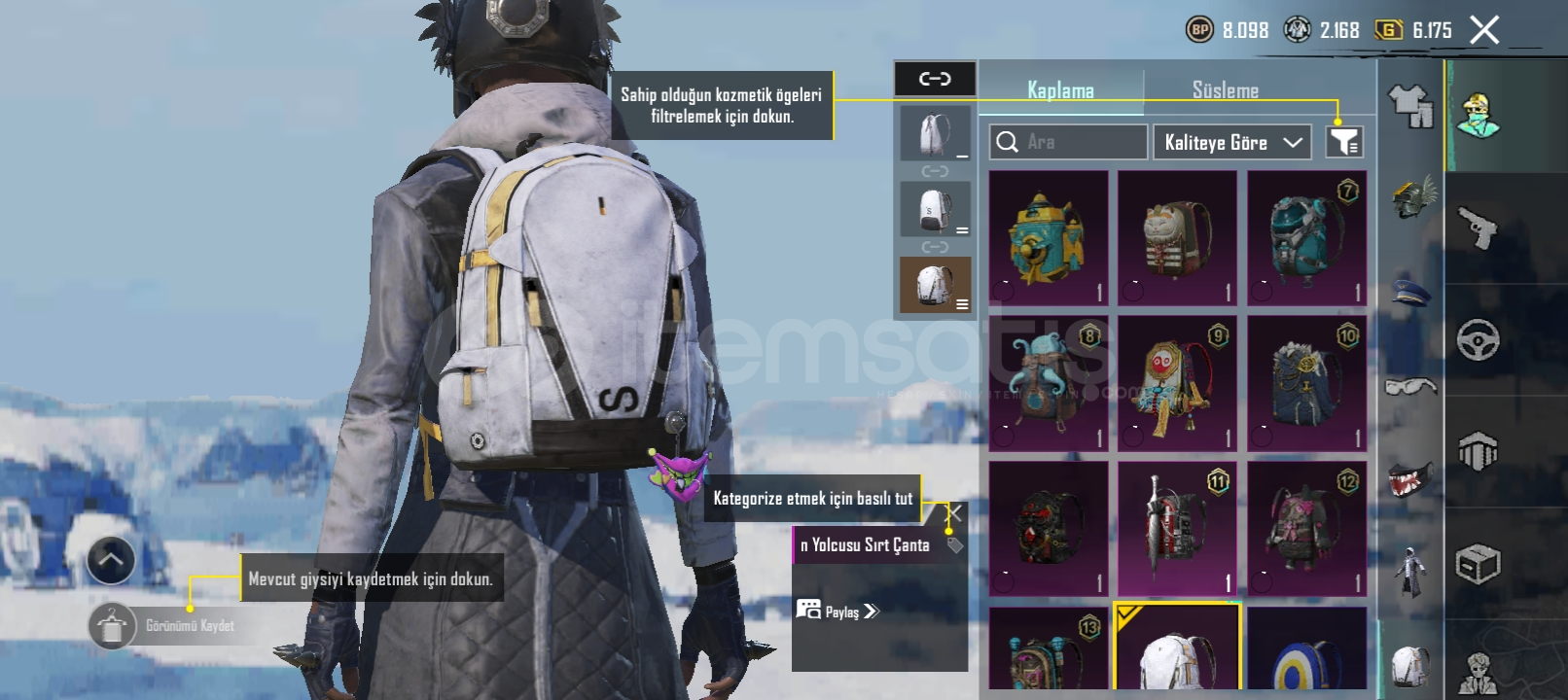 Hesapta zaman yolcusu sırt çantası 14 tane yukseltilebilir silah Full Midilli m762Değerli şeyler kombinlik setlerDeğerli kask çantalar silah desenleri bulunmaktadırFotoğraflardan id ye bakıp koleksiyon kısmından hesabın içeriğine bakabilirsiniz