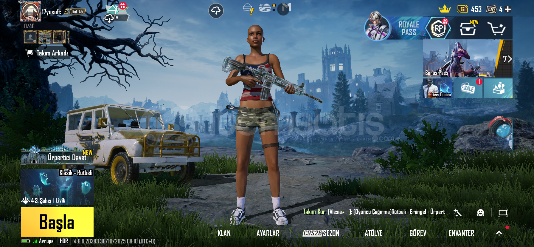 2 tane ÖLÜM DUYURULU SİLAH VAR 100% GÜVENLİDİR BUZ DİYARI MİDDİLLİ M7. İSKELET M16 VAR 31 destansı var ESKİ SEZON DEGERLİ UAZ VAR
