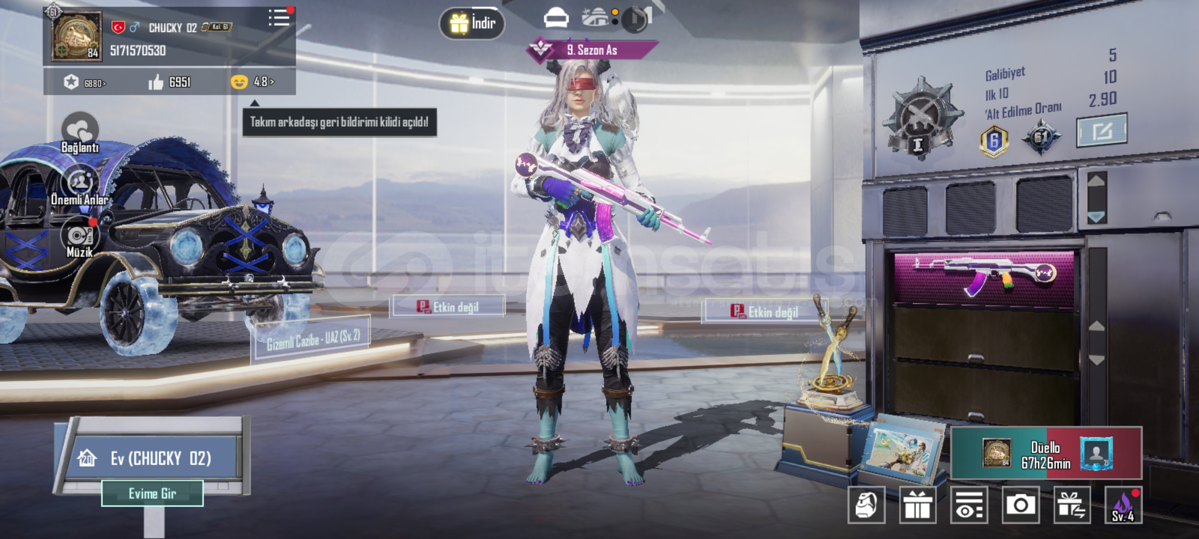Selamın aleyküm. Tek bağ form yememiş. İd : 51715705302.sezondan beri oynanan hesabım satılıktırToplamda 29 defa as olmuşturSezon 2-10 emojilerToplamda 27 defa RP açılmıştır Koleksiyon seviyesi 6184 seviye86 destansı 23 yükseltilebilir (3-4 tanesi ölüm duyurulu)Anukhra zirh 3 seviyeAlevli mumya