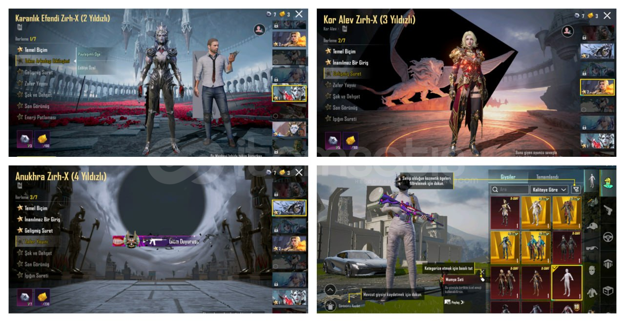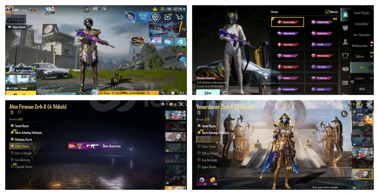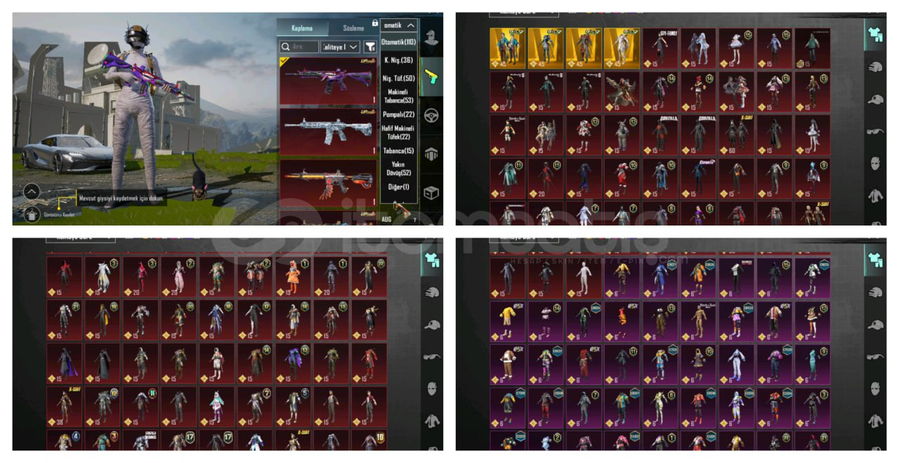 BU HESAPTA PATRON HESABI..BU HESAPLA PUBG SENİN EMRİNDE..HESAP LVL 86146 DESTANSI MEVCUTTUR..MUMYA SETİ MEVCUTTURALTIN FİRAVUN 4 YILDIZ (ÖLÜM DUYURULU)ANUKHRA ZIRH 3 YILDIZ.KOR ALEV ZIRH 2 YILDIZ.S2 PALYAÇO MASKESİ MEVCUTTURİSİM DEĞİŞTİRME MEVCUTTURKOENIGSEGG SPORT ARABA MEVCUTTUR DACİA..DODGE CHALLENGER SRT MEVCUTTURTÜM ARABA DESENLERİ SÜPER..53 YÜKSELTİLEBİLİR MEVCUTTUR3 TANE M416 7 ...