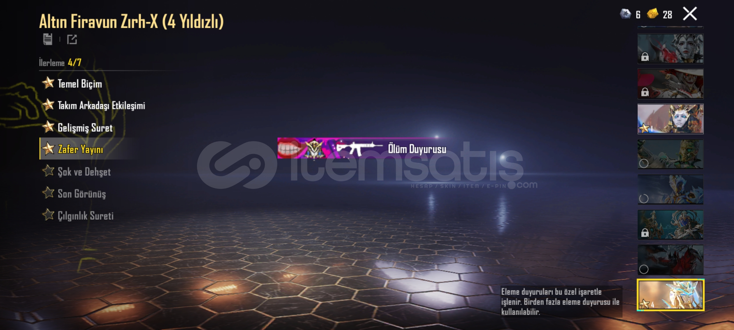 DETAYLI VİDEO : https://youtu.be/HYtJrsqs-ec?si=RuQ9FMrlO28KVEBT• 77 HESAP SEVİYESİ• 61 KOLEKSİYON SEVİYESİ• 2.2 MİLYON POP• C8S22 - C8S23 - C8S24 FATİH• S4 SAÇ AKTİF• 2 DESTANSI LOBİ• FİRAVUN X-SUİT - 4 SEVİYE• GALADRİA X-SUİT - 2 SEVİYE• DRAVİON X-SUİT - 1 SEVİYE• ANUKHRA X-SUİT - 1 SEVİYE• YANARDÖNER X-SUİT - 1 SEV...