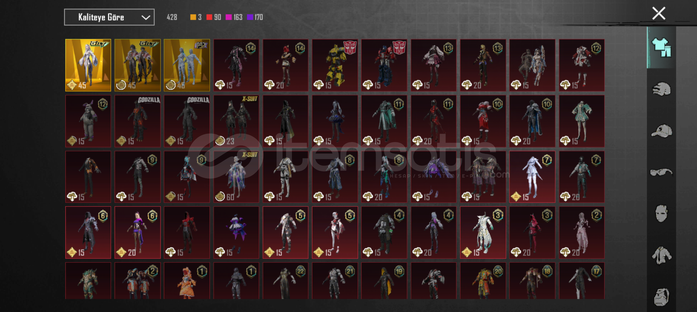 Hesap bilgileri temizdir Hesabı actigimdan beri bende kesinlikle bir yerden alınma değildir Eski sezon hesabıdır Tüm bilgiler Teslim edilecektirX suit destansı dolu hesaptır