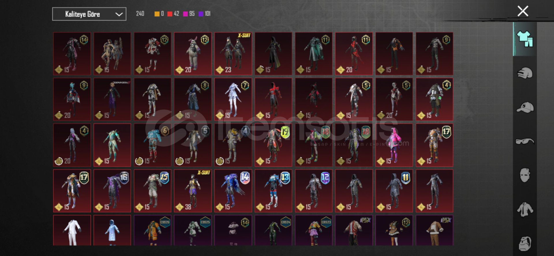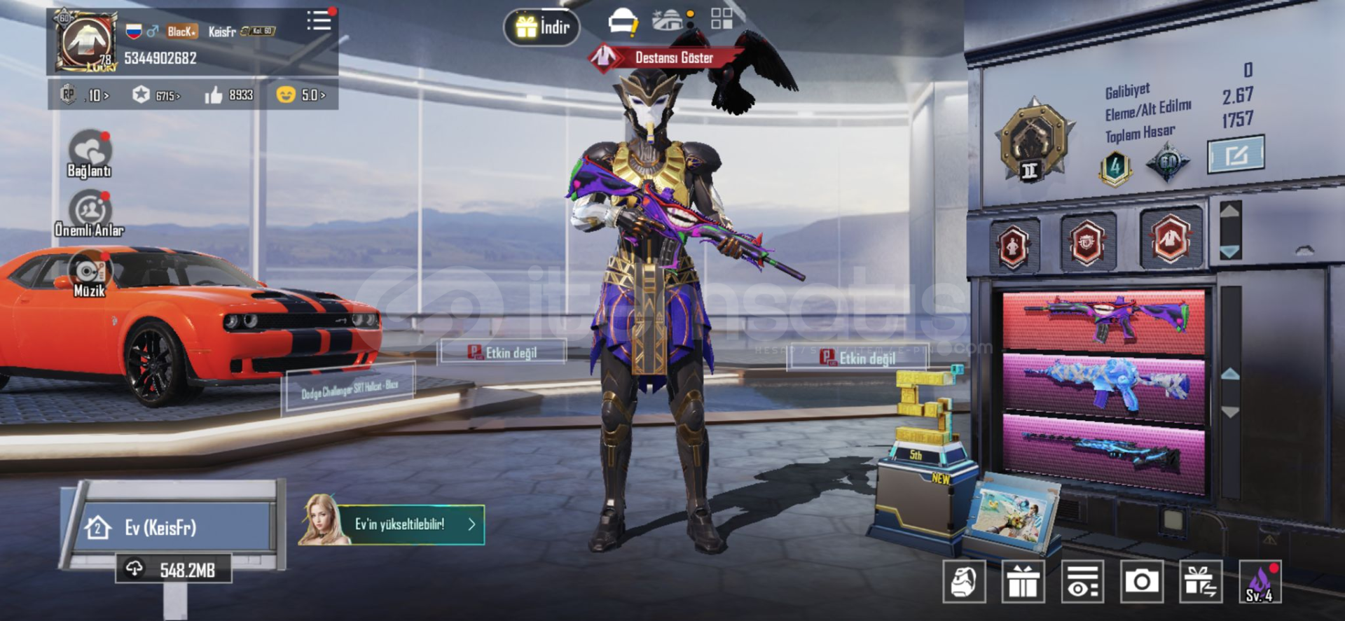 Koleksiyon serisi 60dadır firavun var godzilla awmsi var(ölüm duyurulu) m4 maskara var(full) +m4 2 tane desen dodge challenger(kırmızı) nadir akm var .....(pazarlık payı vardır)