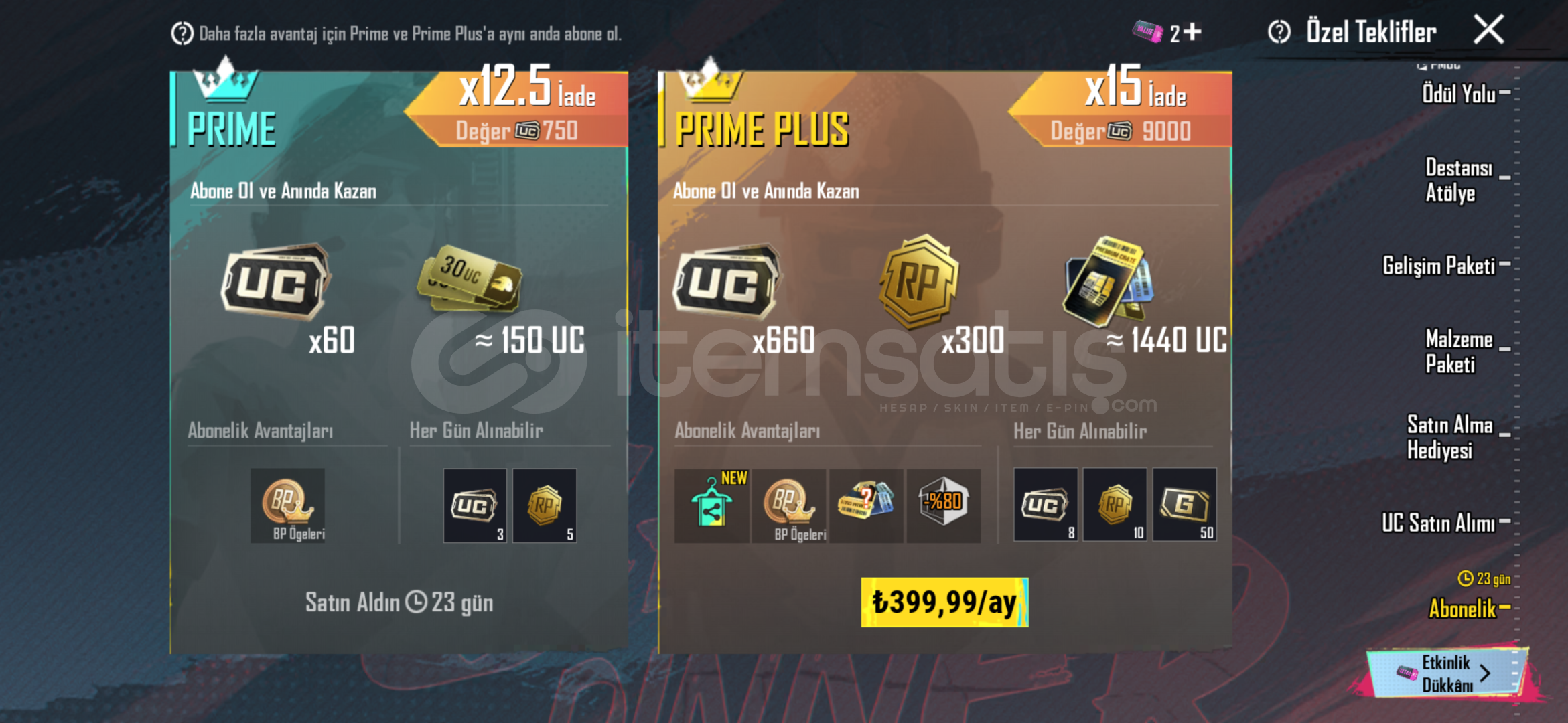 1 aylık prime abonelik mevcut