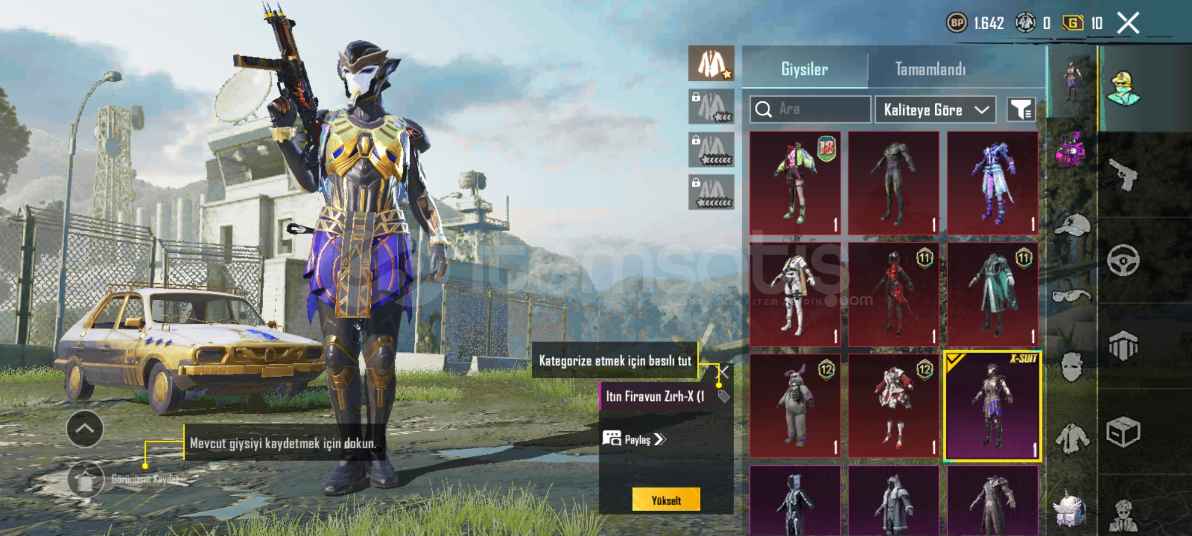 Sın fiyat belki biraz pazarlık olurİhtiyaçtan satılıkSilahlarFiravun m24 1 seviyeYasak düşler UMP 3 seviyeMidilli m7 3 seviyeYarın operasyonu scarl 1 seviyeGiysilerFiravun xsuitİşgalciRp si açık deşimler açıkAldıktan sonra play games bağını kaldırcamSizin verdiğiniz e-maili ve telefon numarasını ekliycem