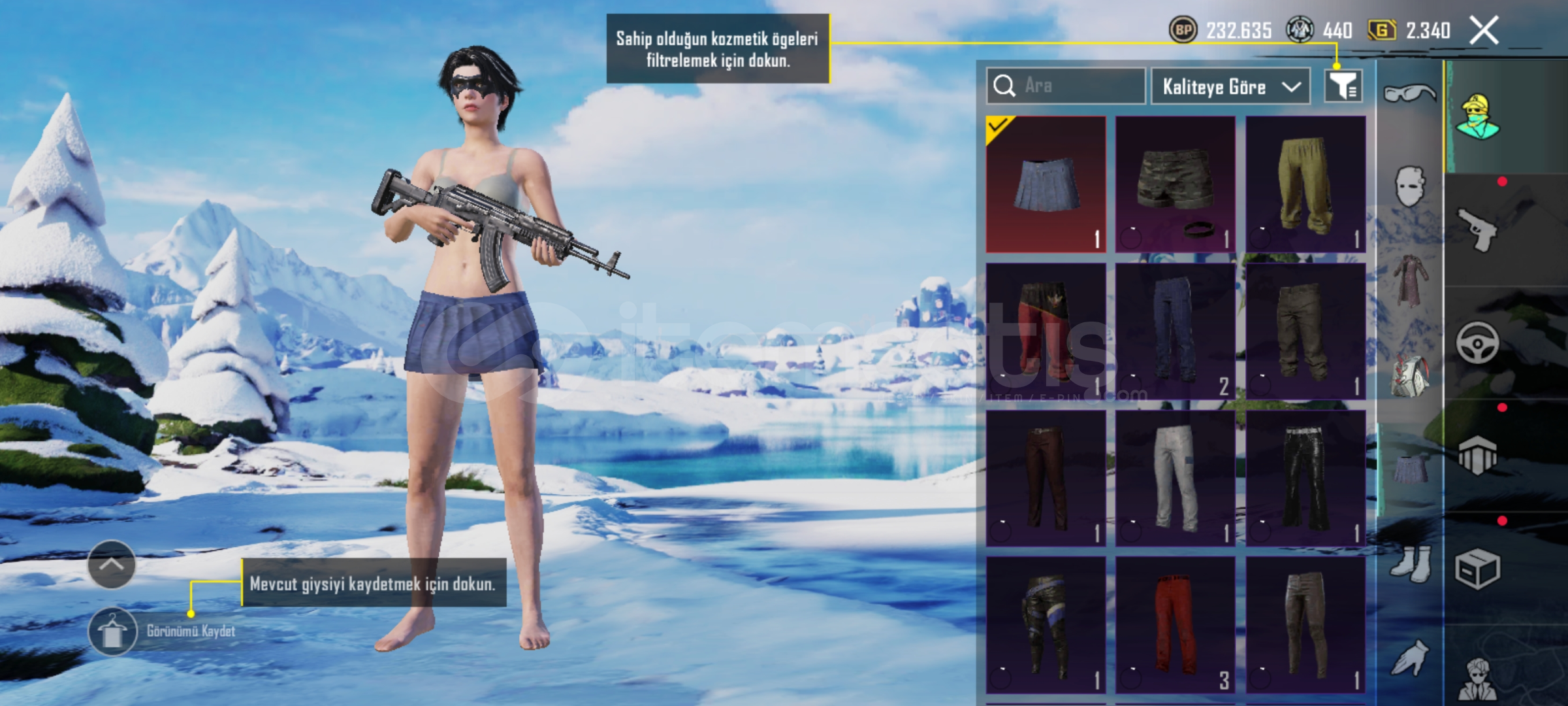 Hesapta 29 destansı 12 yükseltilebilir silah Midilli 4 seviye 15 taneden fazla destansı nadir emoji vardır nadir mini etek var sorunuz varsa dm