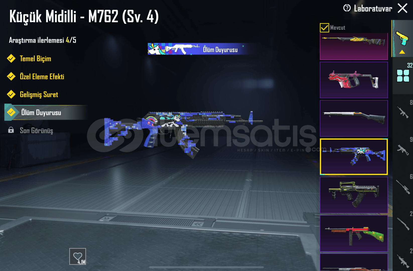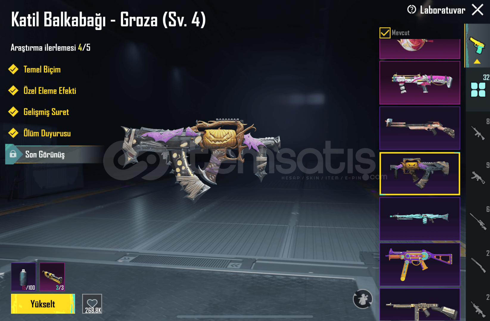 68 Destansı 2 Destansı Amblem 32 Yükseltilebilir 3 MataryelMühürlü Yeraltı m416(Sv4)Küçük Midilli m762(Sv4)Görsel İşaret Uzi(Sv4)8 Bitlik Patlama Ump(Sv4)Yükselen Ejderha Mg3(Sv4)Katil Balkabağı Groza(Sv4)Lider Panter DBS(Sv3 Ölüm Duyurusu Açık)Peri Cazibesi Tava(Sv3 Ölüm Duyurusu Açık)Zarif Leylak Thompson(Sv3 Ölüm Duyurusu Açık)Ş...