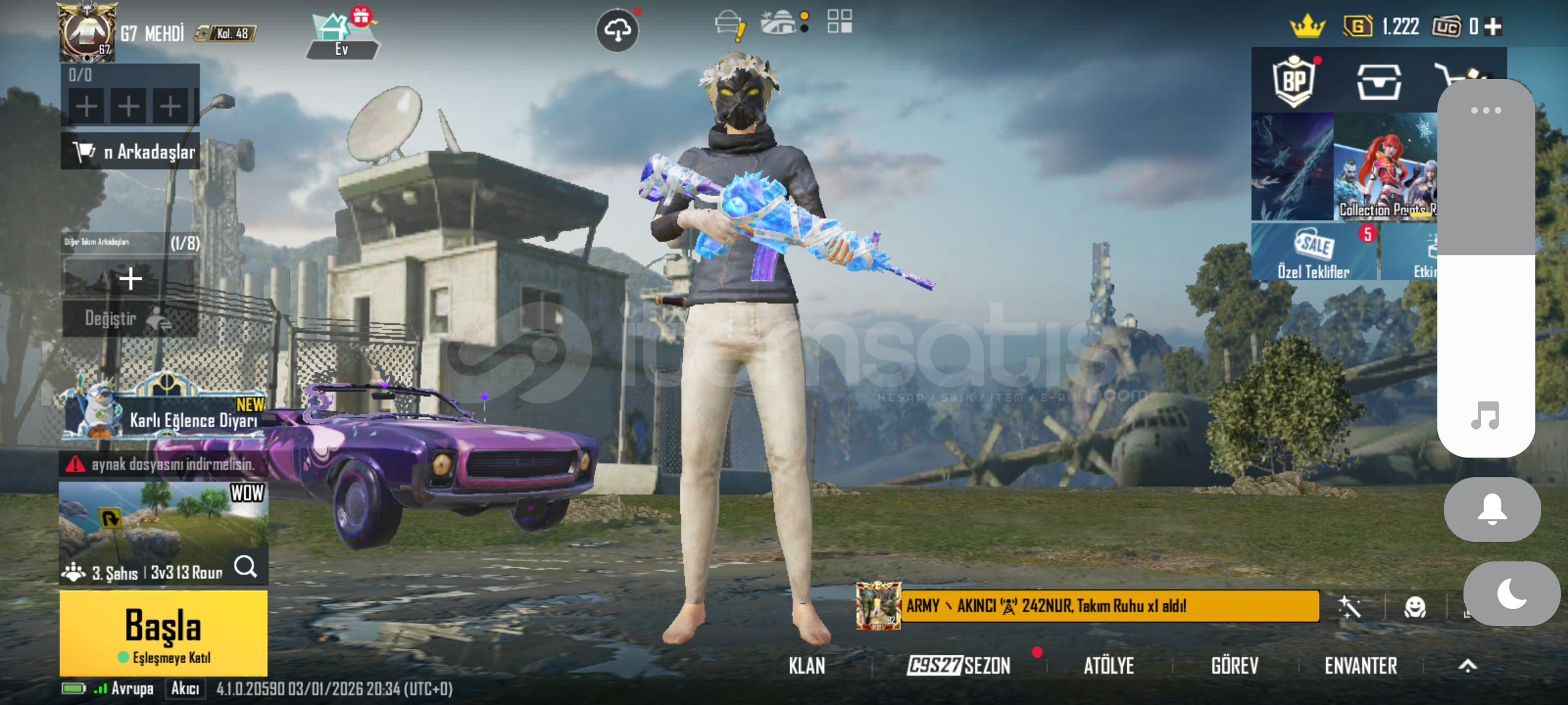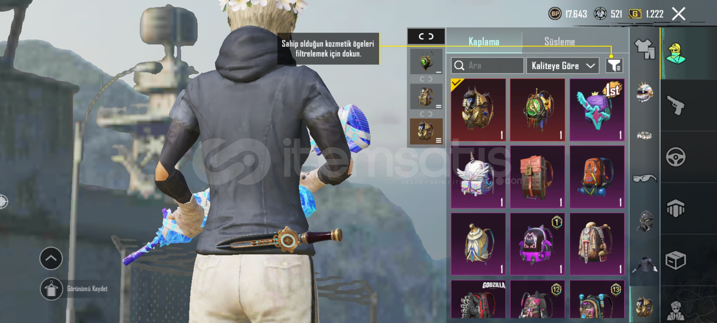 3 xuit maytik setlerCrew komutan altlık hesap18 yükseltilebilirRuh biçen UMP 4Mumya m4 4 lvl İşgalci maskesiFiravun çanta