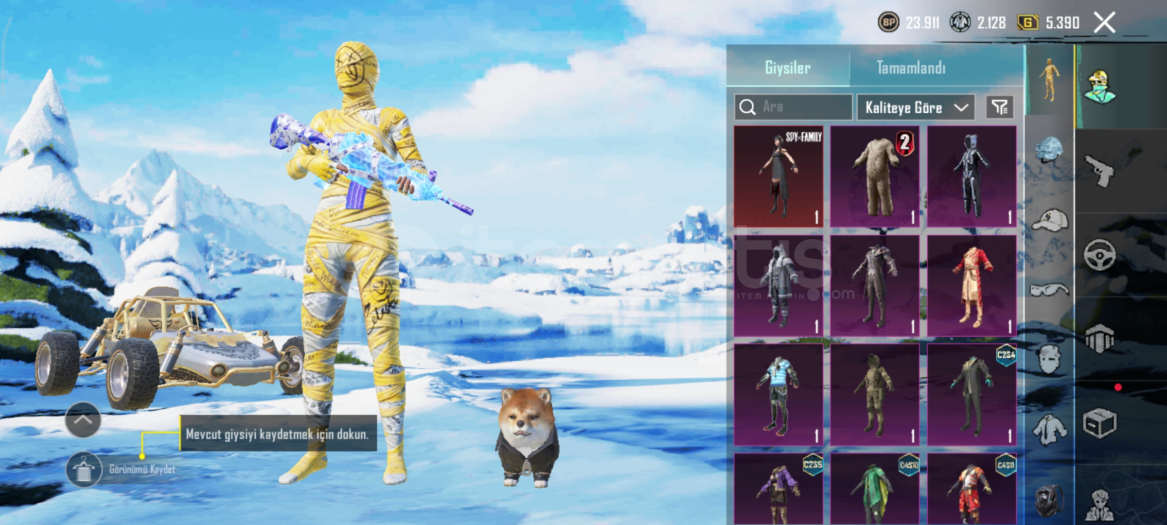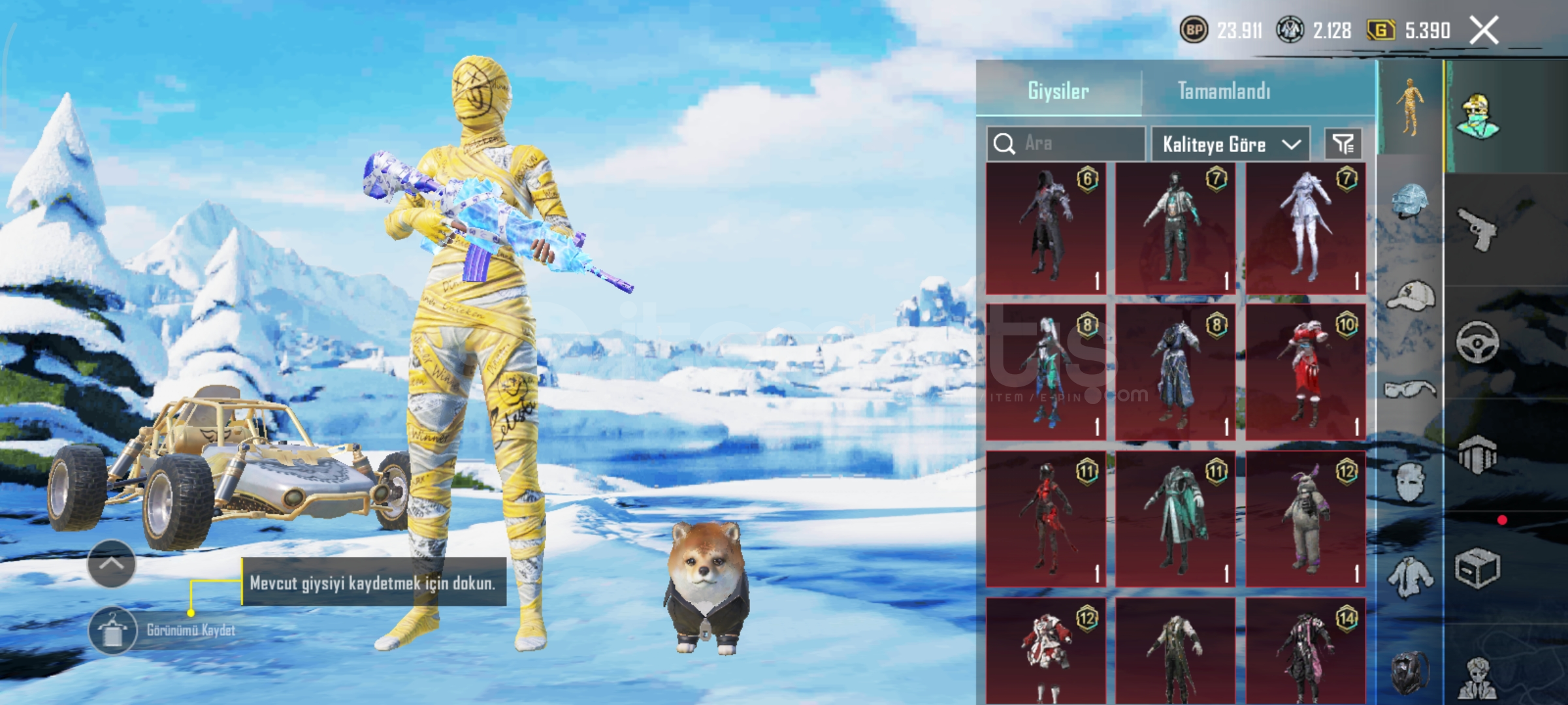 14 yükseltilebilir silah 66 seviye 45 koleksiyon seviyesi 1x-suit 3 karakter 25 destansı giysi, 3 destansı maske, 10 destansı şapka, 2 destansı çanta Birçok destansı emoji Sarı mumya ve mumya m4 mevcuttur