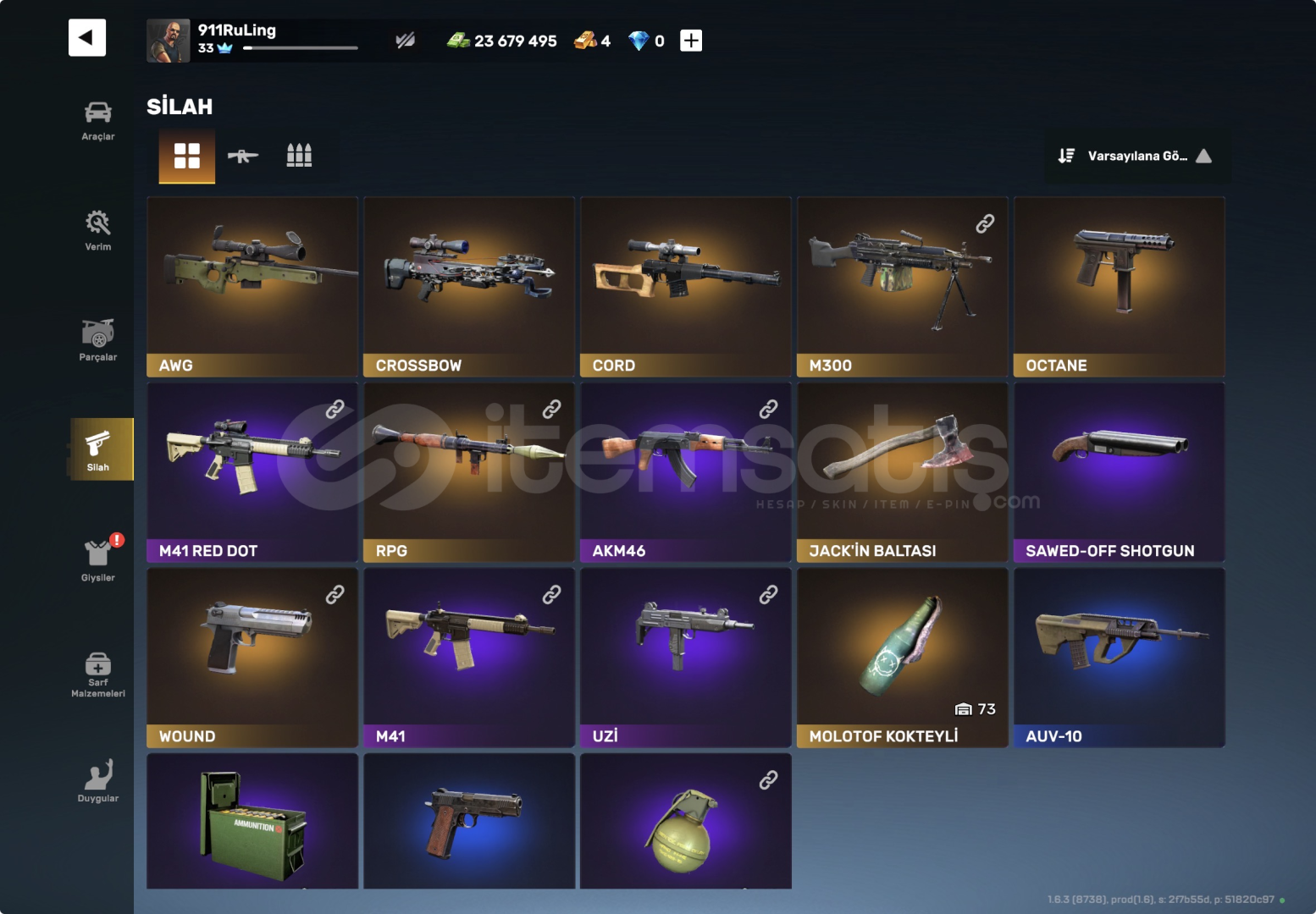 Hesabımız 210 günlük 33 Seviyedir Pass Araçları alınmıştır hamura vardır 5 motor AK FUL+ FULLDEYAYLI BİLGİ DM